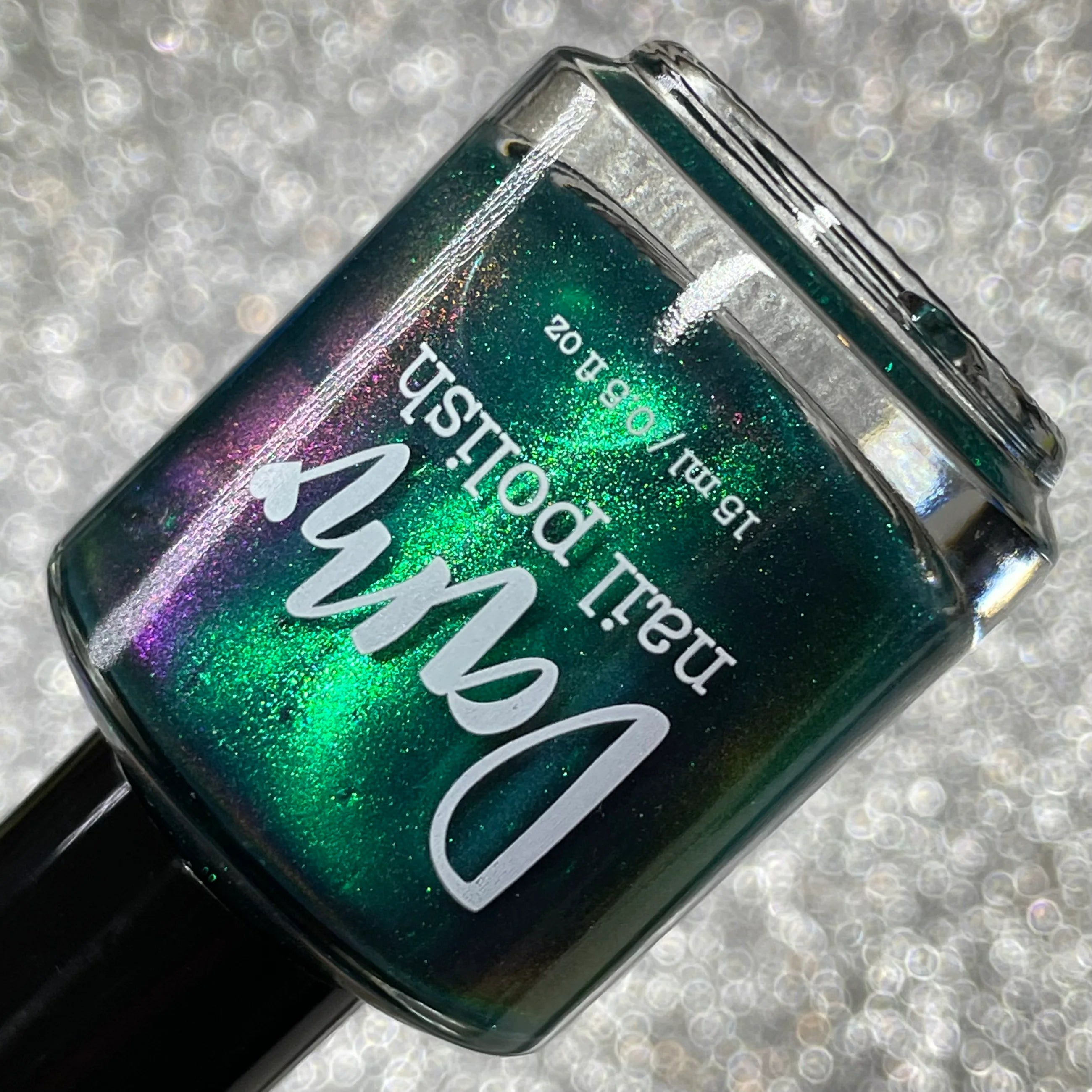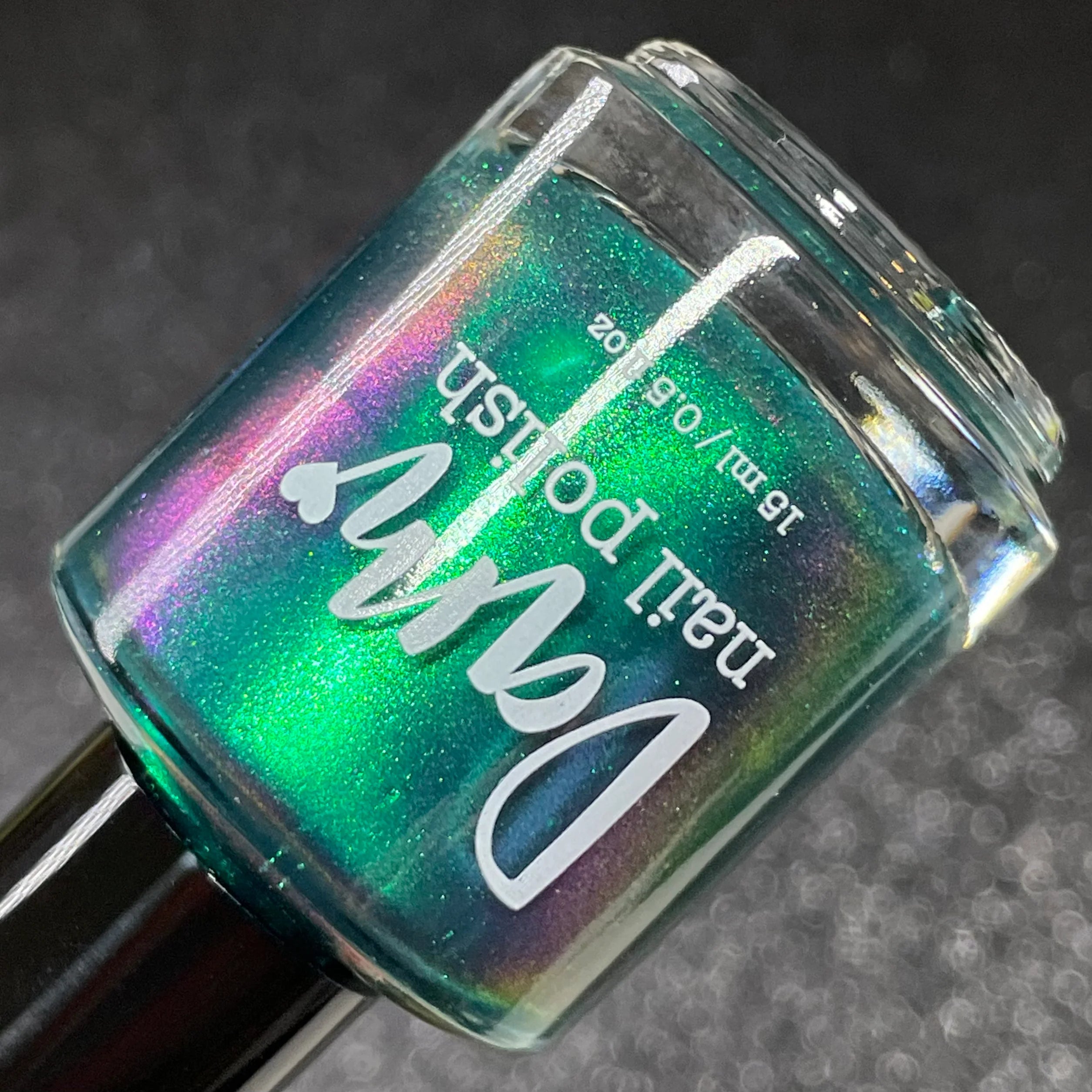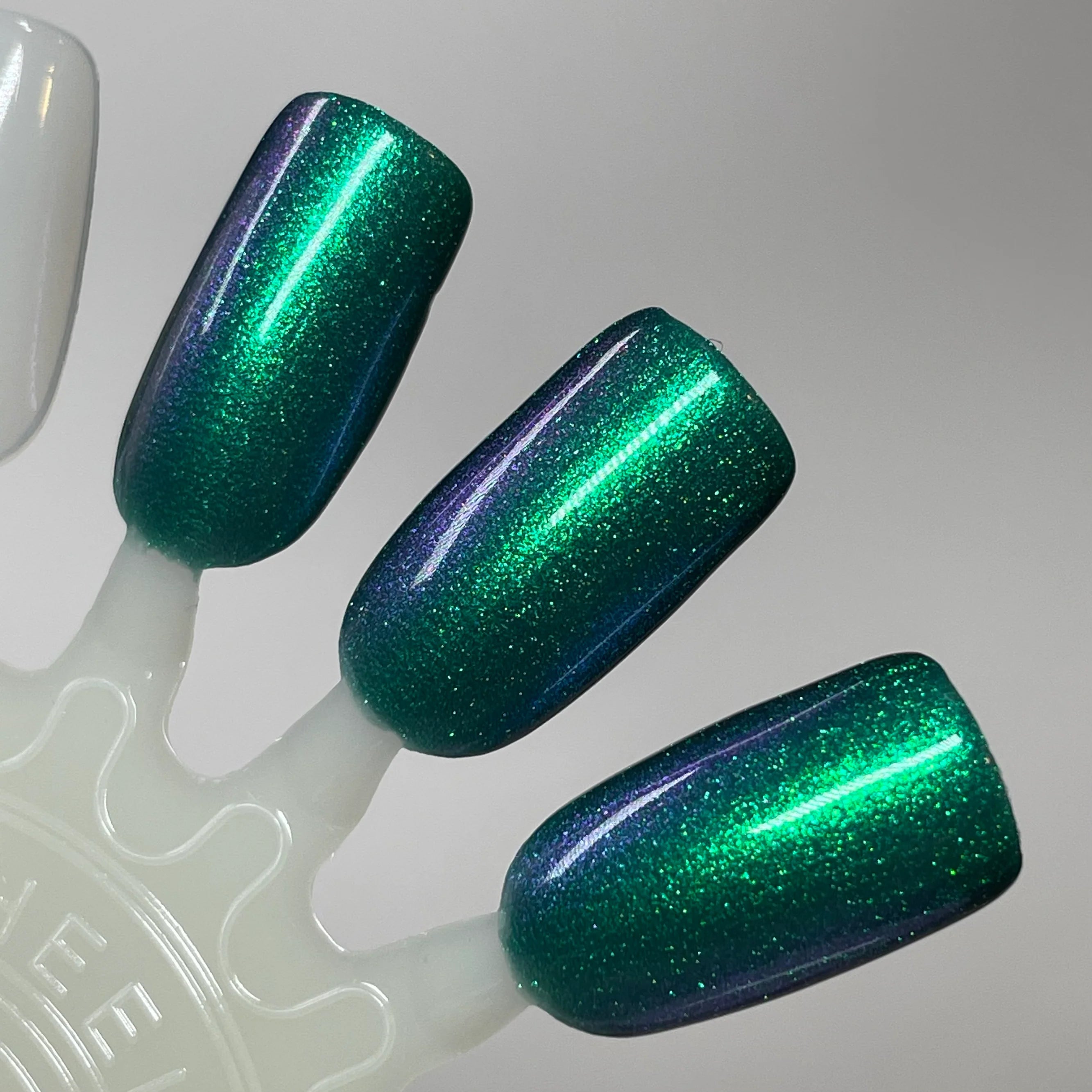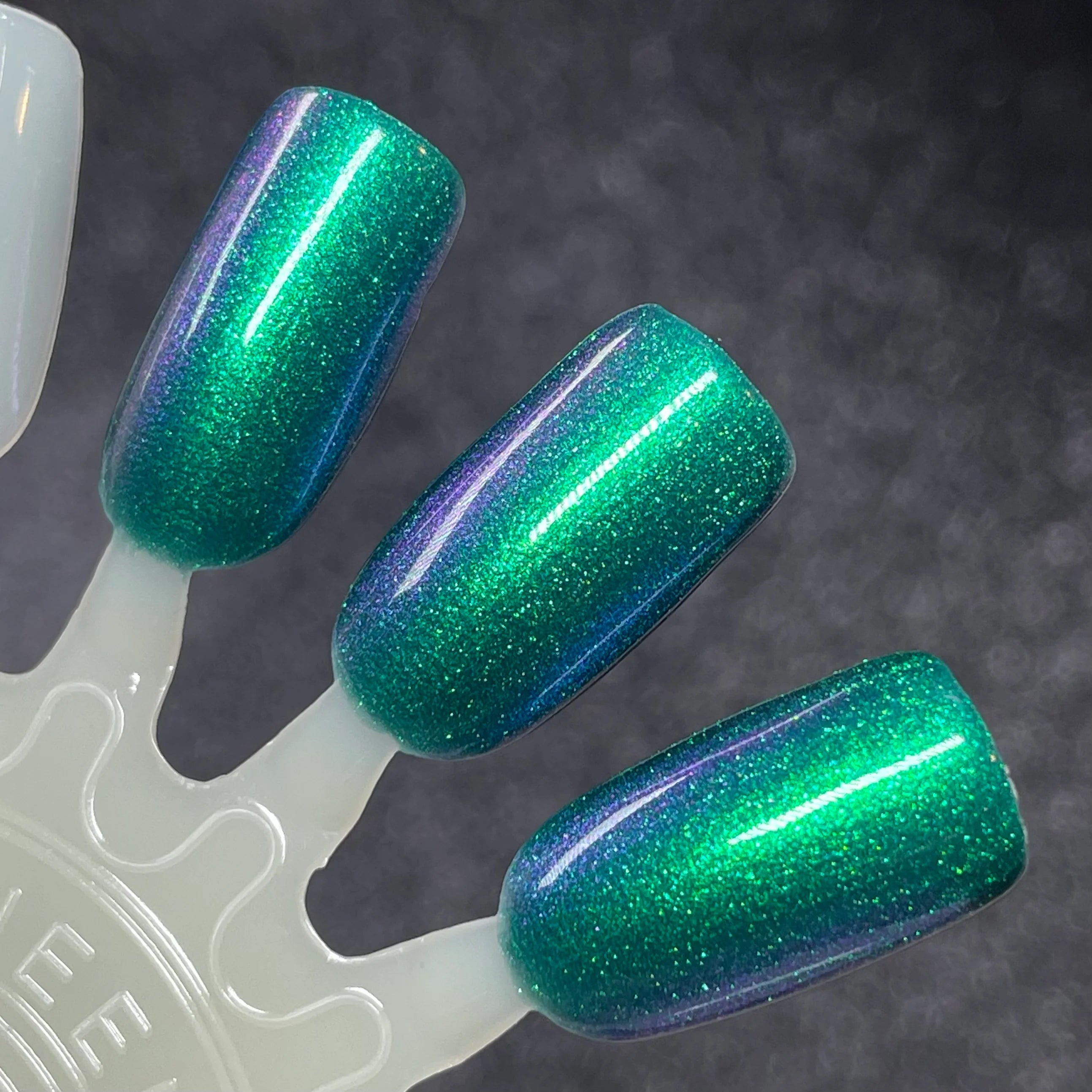 Deep teal base with green and purple shifting shimmer.
