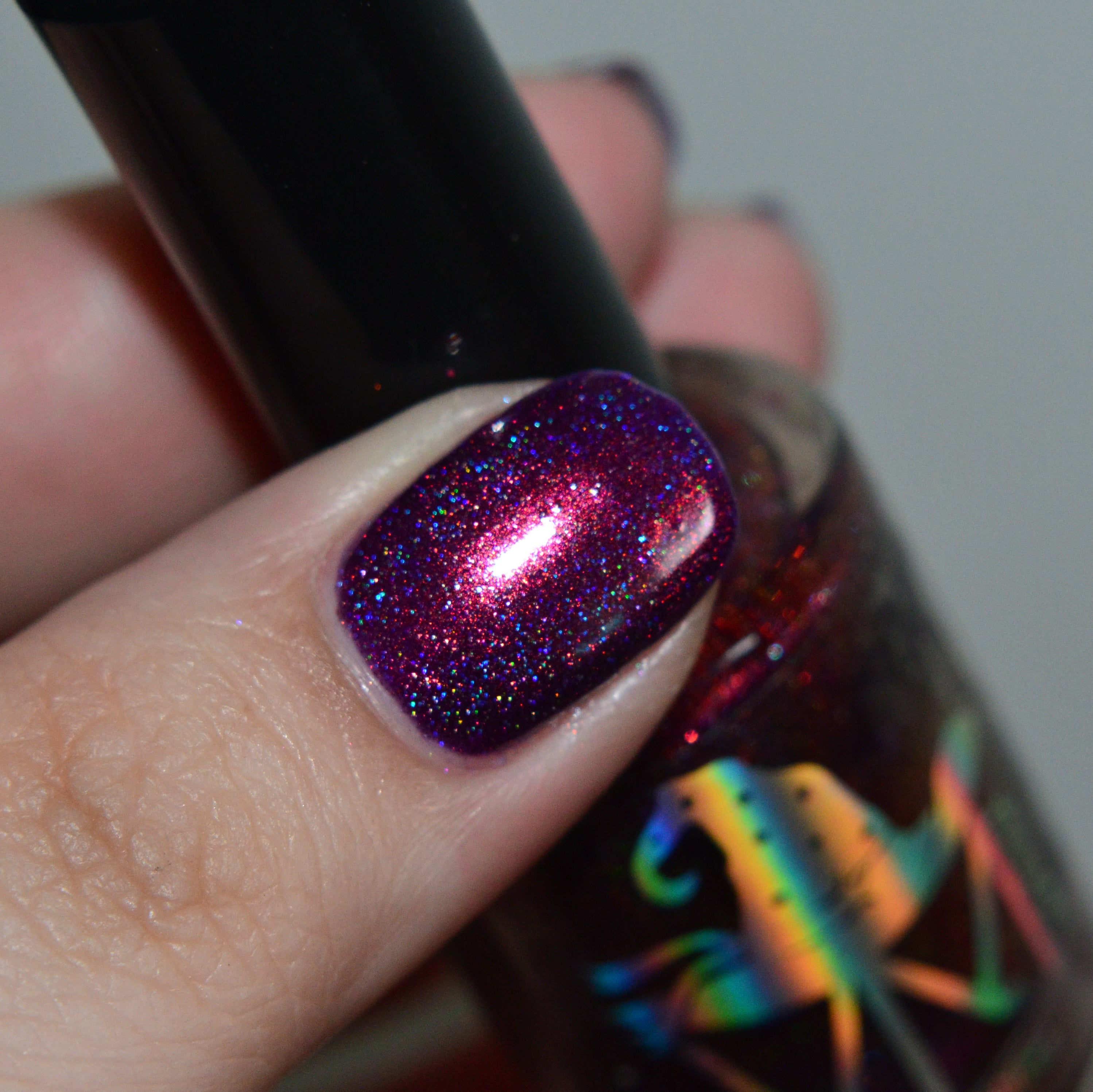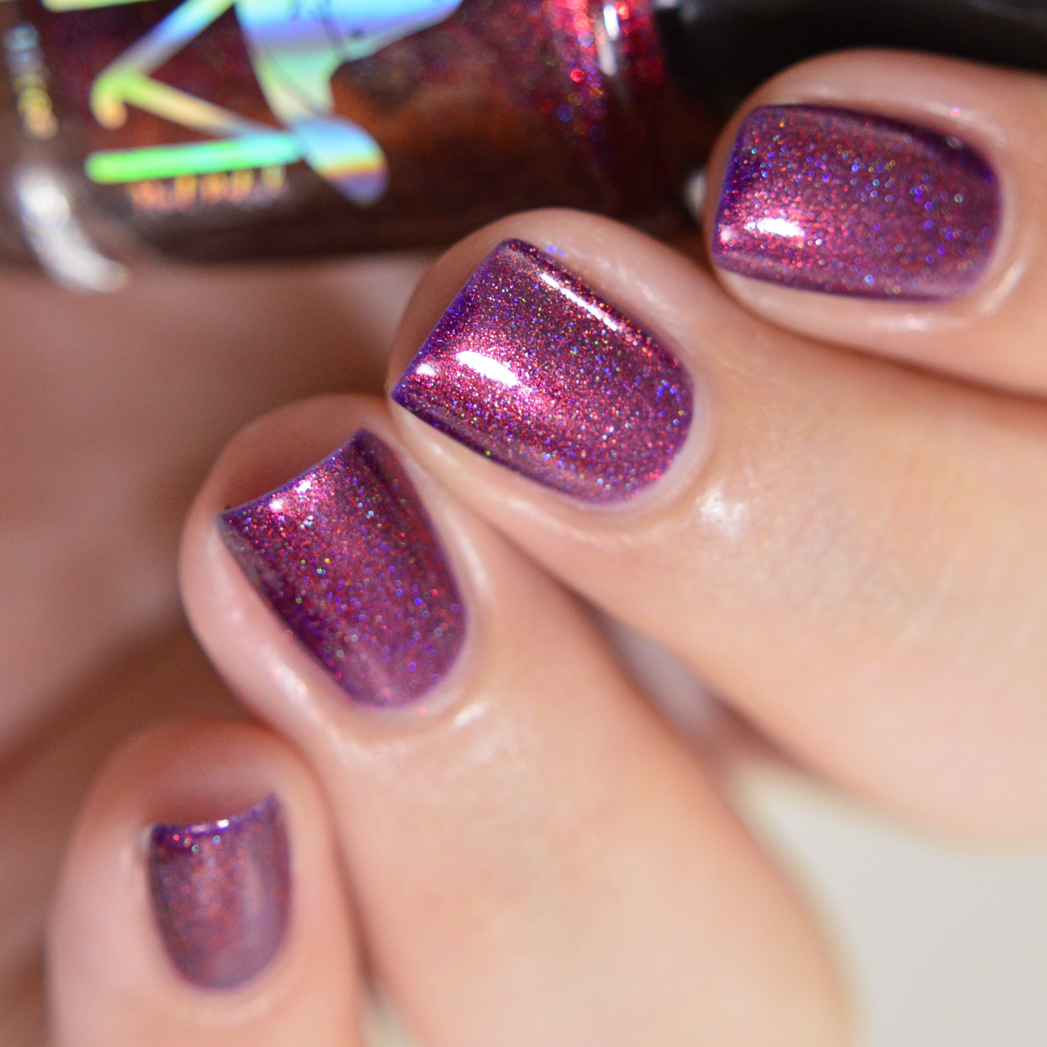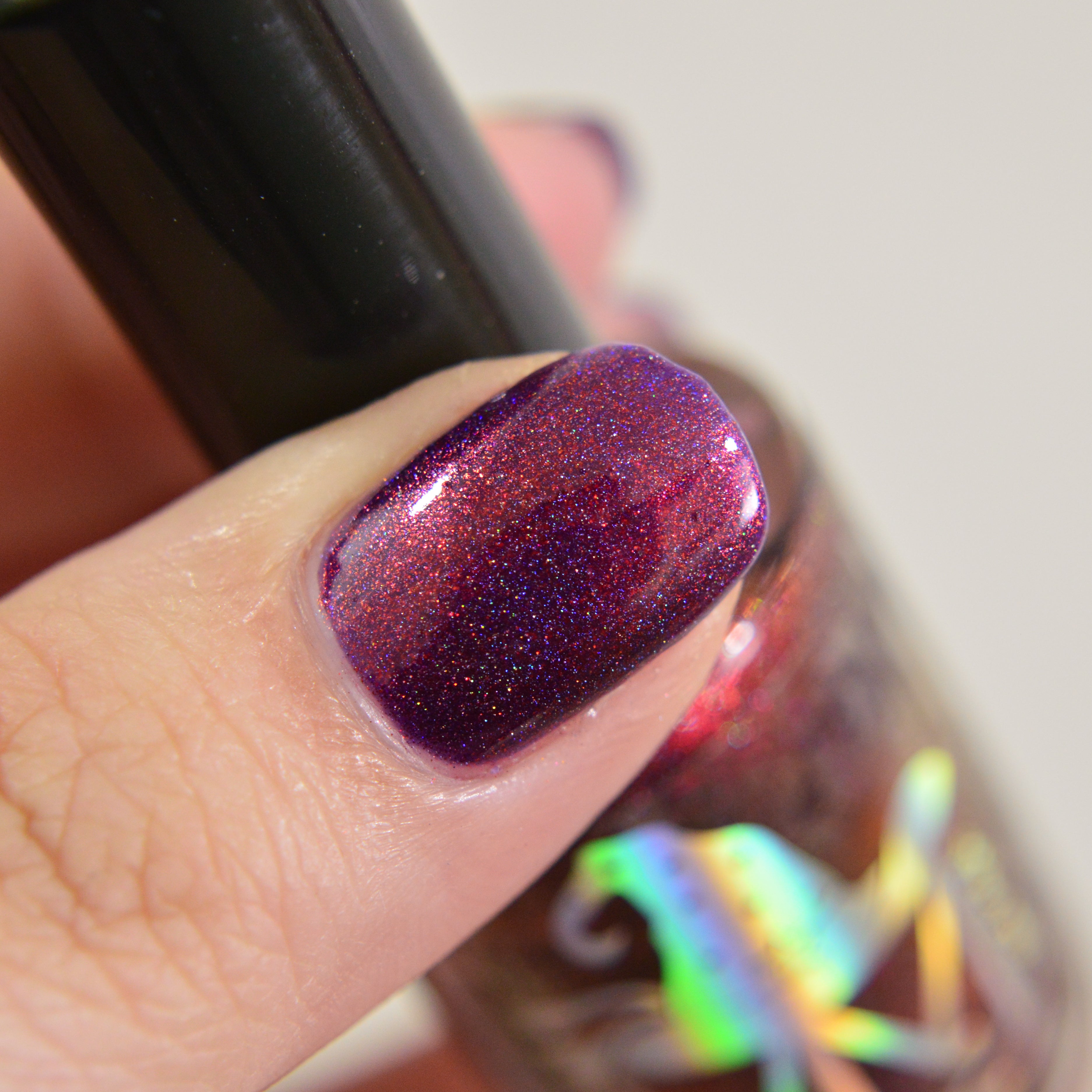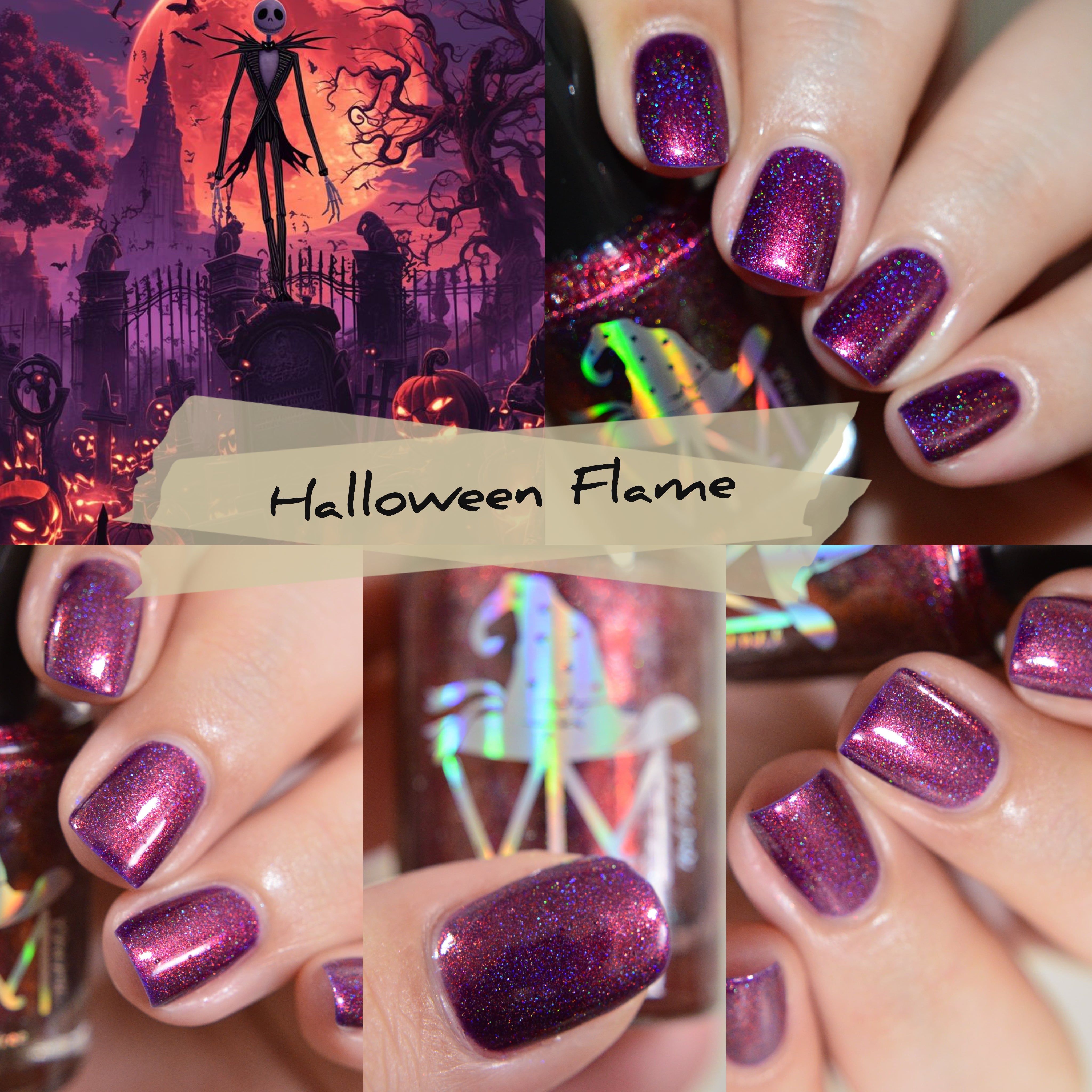 Halloween Flame: Opaque violet base, orange multichrome pigment and dispersed holograph pigment