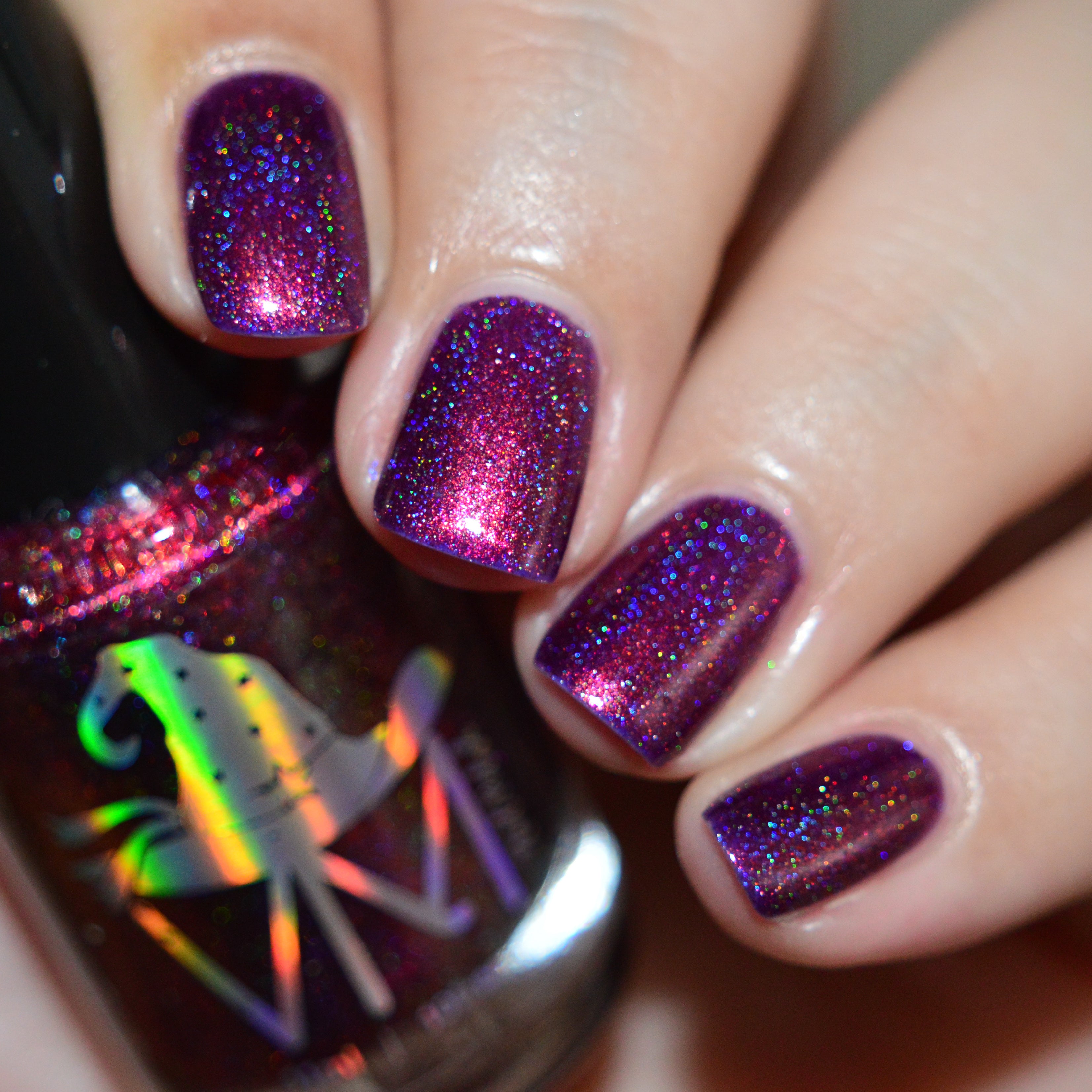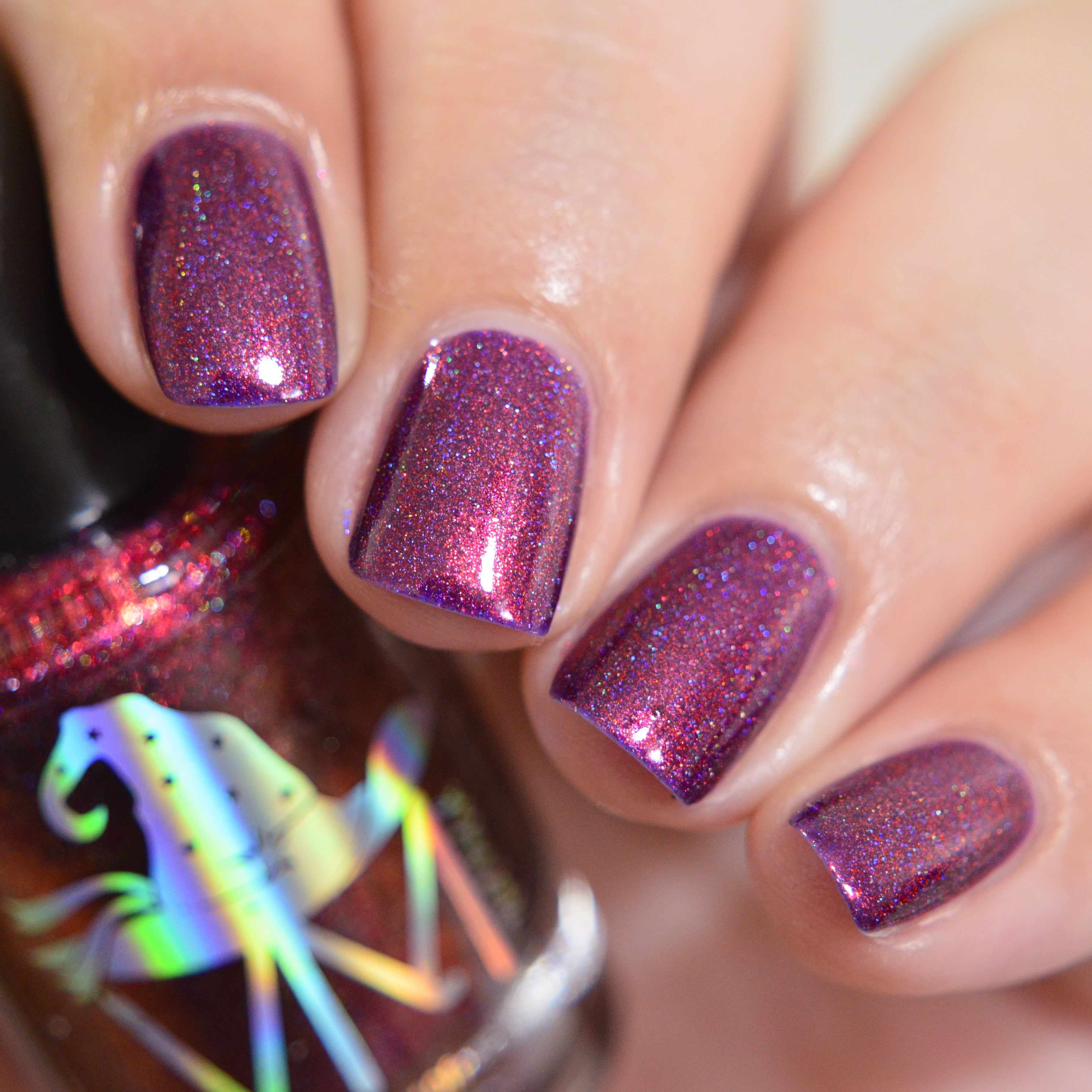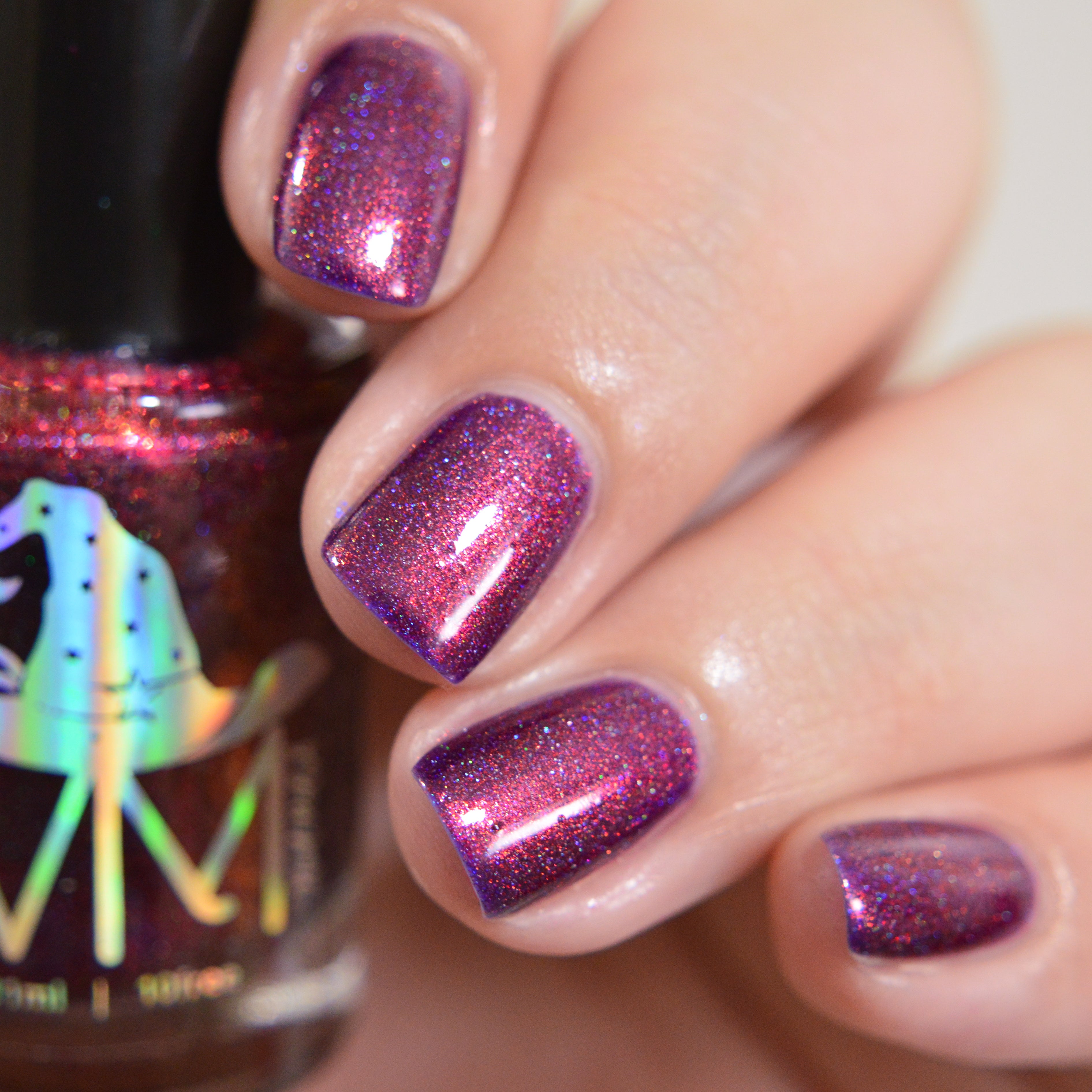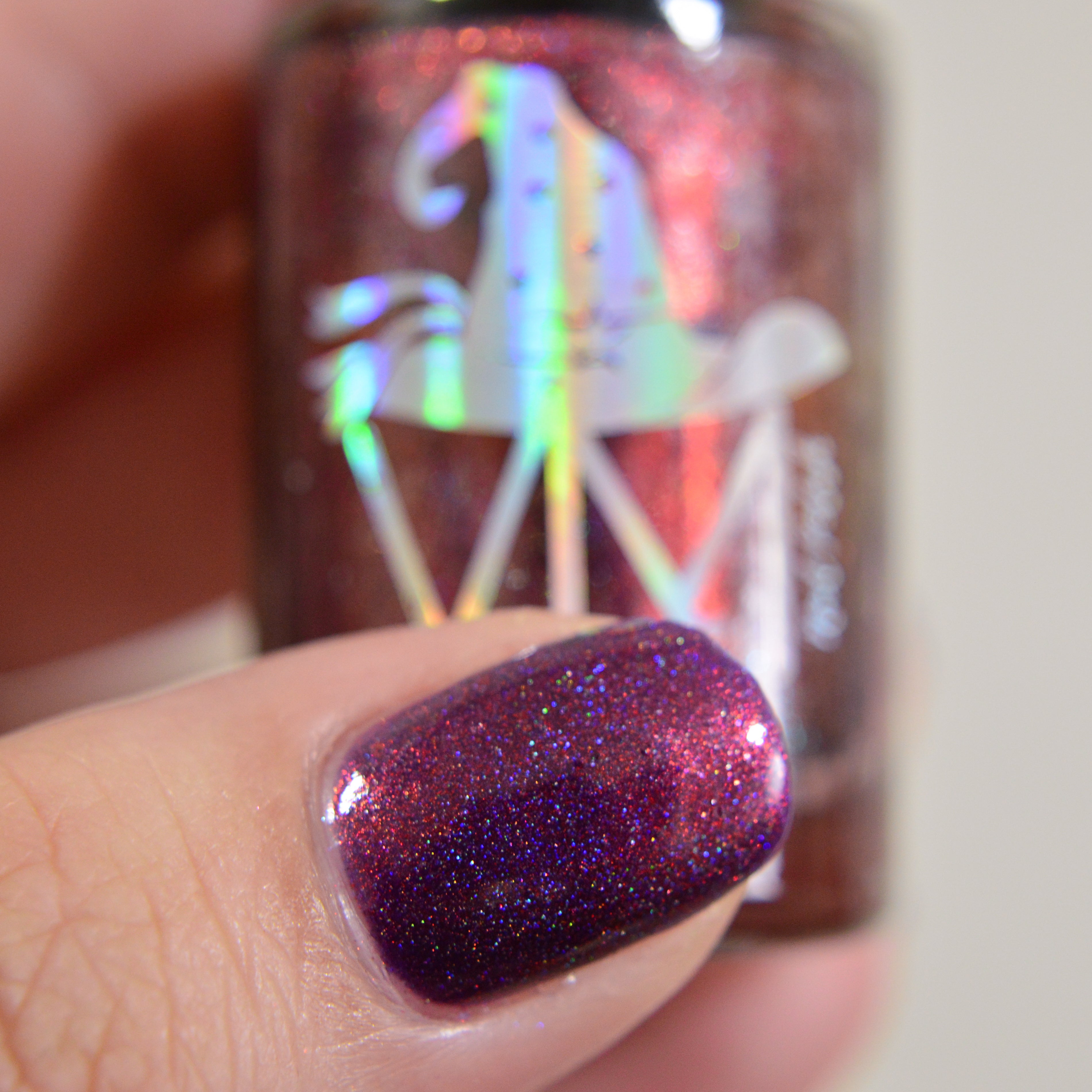 Halloween Flame: Opaque violet base, orange multichrome pigment and dispersed holograph pigment