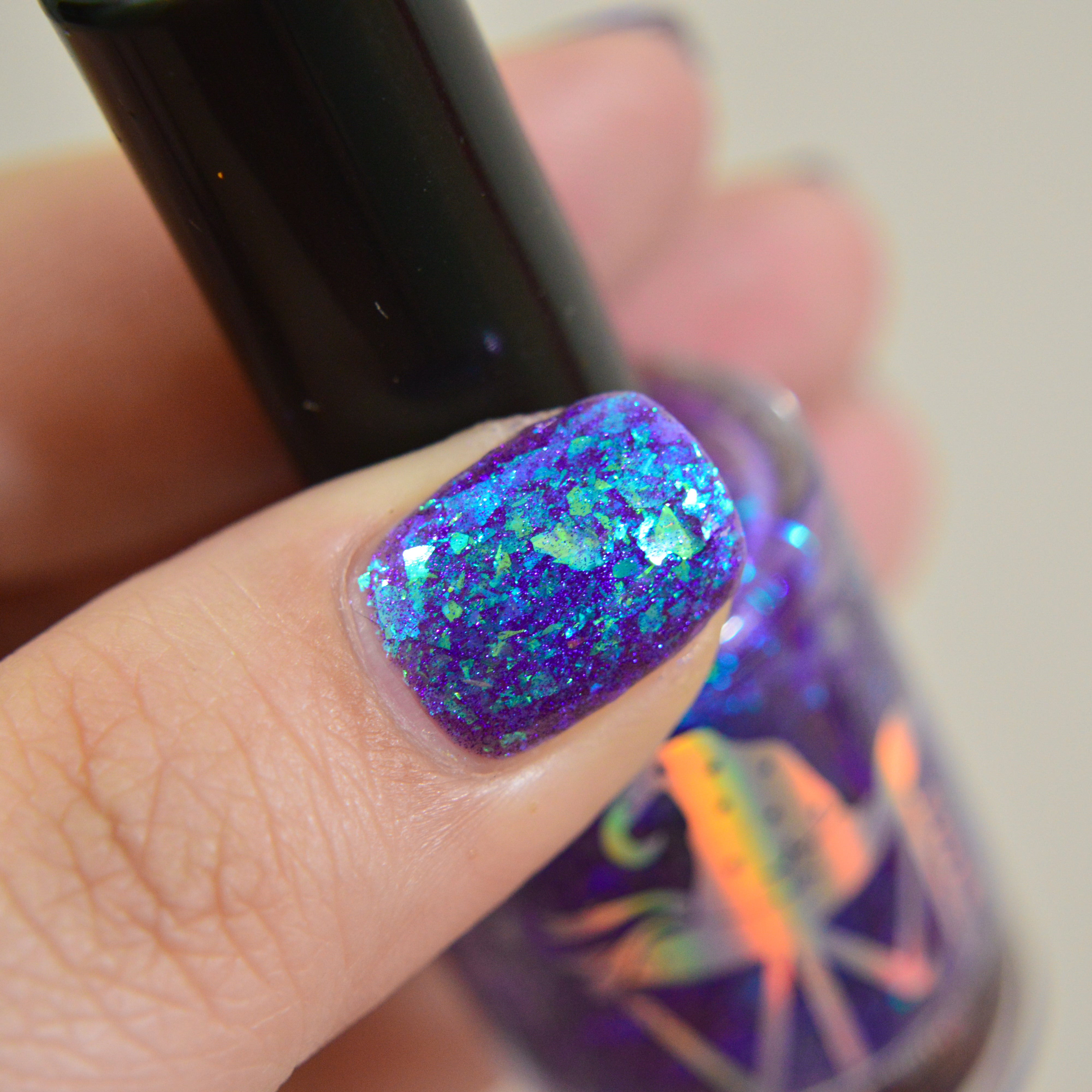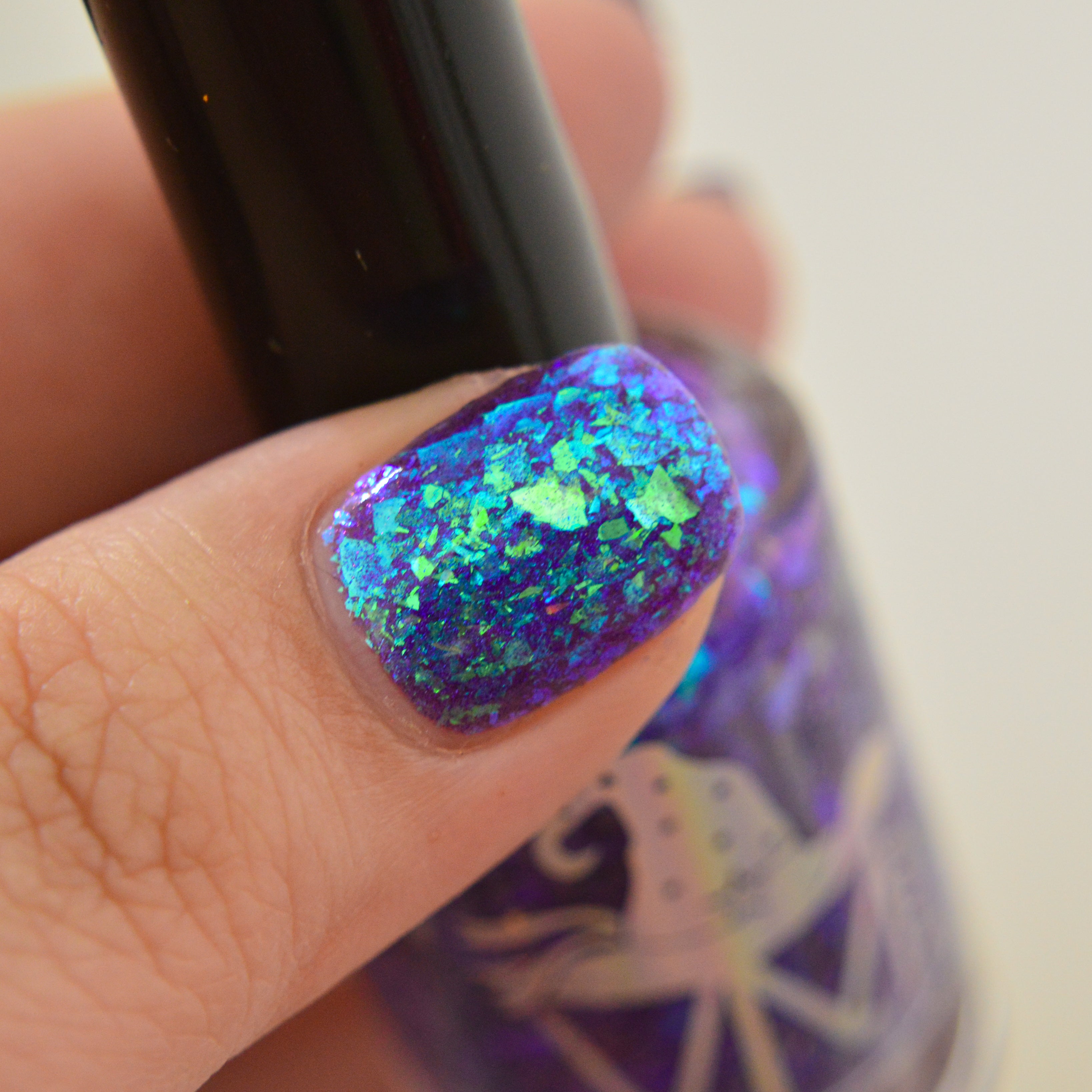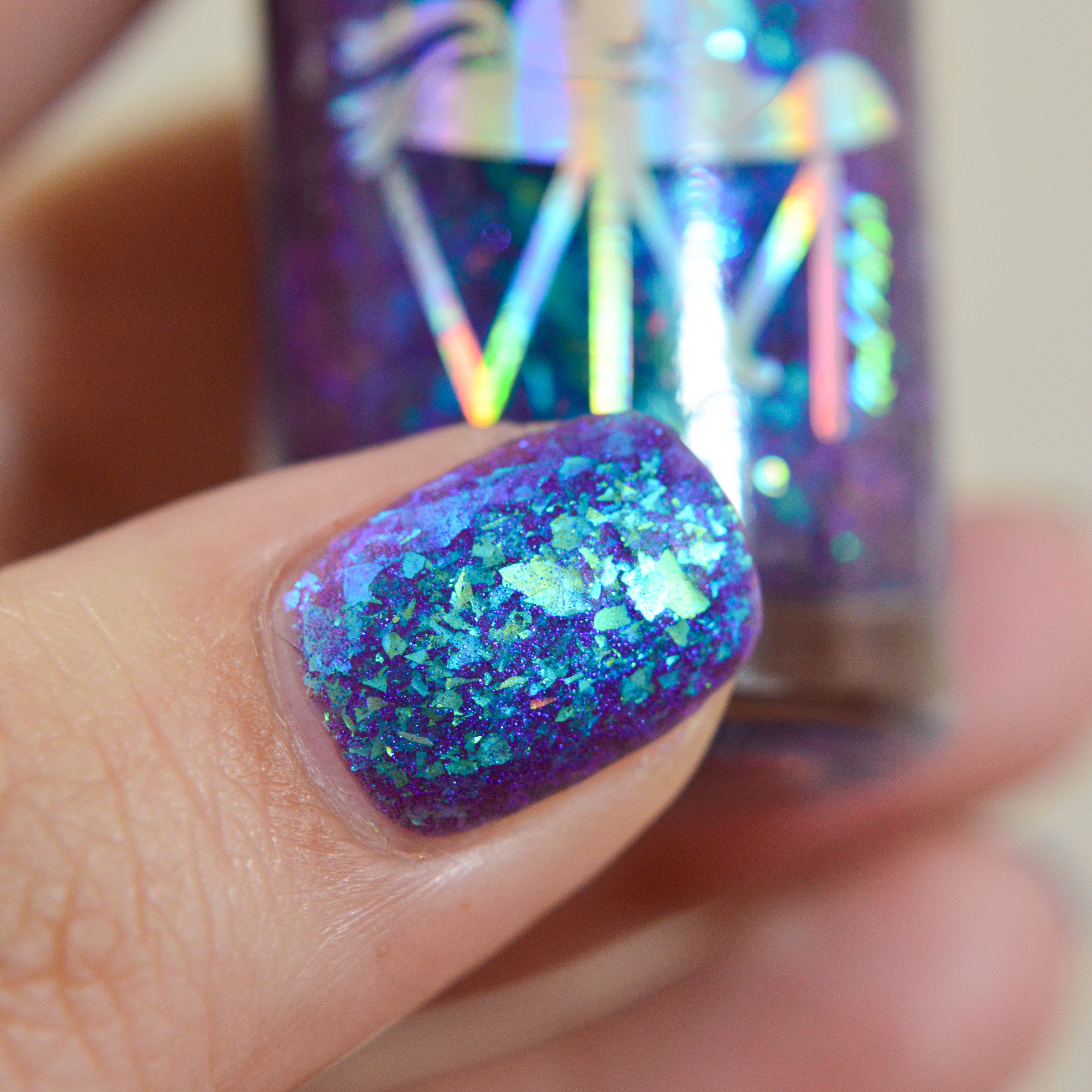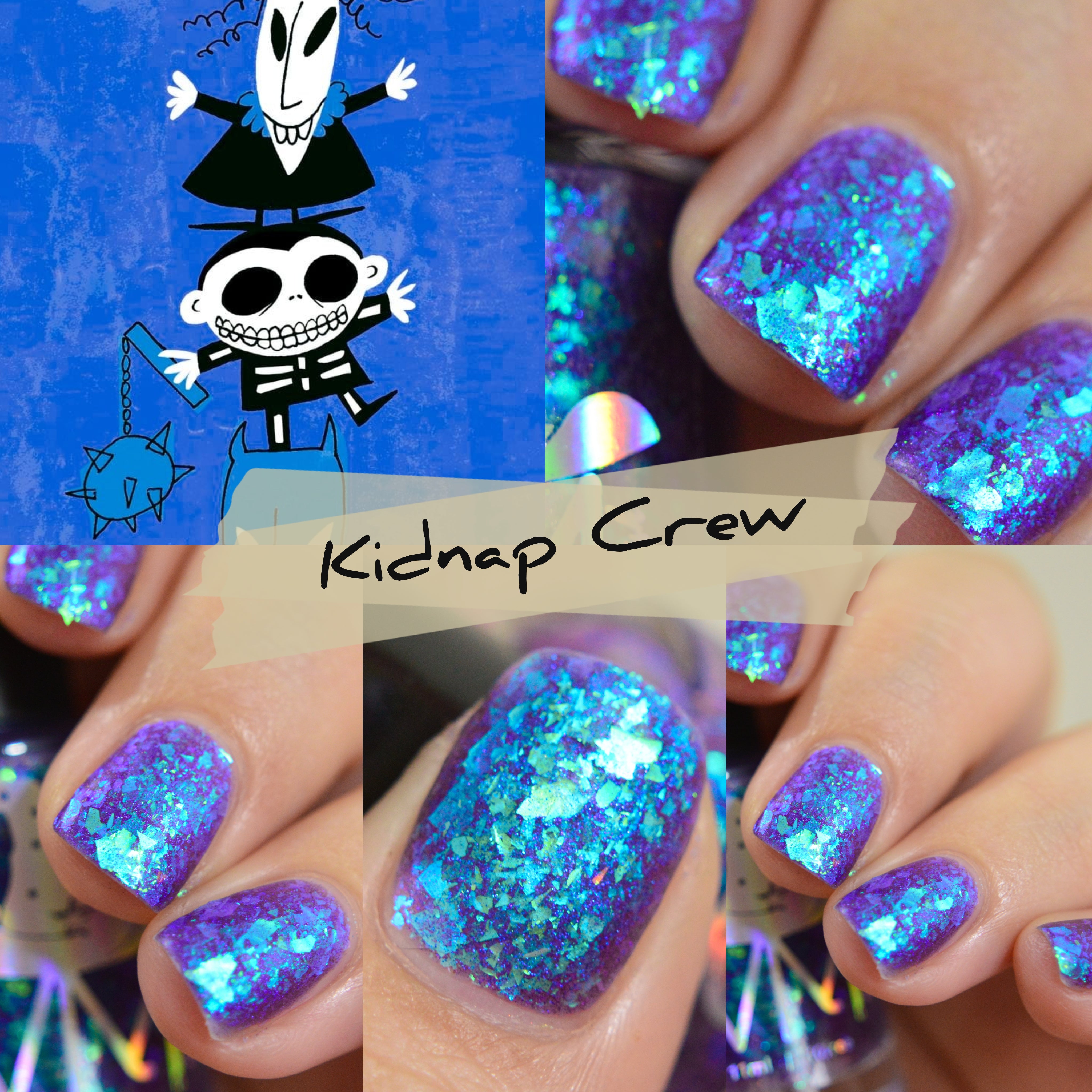 Kidnap Crew: ultramarine jelly with turquoise bomb flake, satin matte drying. Wear it glossy with your favourite top coat