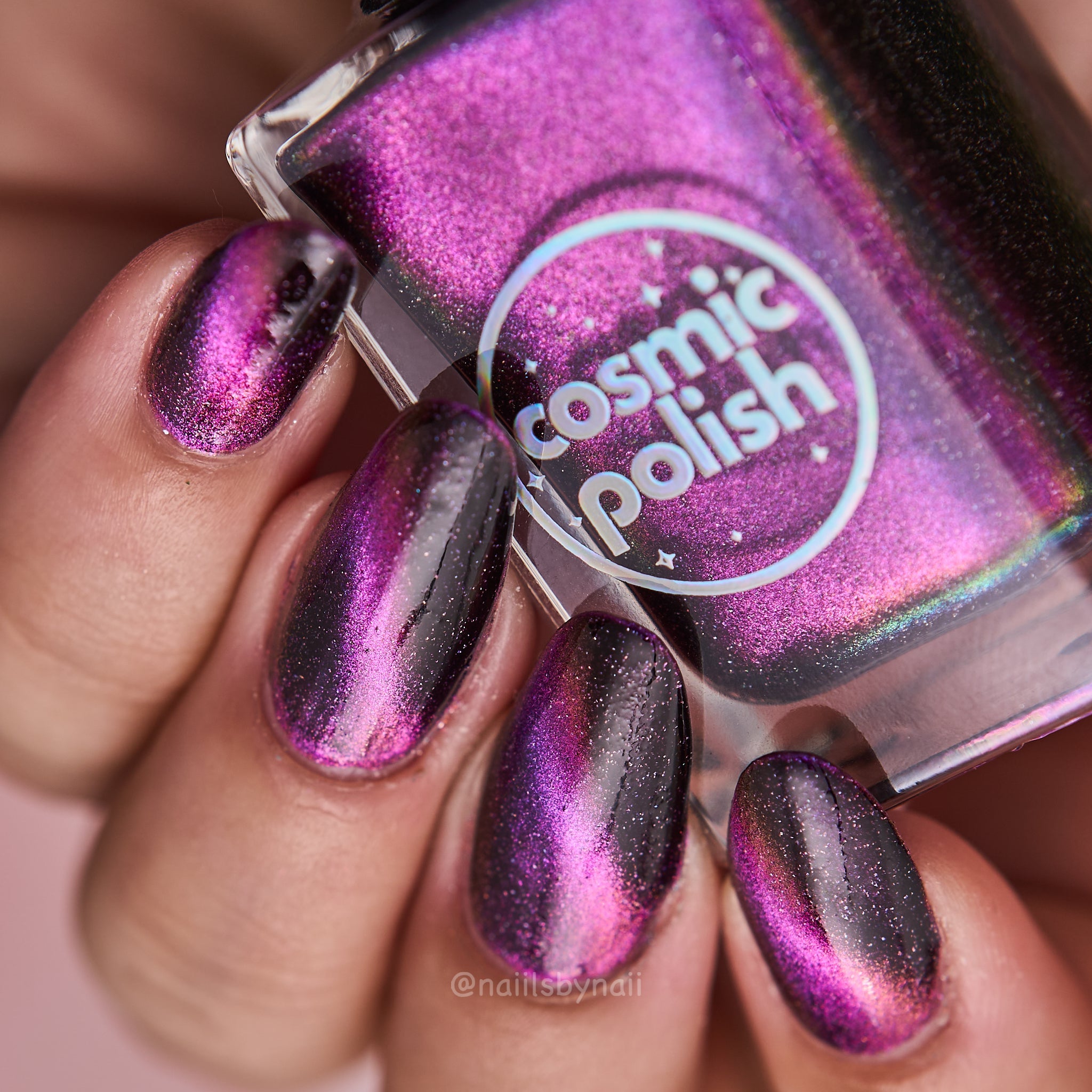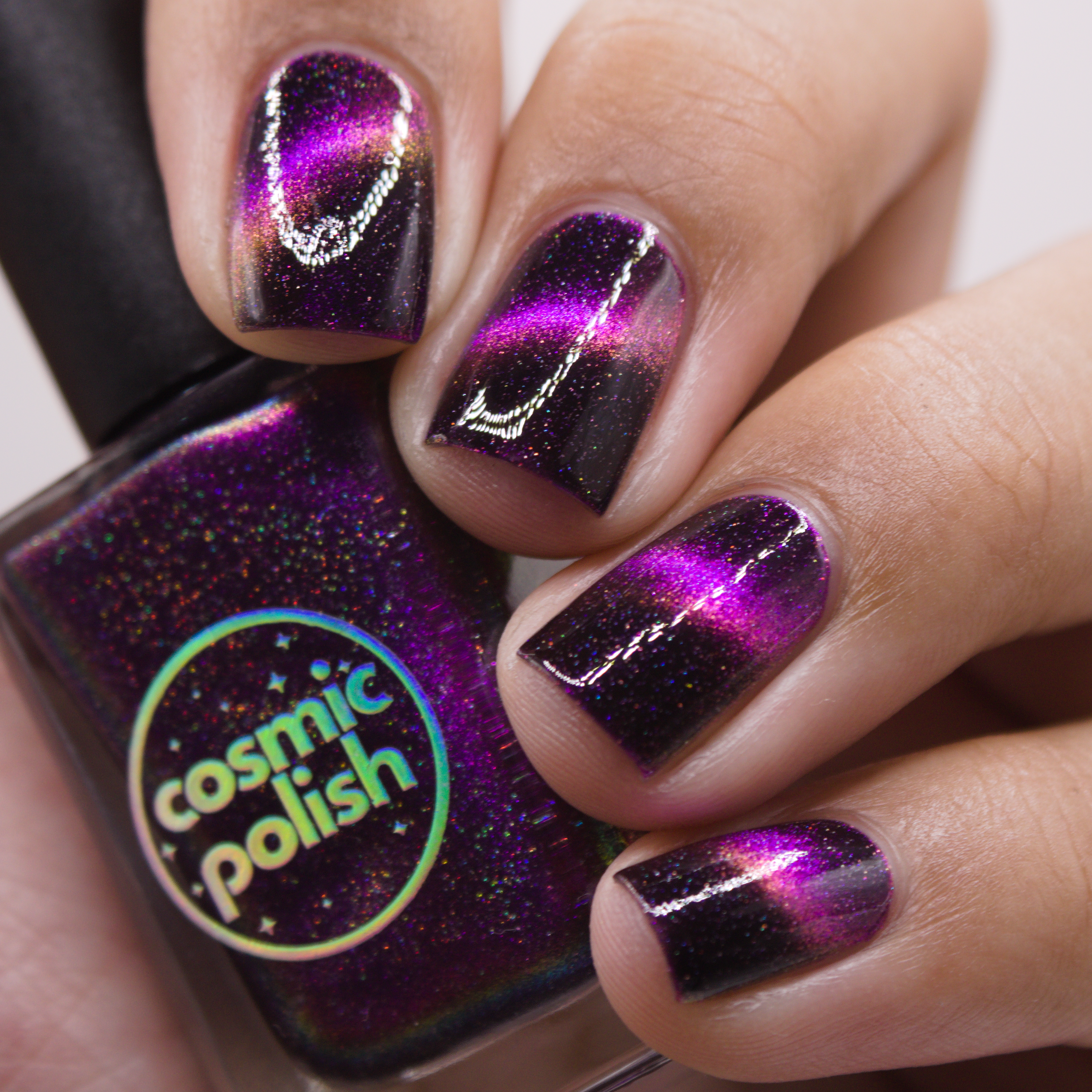 Drift into deep space with Galactic Pull and feel the magnetism take hold. A dark purple to black base sparkling with scattered holo ignites with a purple to pink magnetic line that shifts and bends like starlight under gravity.