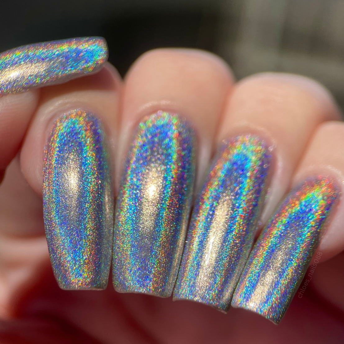 Float into pure holo wonder with Holo Flare, a silver linear holographic polish. There’s no need for a flashlight - this polish will light up any room.