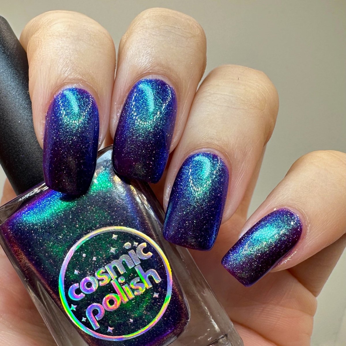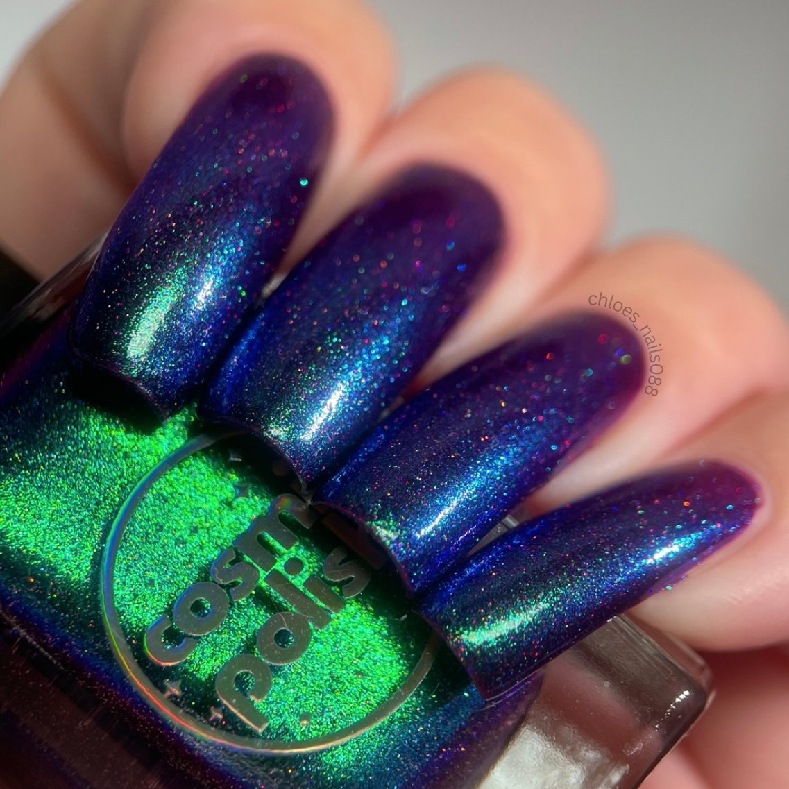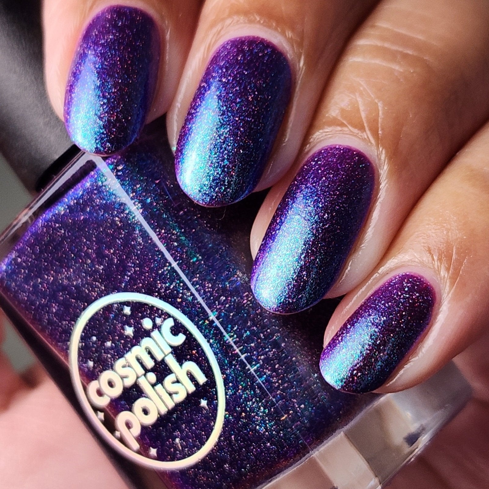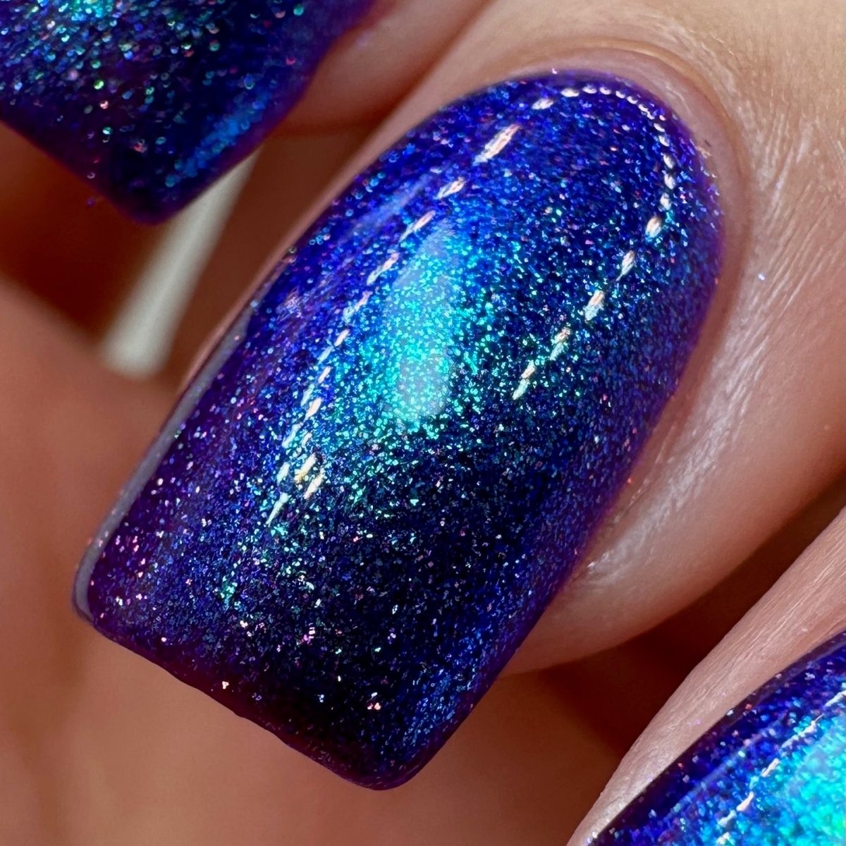 This polish is so terrifyingly beautiful it will instantly stop you in your tracks. Medusa is a purple based polish with a green to teal to blue shifting shimmer and scattered holo. Leave a trail of petrified admirers behind you!