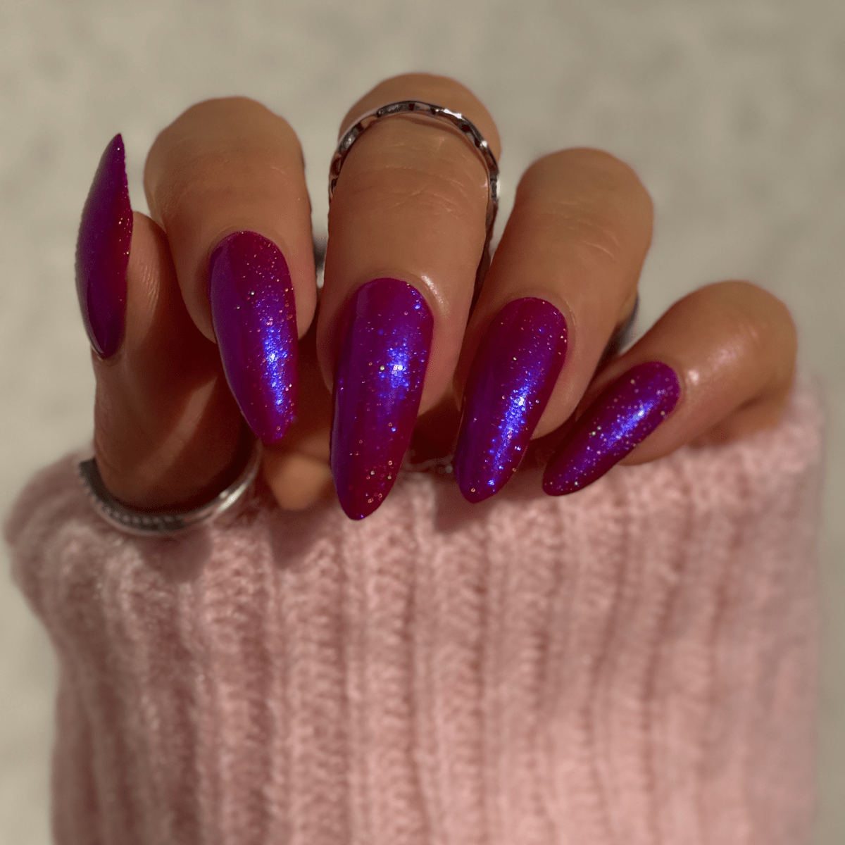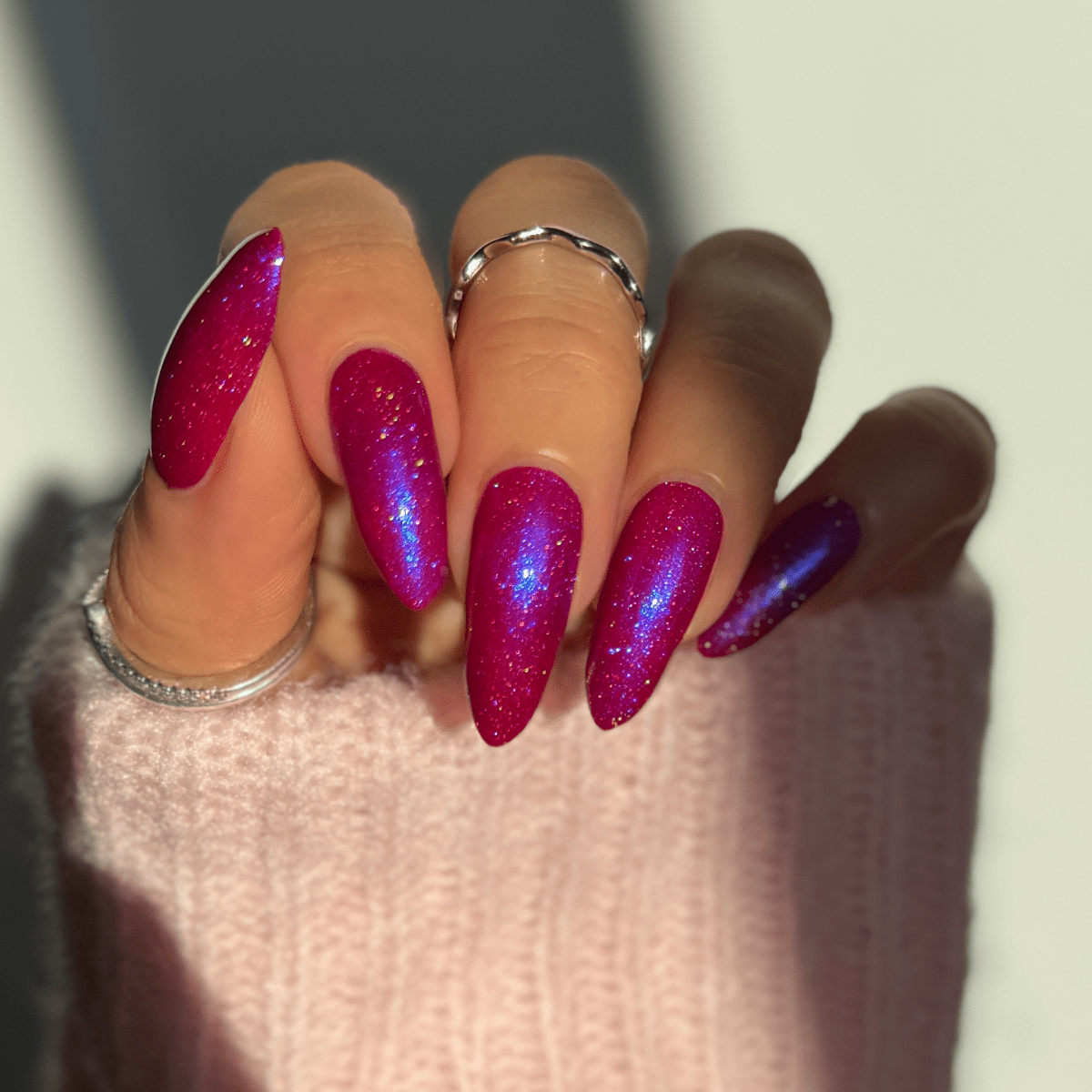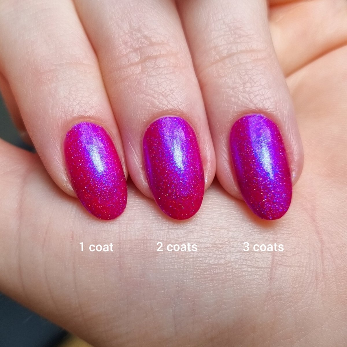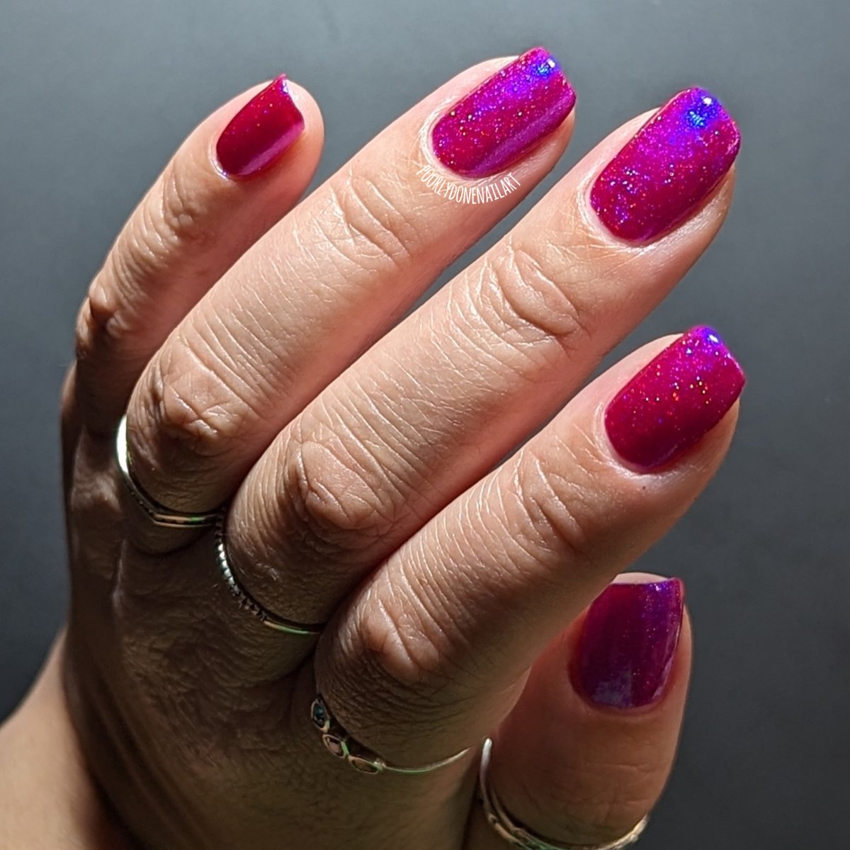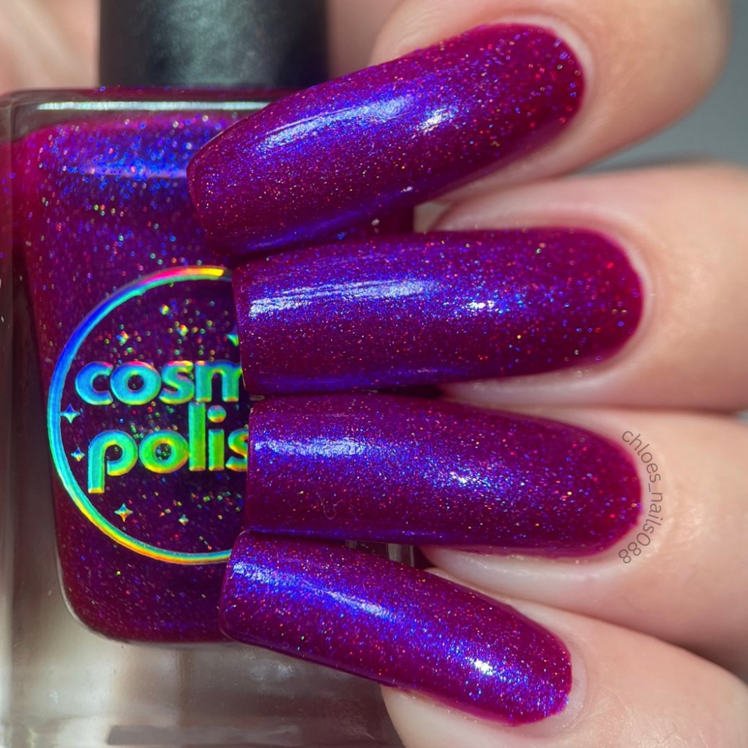 Witness the beginning of phenomenal nails with this polish! Orion's Call is a hot pink based polish with a strong blue shimmer and scattered holo. A small taste of the cosmic fires of creation on your nails.