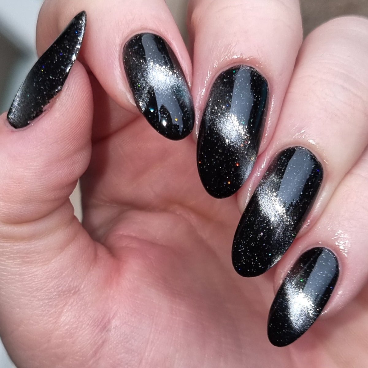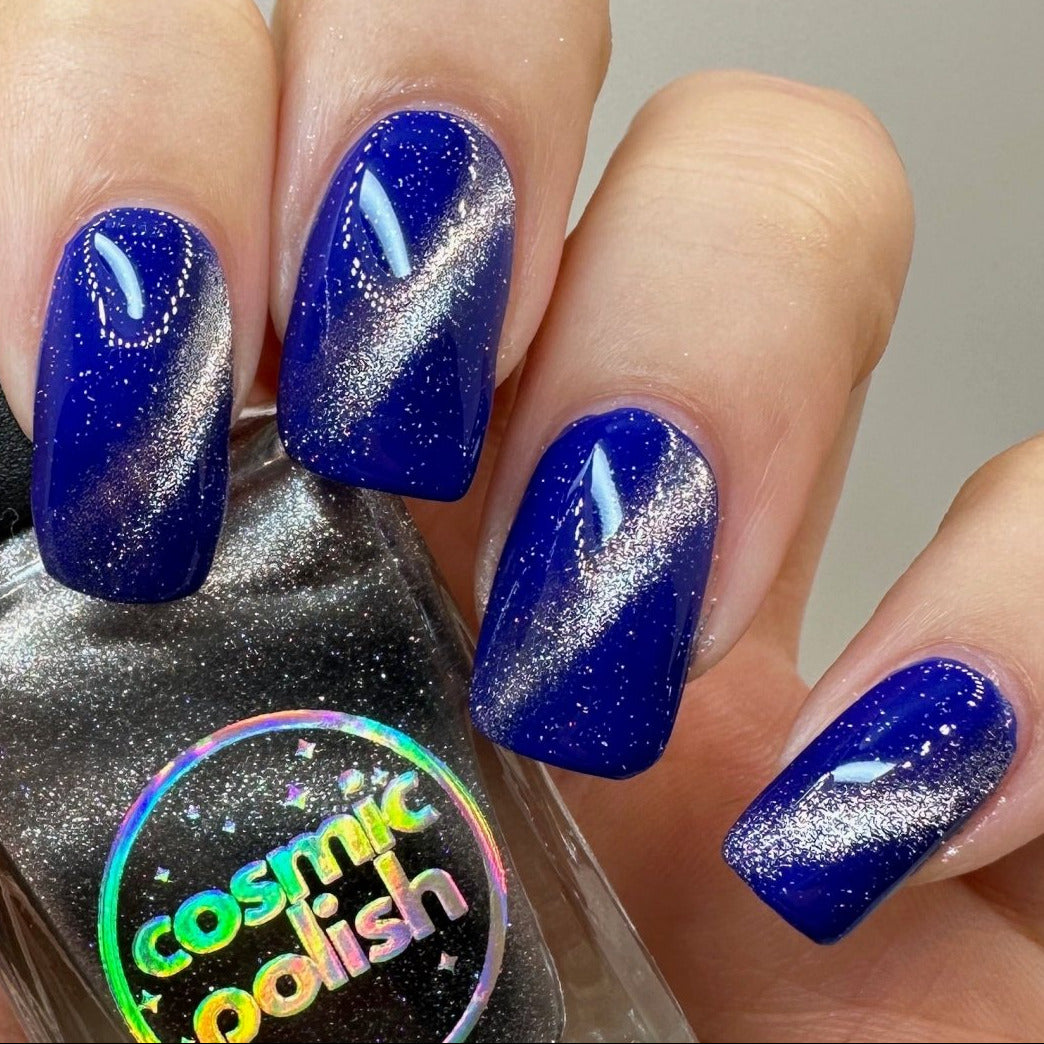 The mercury is rising with this ethereal topper. Quicksilver is a silver magnetic topper with scattered holo - activate it with a magnet to create incredible effects! Watch as this intergalactic topper draws everyone into your orbit to admire your nails.