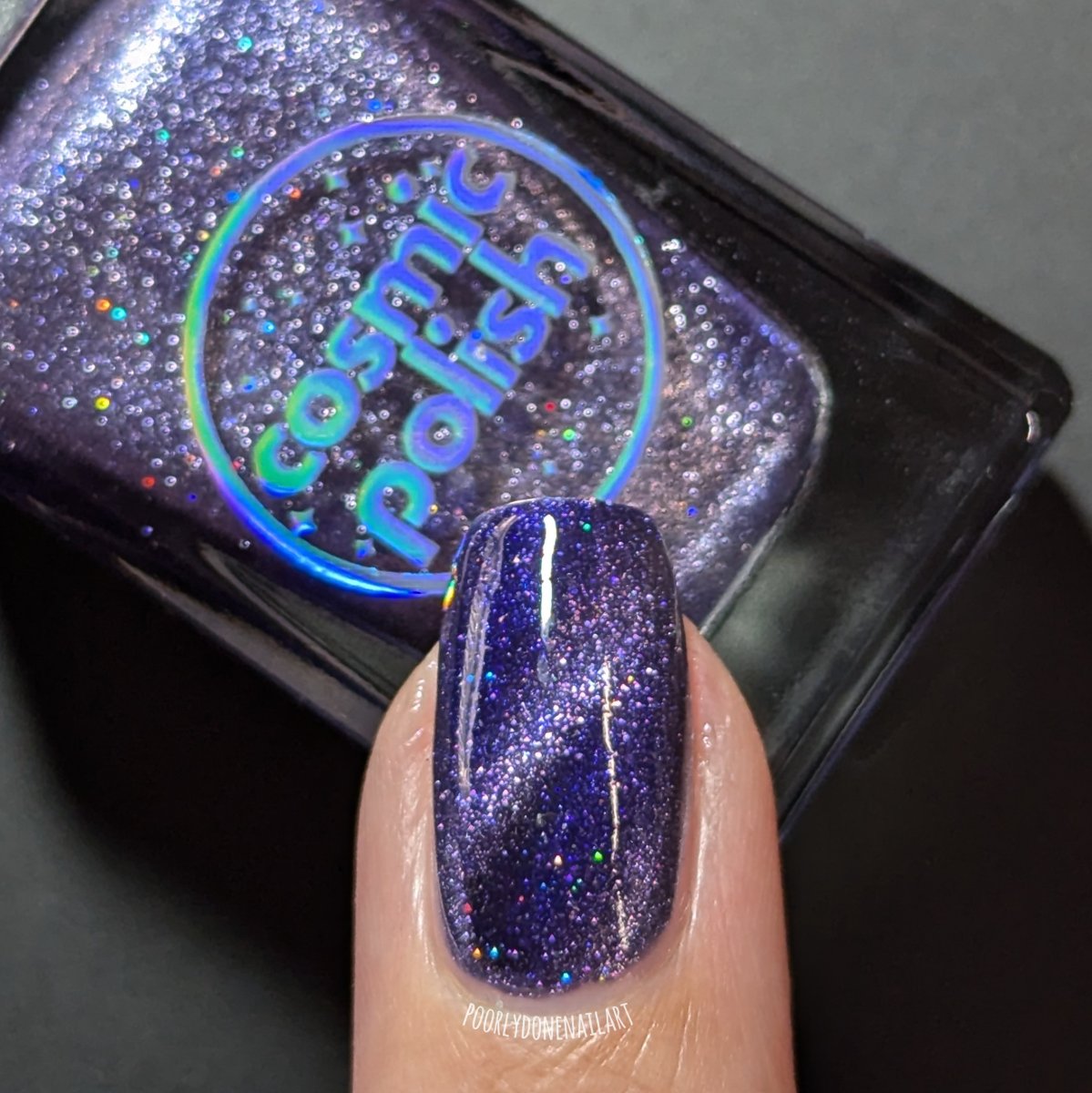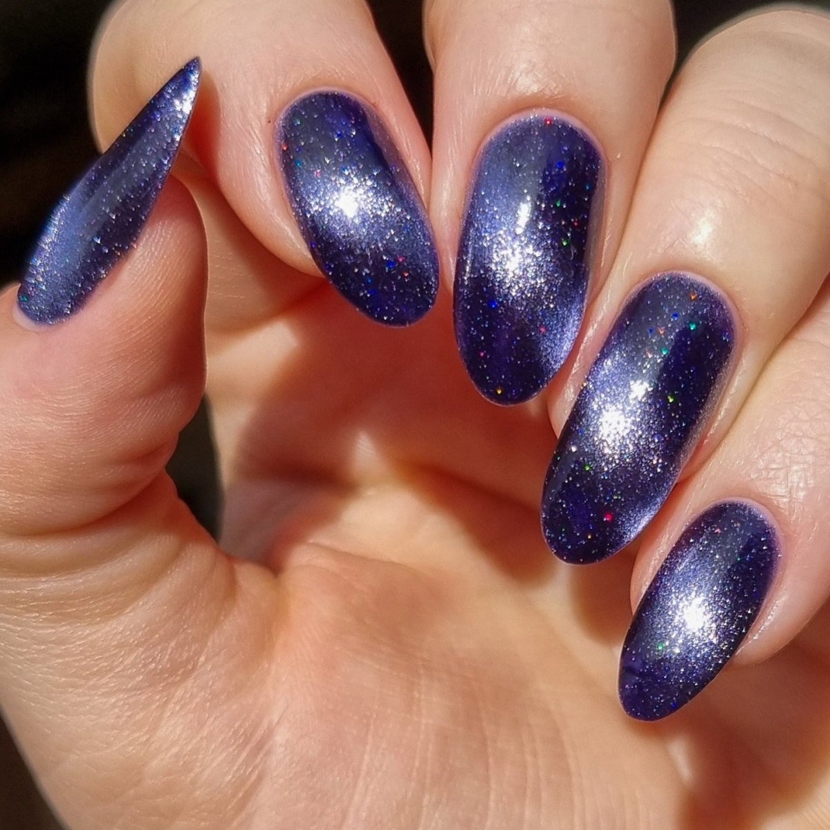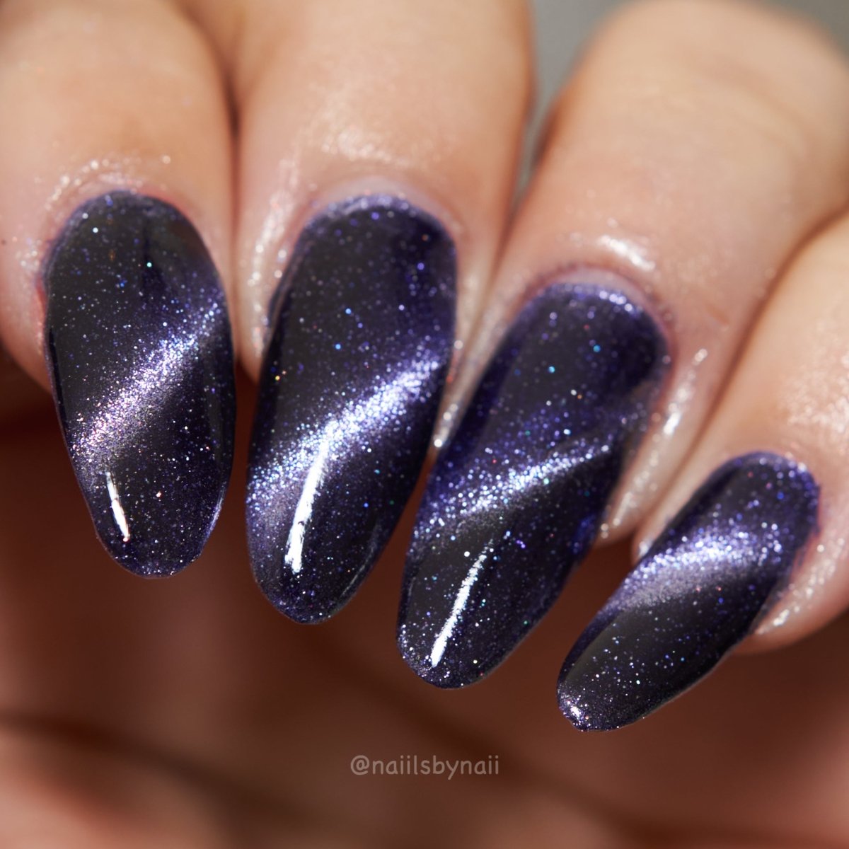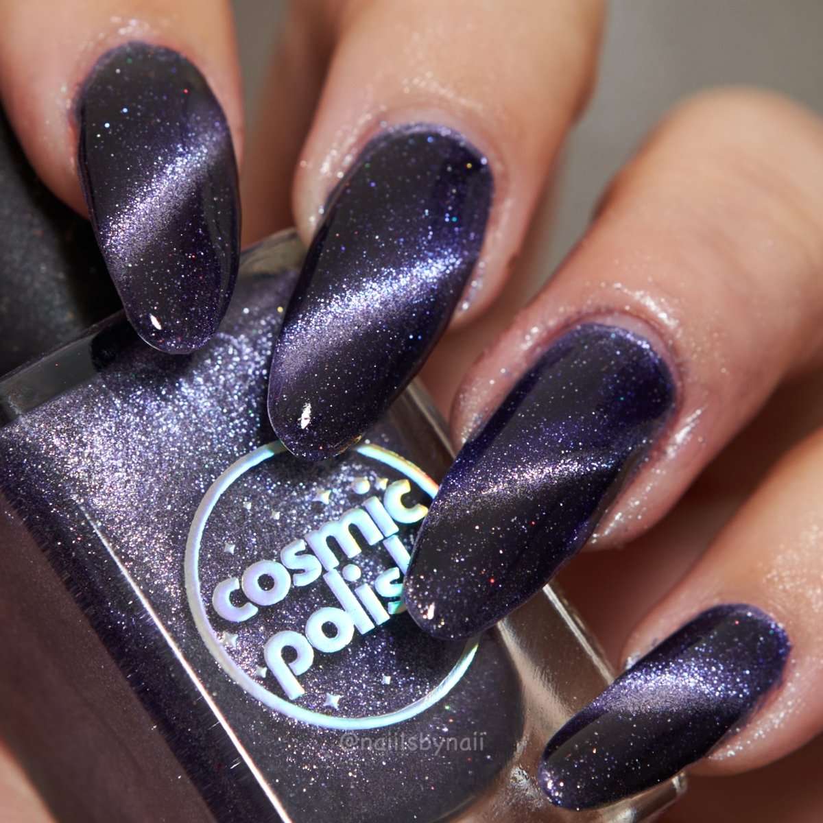 Don’t break your nails - break down spacetime itself instead. Singularity is a dark purple based magnetic polish with a pale purple stripe and scattered holo. Capture the light of a dying star on your nails with this gorgeous