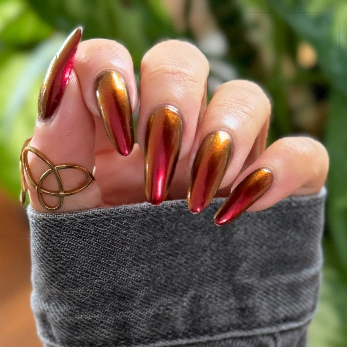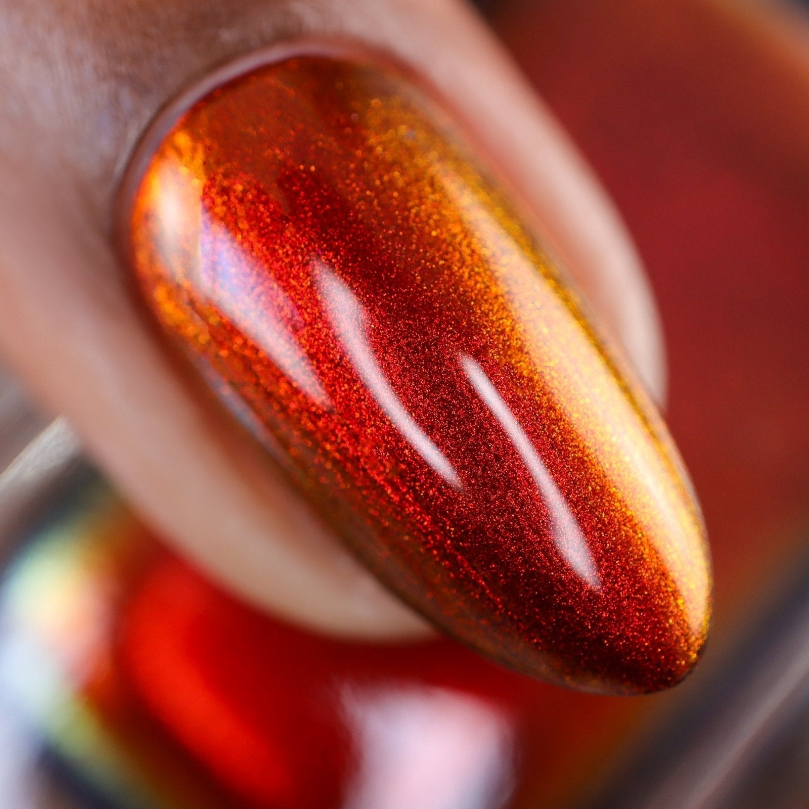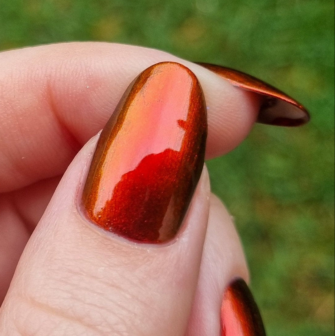 Inspired by the magic of our southern skies, Australis shimmers with quiet wonder. This luminous pink-to-gold scattered holo shimmer with a purple base glows with shifting colour and delicate sparkle.