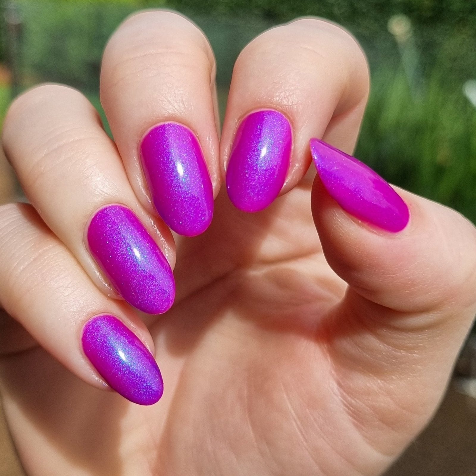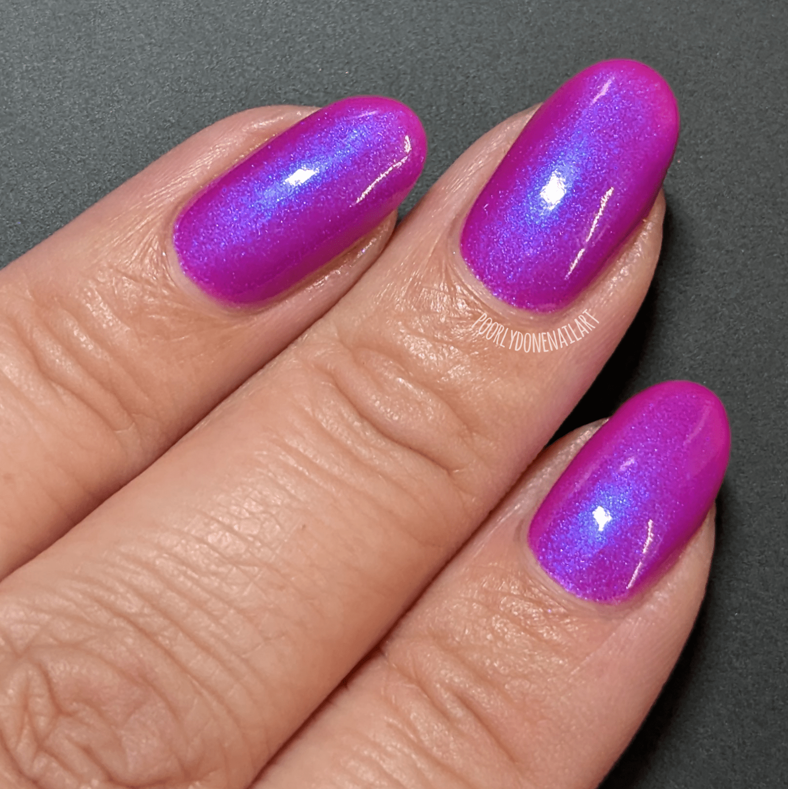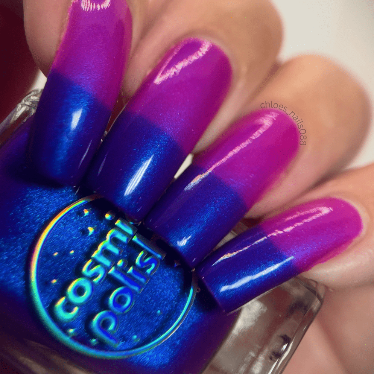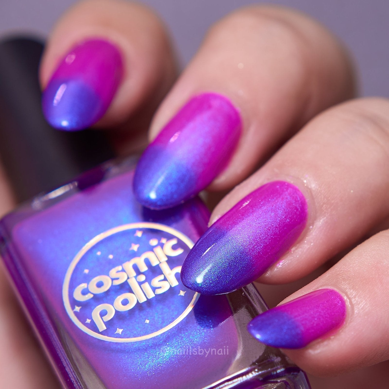 Wildflower Nights is a thermal polish with a strong blue glow that transforms from a bright purple in the cold state to a saturated pink in the warm state.