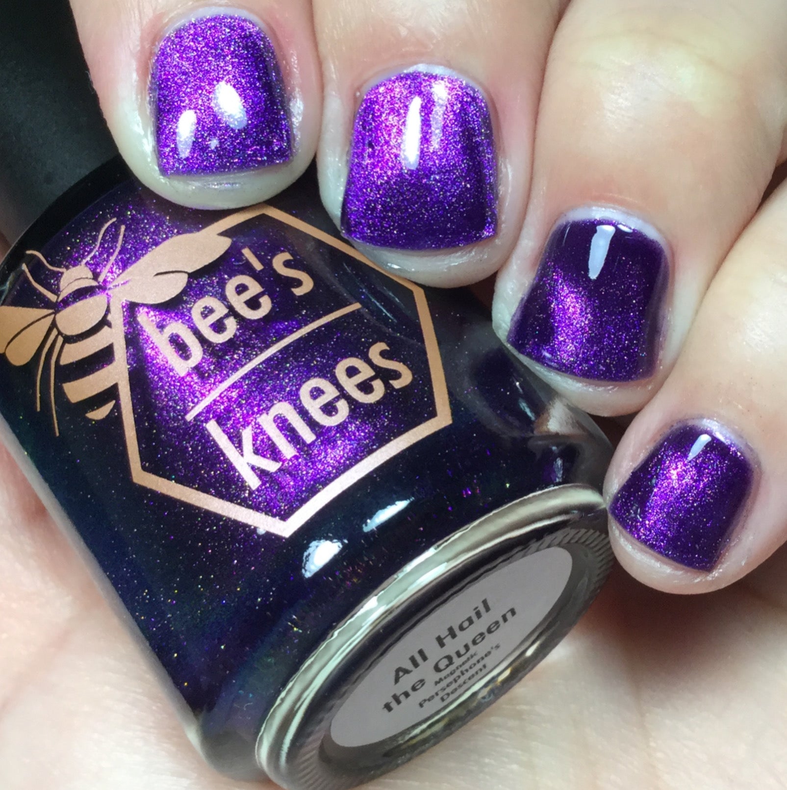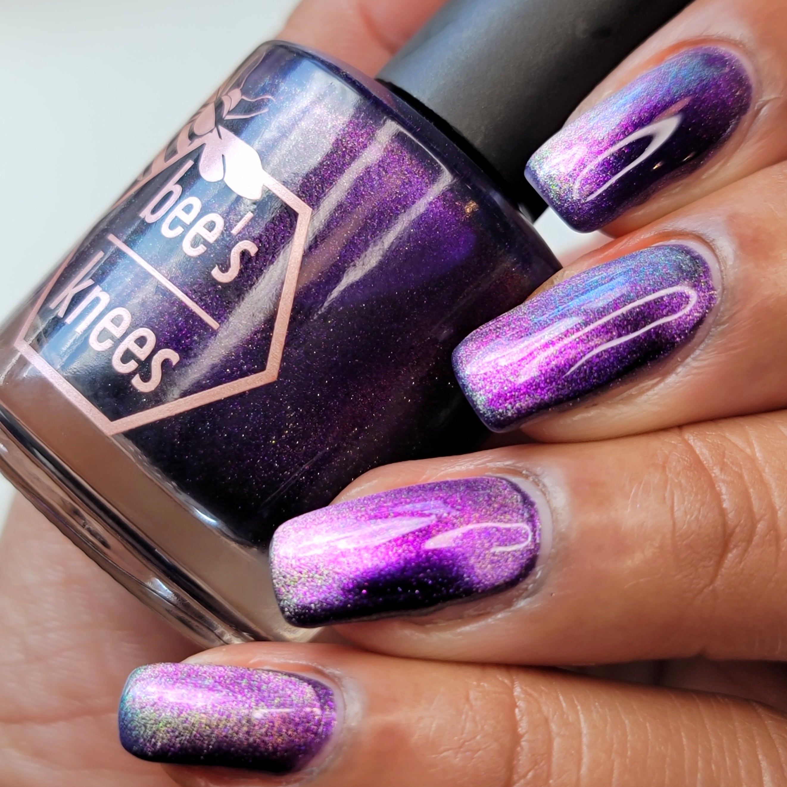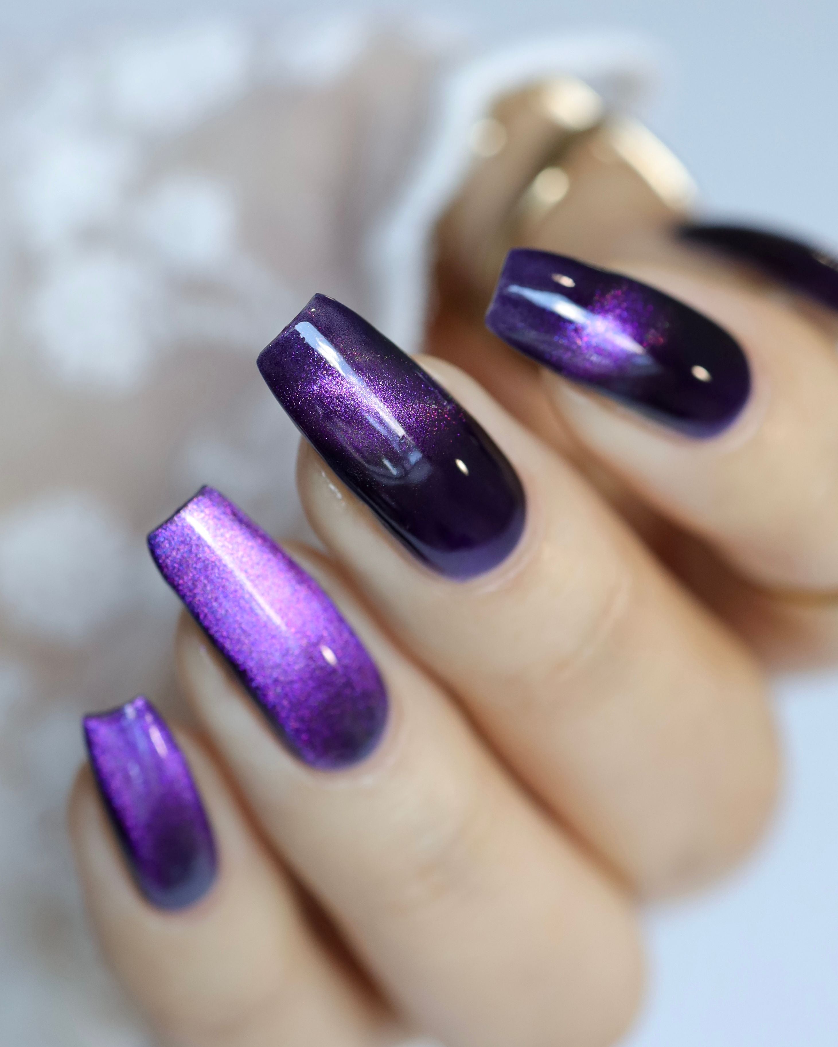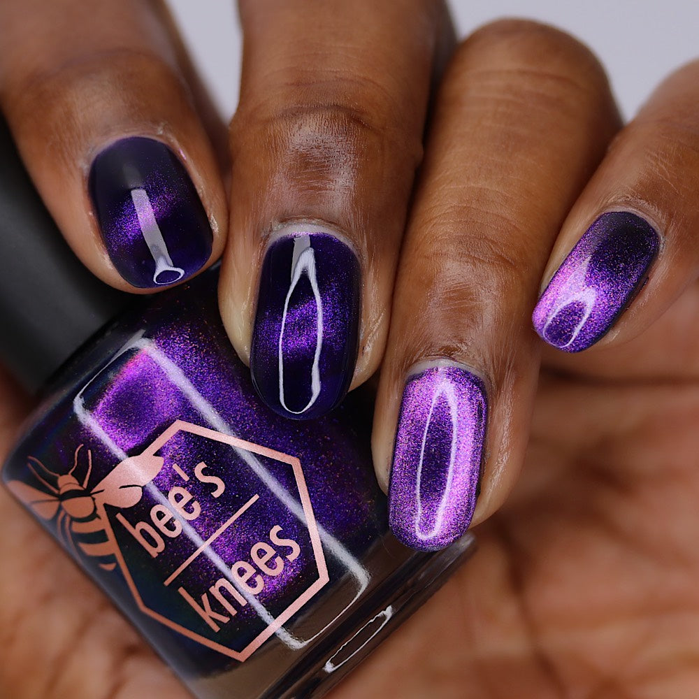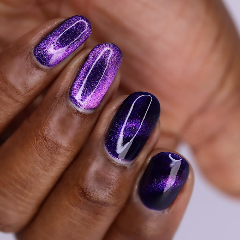 All Hail the Queen - violet with a mosaic magnetic that upon first glance looks like a washed out purple. When magnetized you will see both a purple as well as a rich gold magnetic pigment.