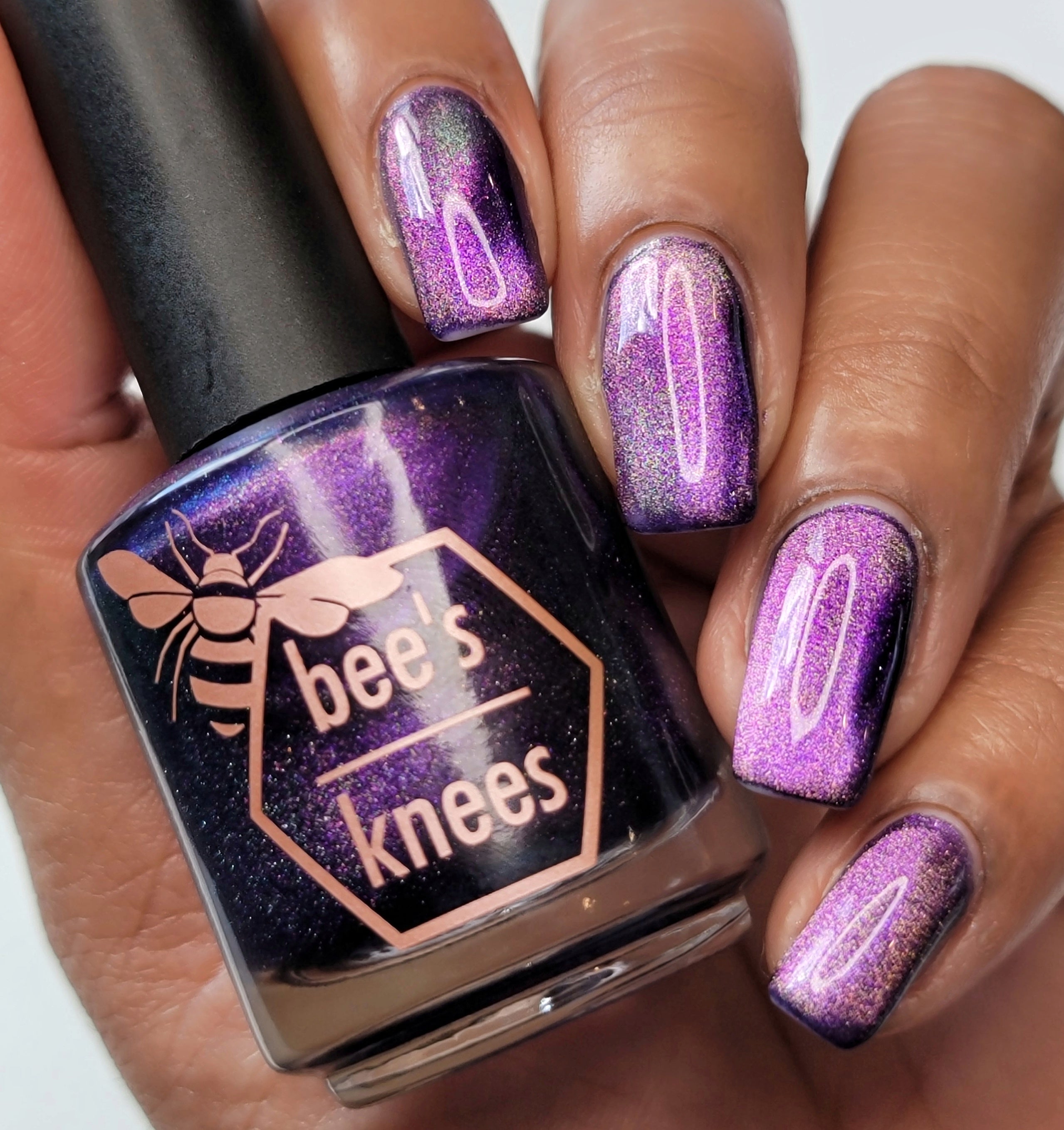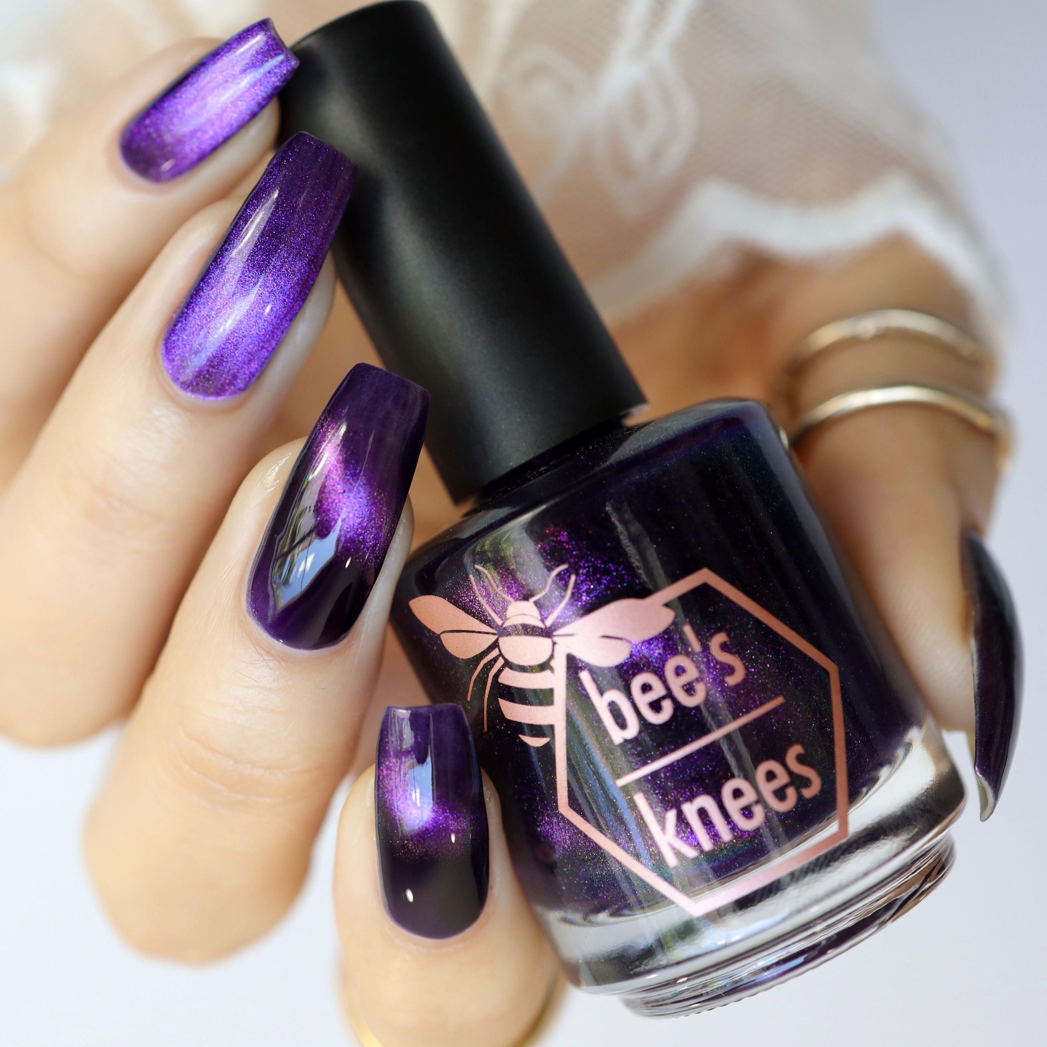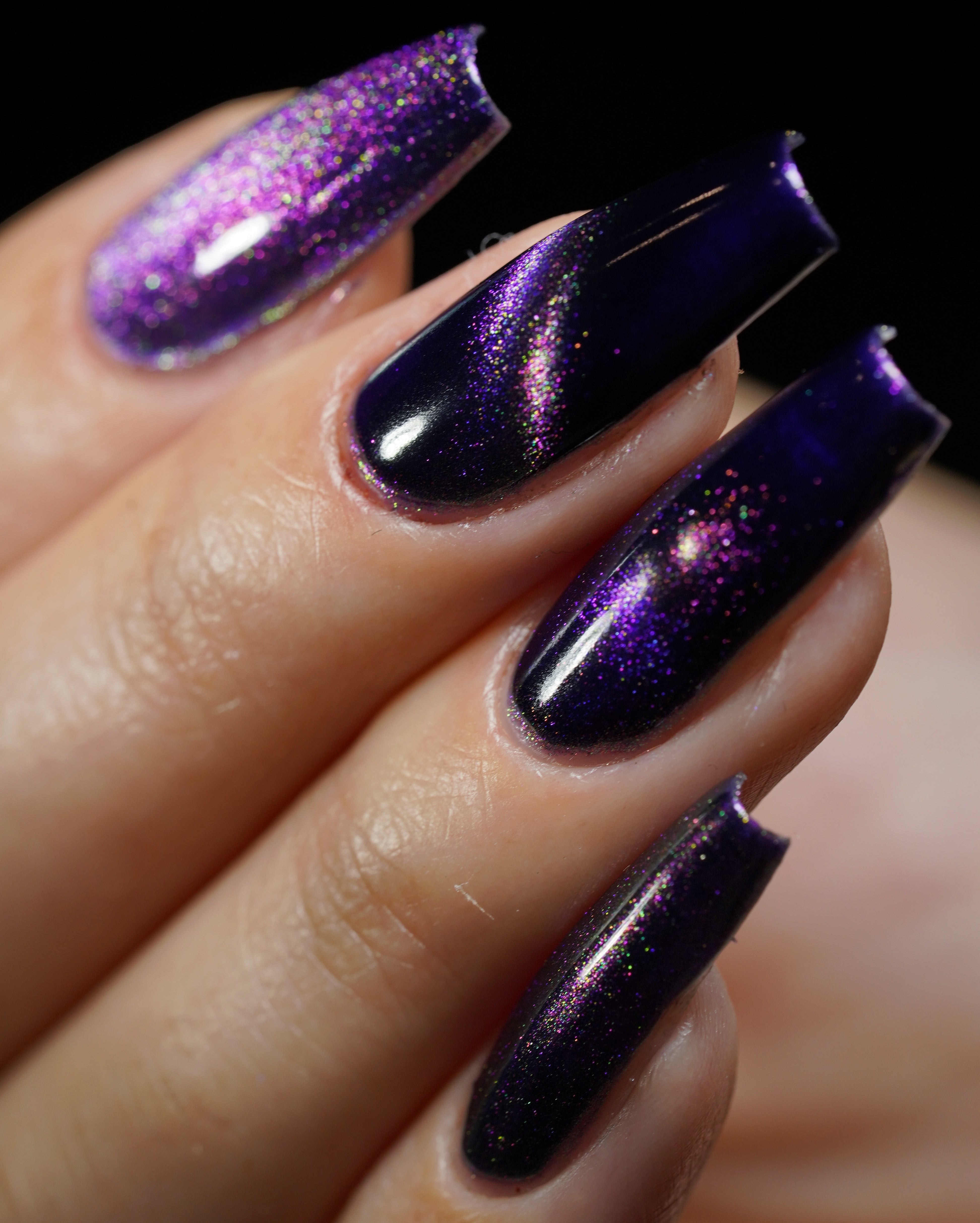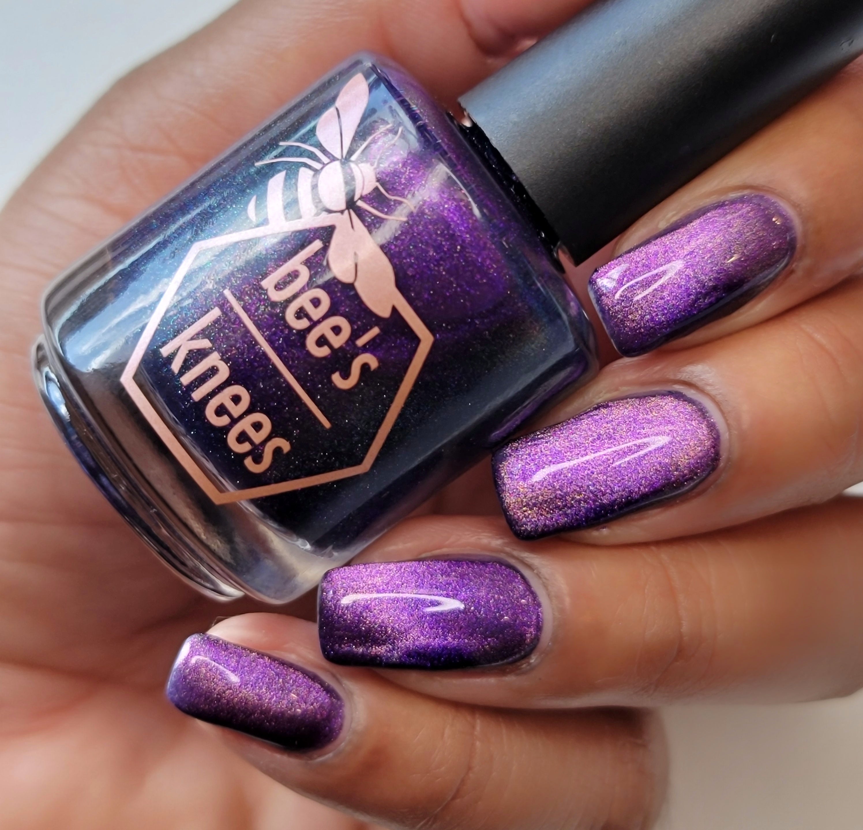 All Hail the Queen - violet with a mosaic magnetic that upon first glance looks like a washed out purple. When magnetized you will see both a purple as well as a rich gold magnetic pigment.