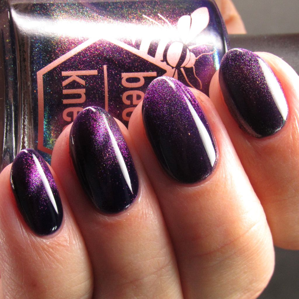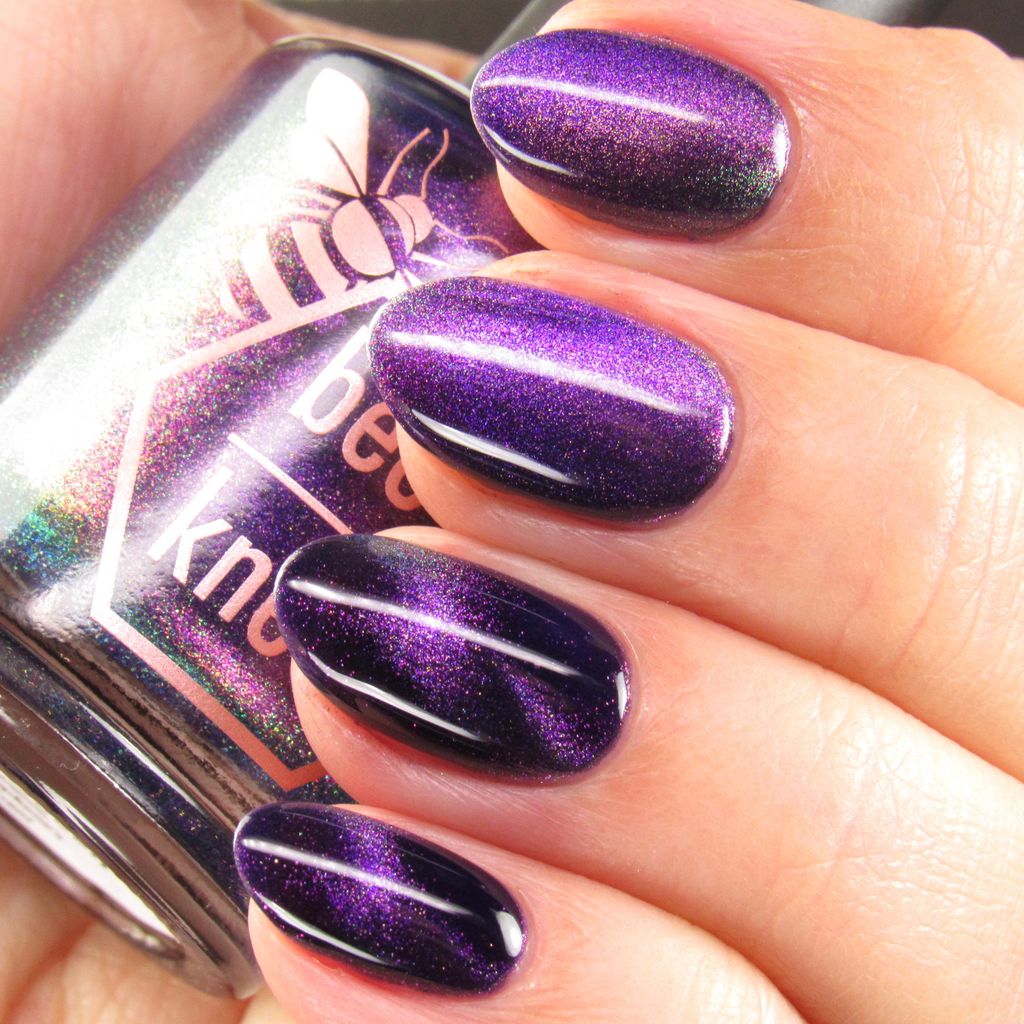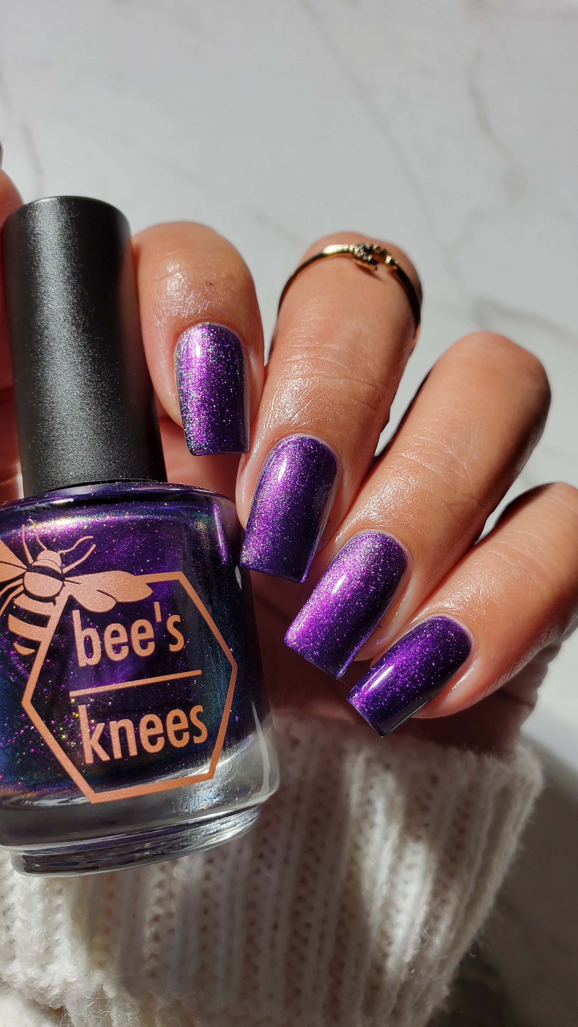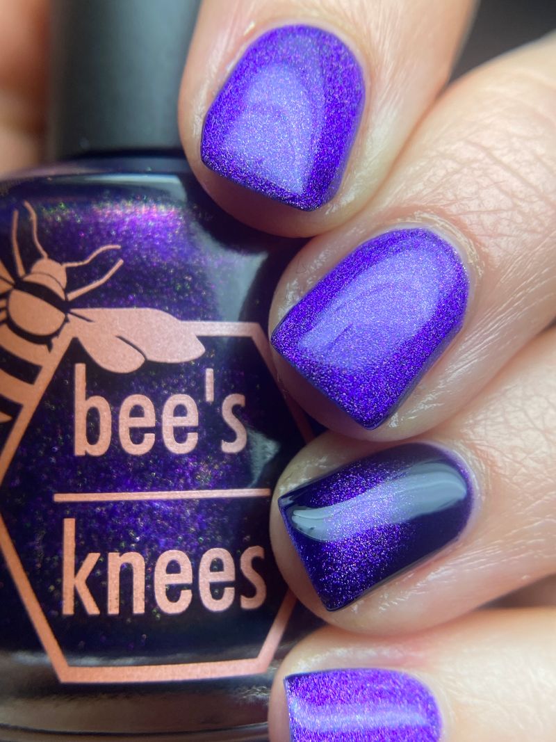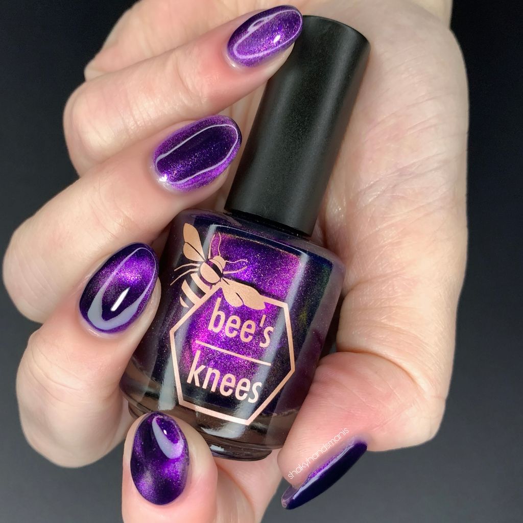All Hail the Queen - violet with a mosaic magnetic that upon first glance looks like a washed out purple. When magnetized you will see both a purple as well as a rich gold magnetic pigment.