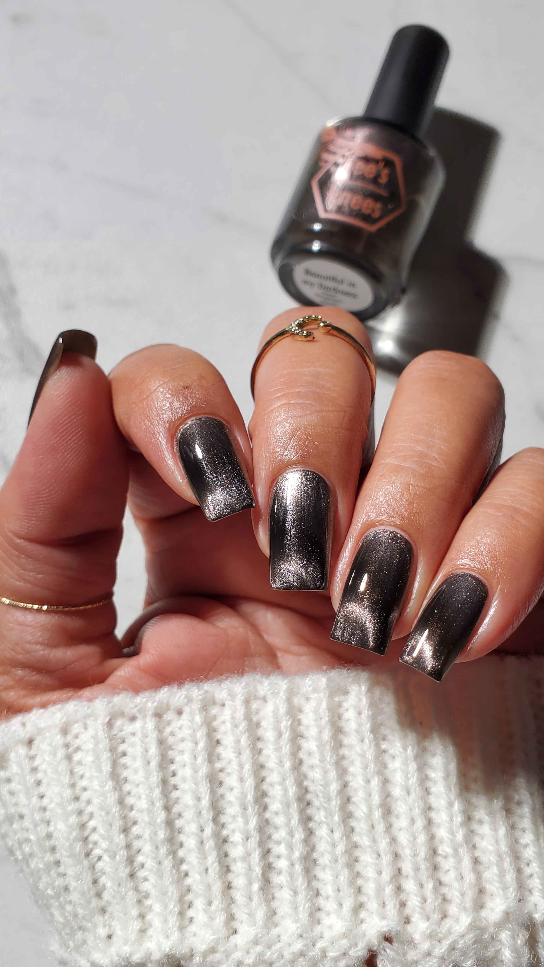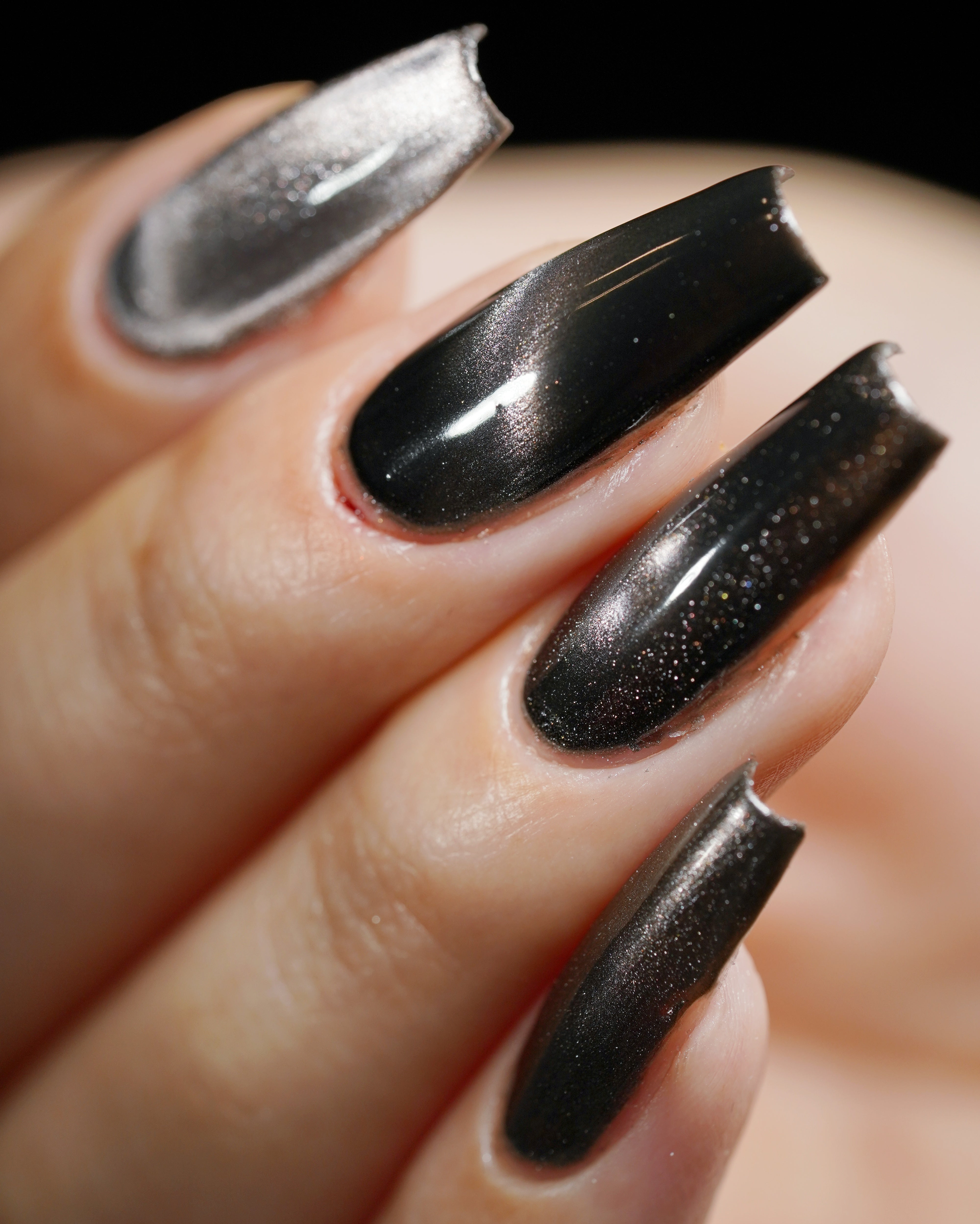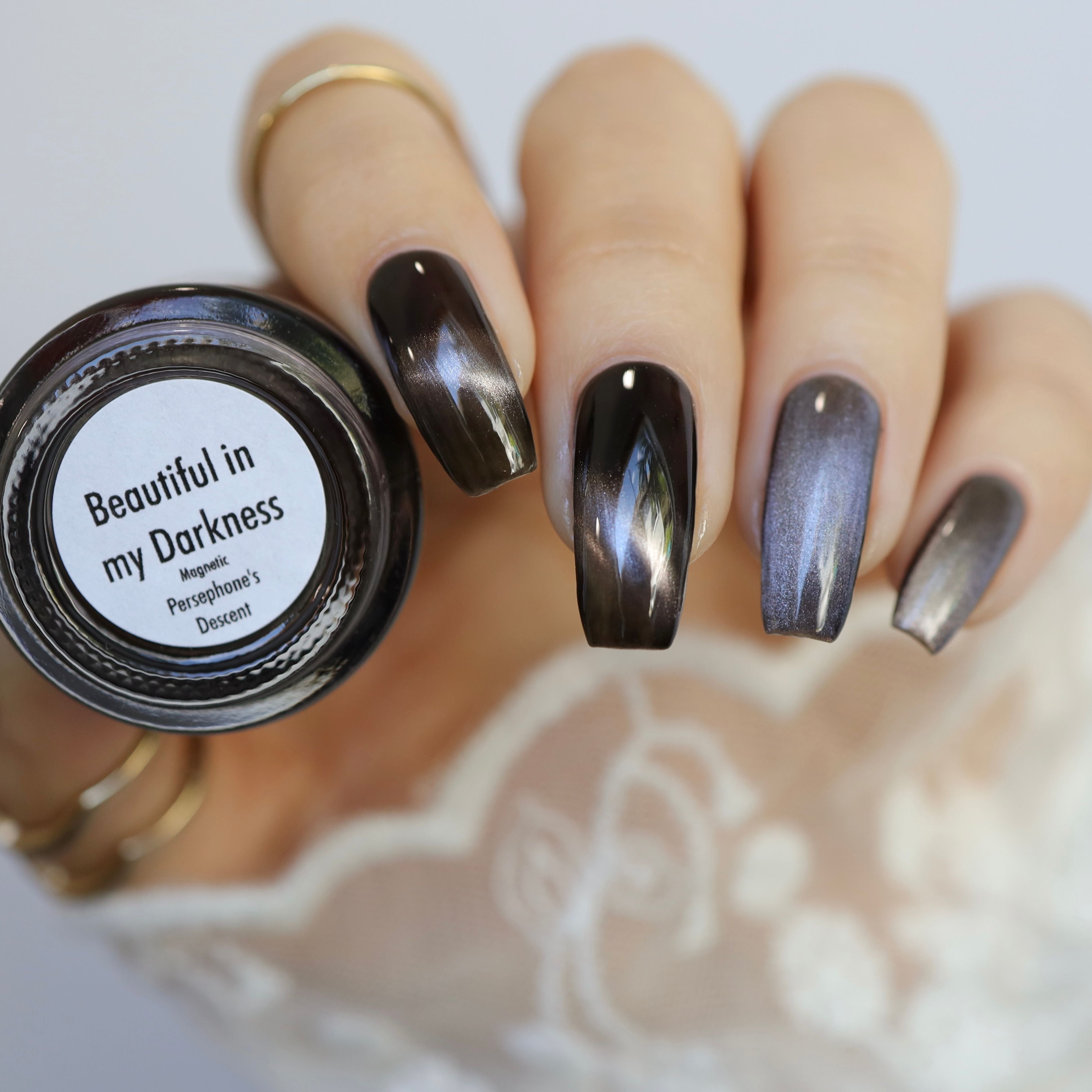 Beautiful In My Darkness - a black polish with fine silver magnetic shimmer.