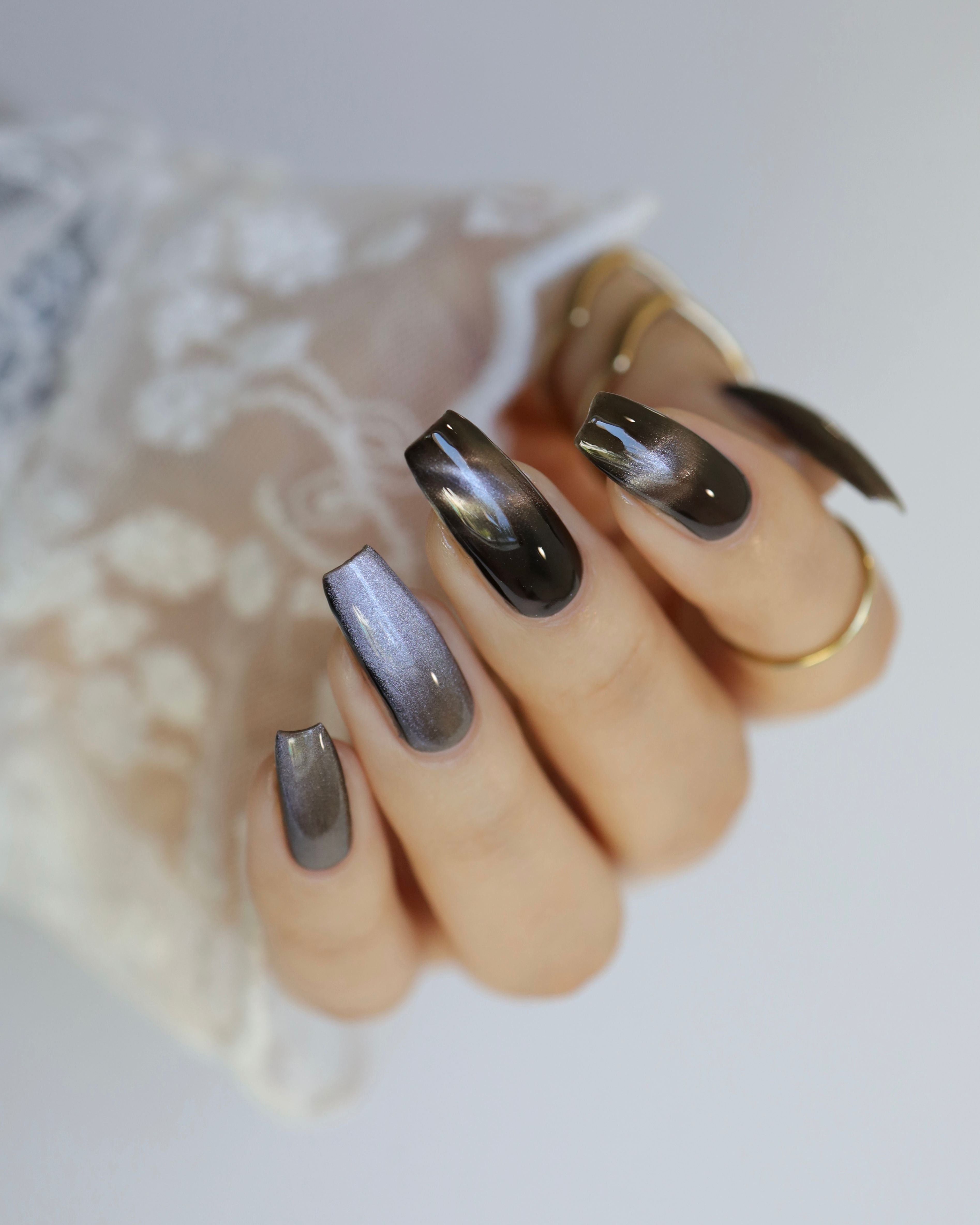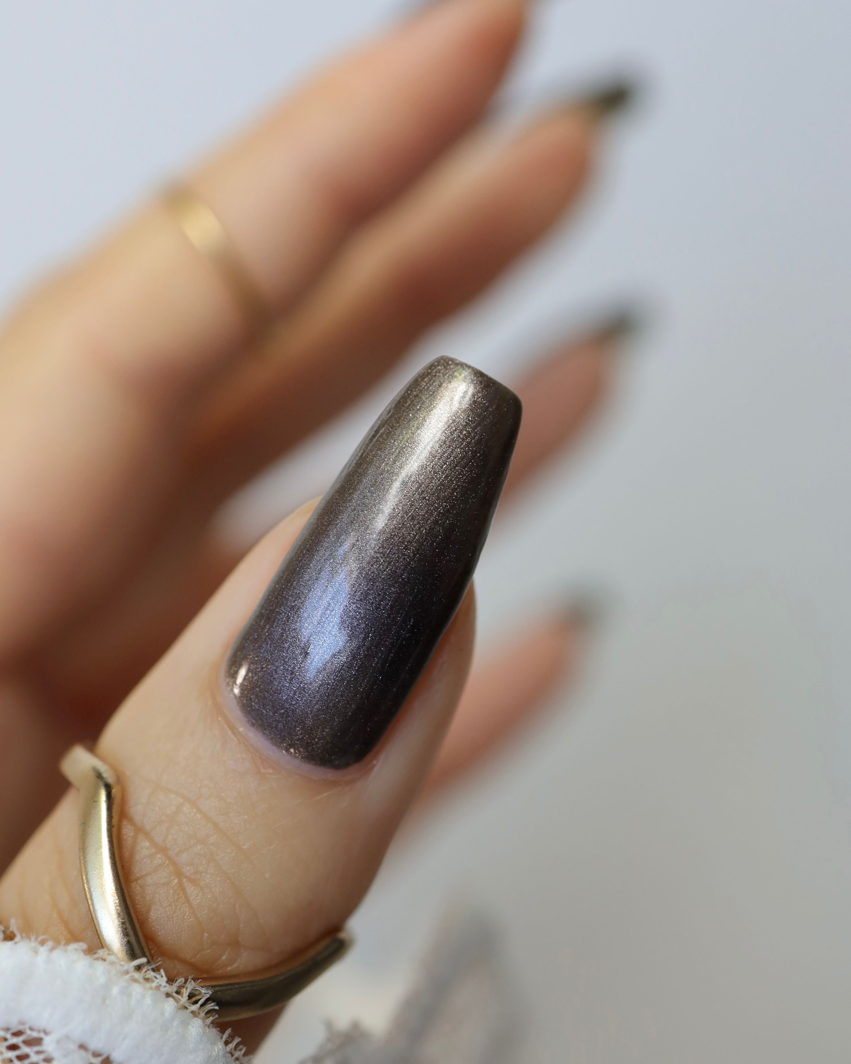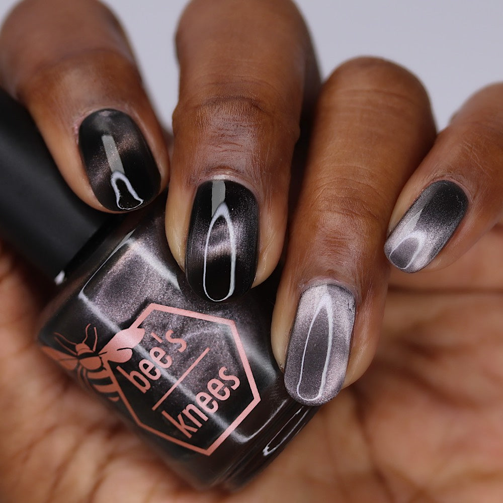 Beautiful In My Darkness - a black polish with fine silver magnetic shimmer.
