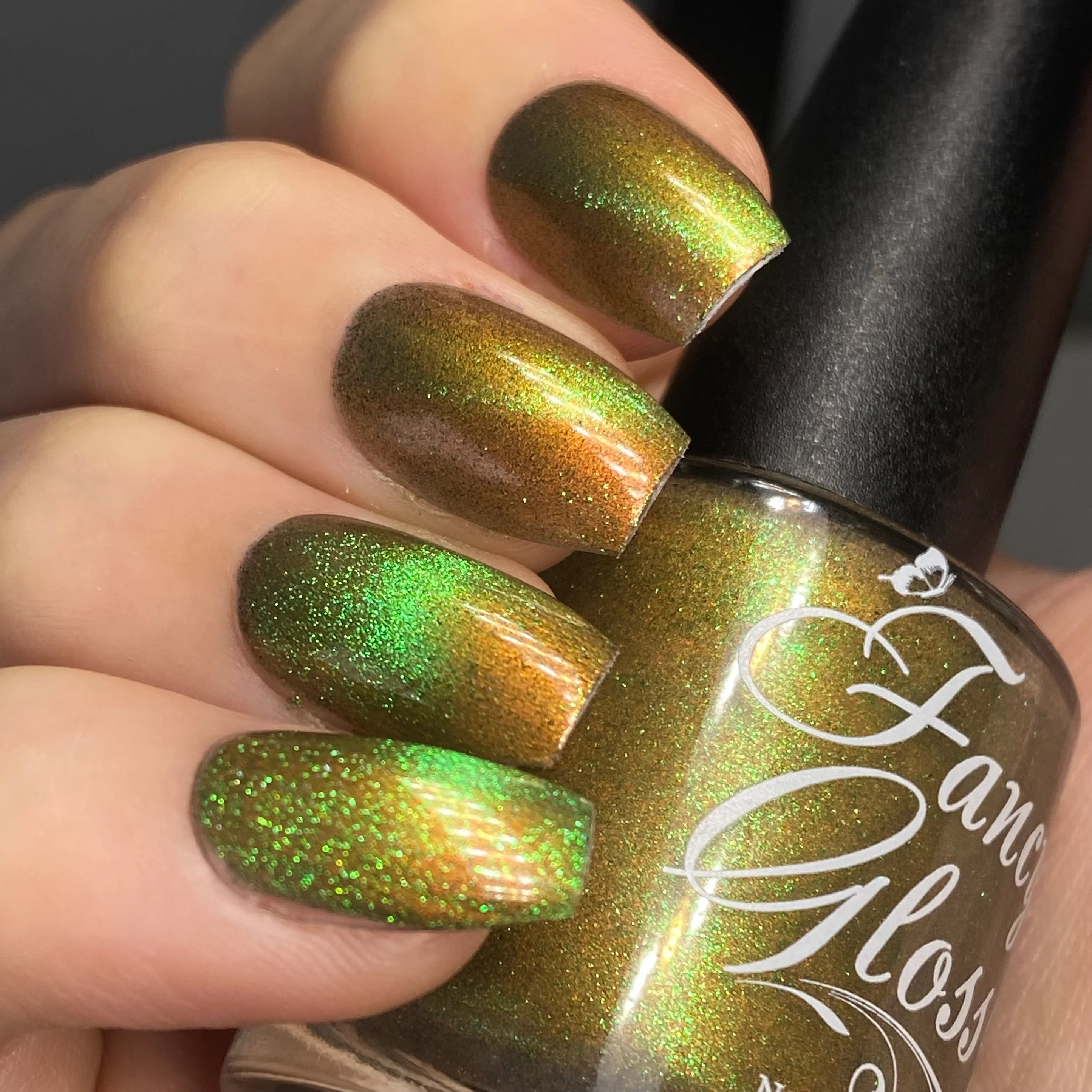 2023 Charity Polish - Balsam Fir - a green base with green-blue microflake iridescent shifting shimmer. This is a metallic afterglow finish. $7 a bottle will go towards our 4...