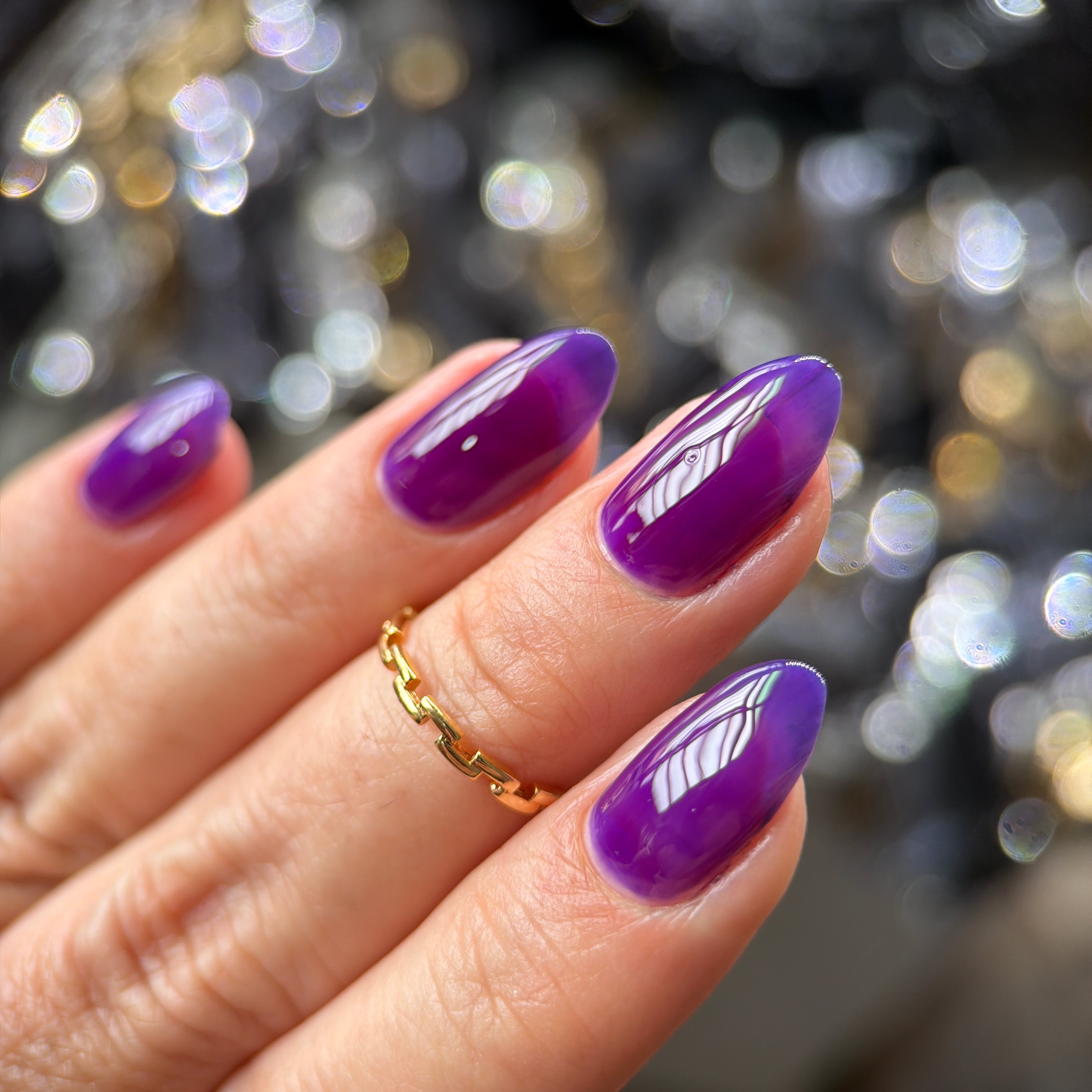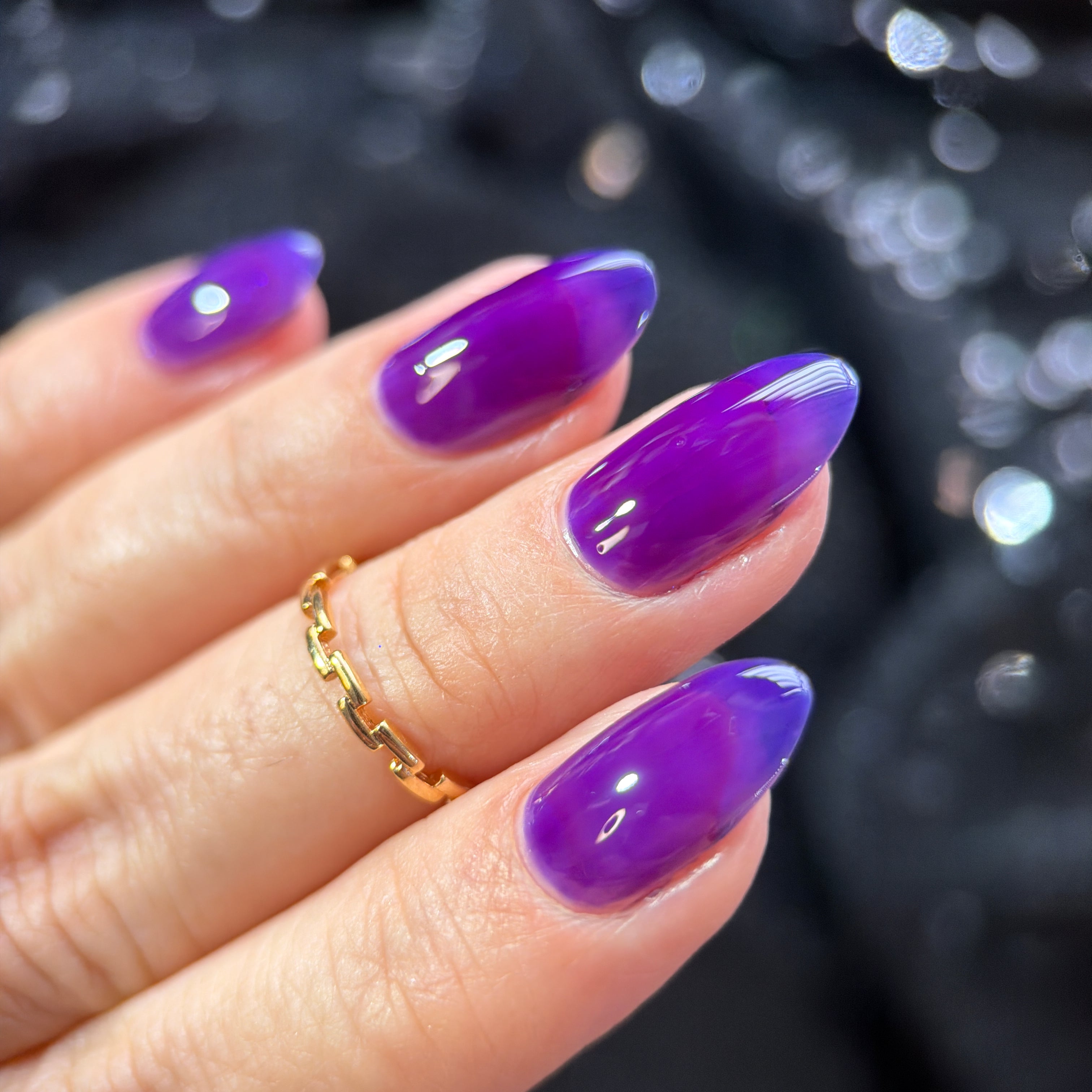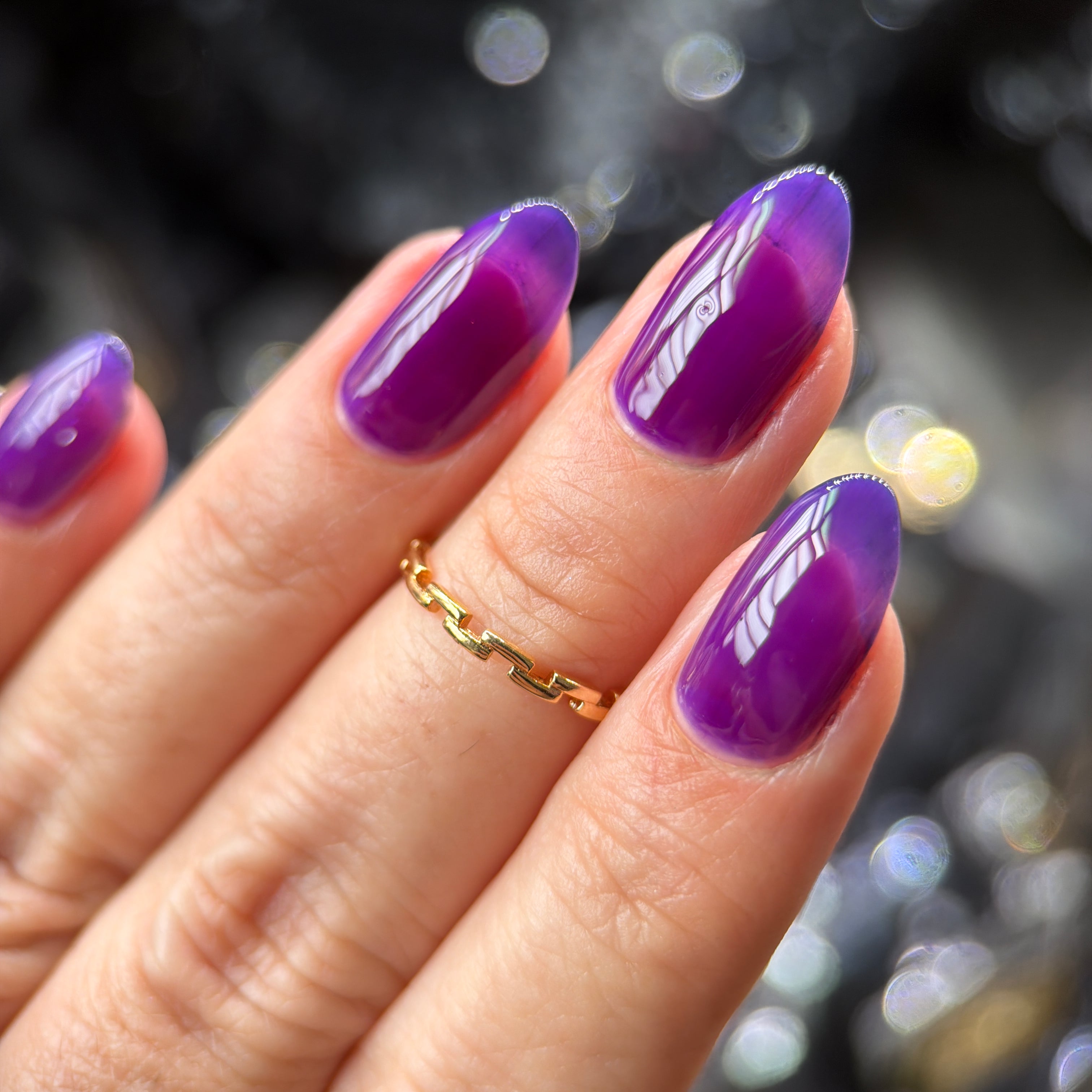 she has a mix of purple and aqua flakes they shift peach, pink, green, and bronze.