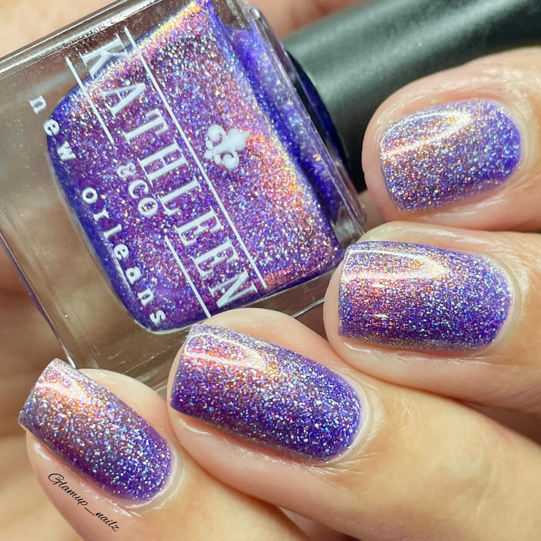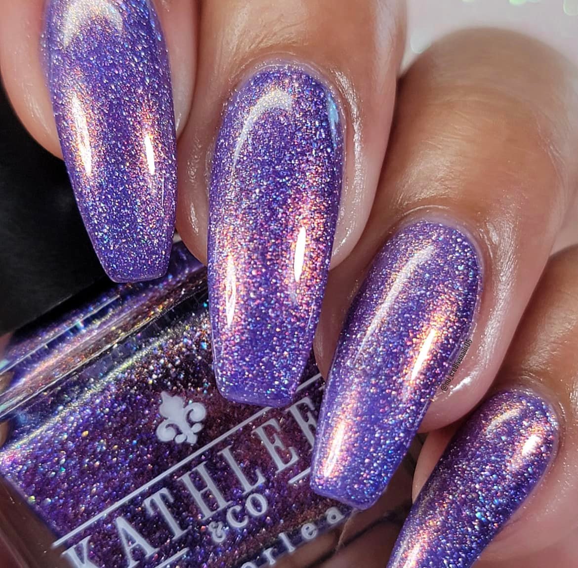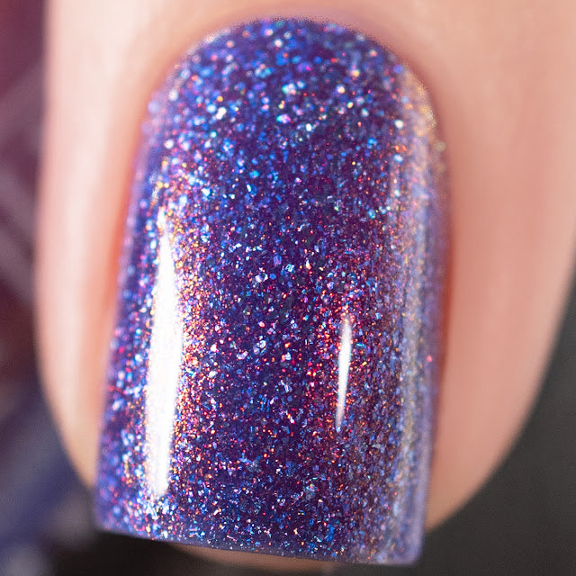 Warm and Cozy is described as a light violet with two different color shifting shimmers in red and gold and tons of holo microflakes.
