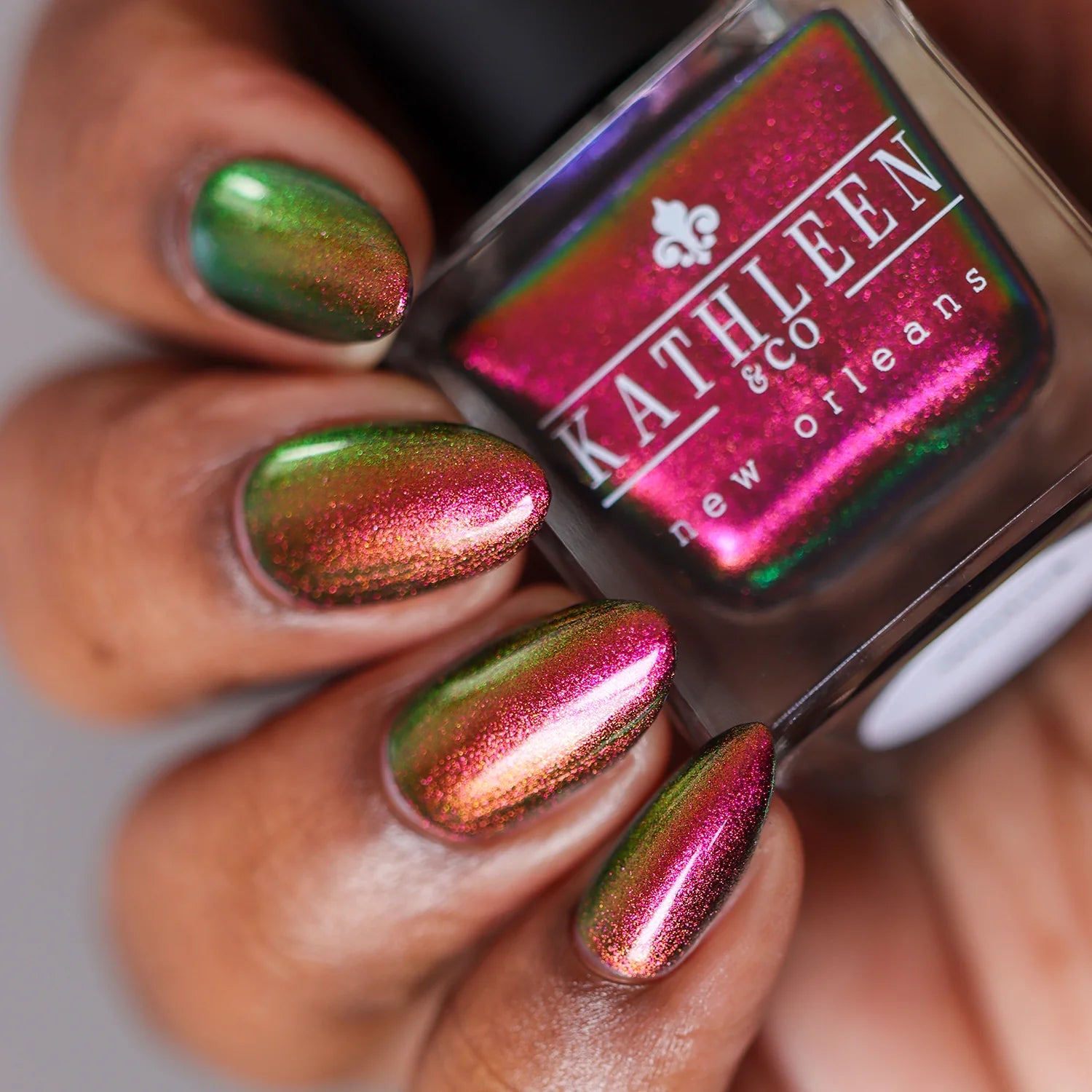 Worlock - multichrome that shifts from fuchsia to orange to green.