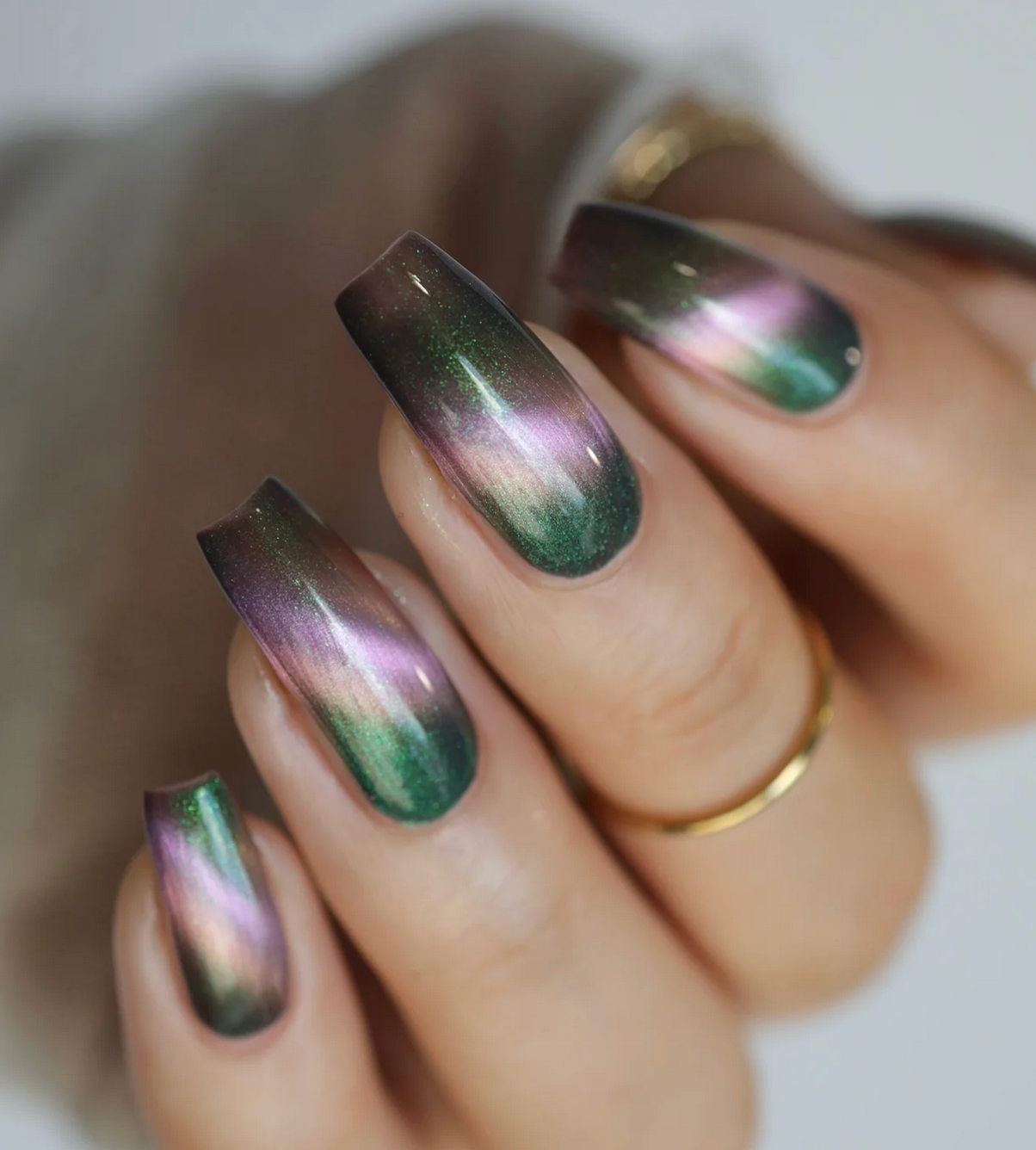 Ghost Lace- a rainbow shimmer that shifts copper, gold, green to aqua.
