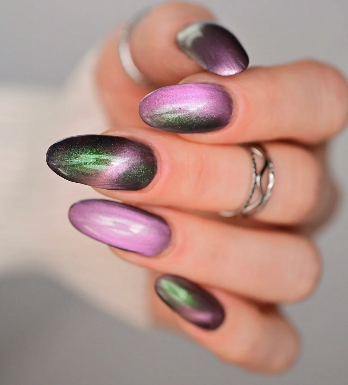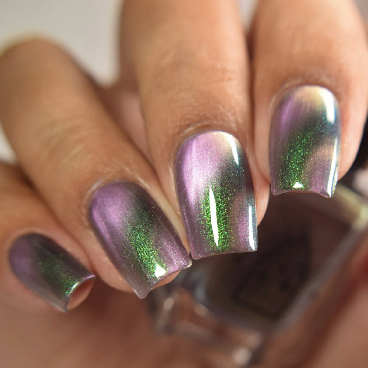 Crystal Fang- an icy blue grey with pink to copper shimmer.