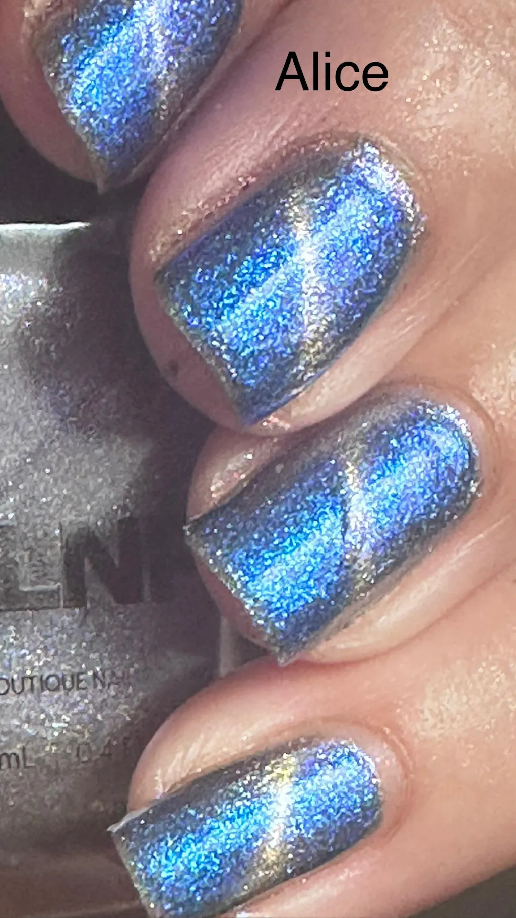 Alice is a magnetic effect nail polish, a standout formula with metal shavings that shimmer on their own but require a magnet to attract the metallic particles into their signature effect!