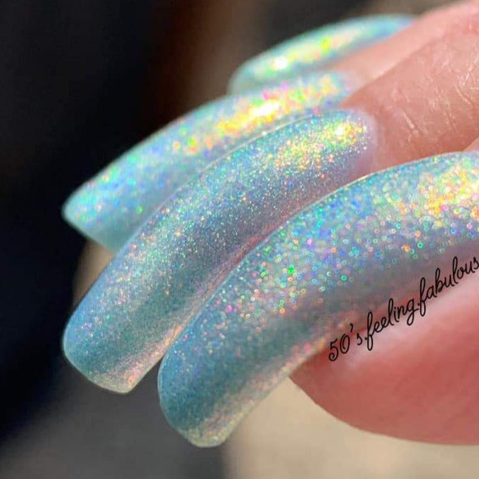 Summer Lovin’ is a pastel teal holographic with a stunning contrast!