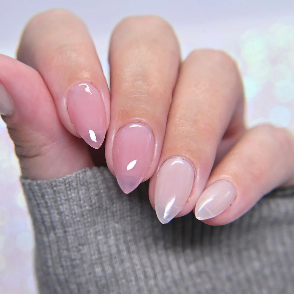 Cherry Glaze Is a scented tinted topcoat with a hint of black cherry color and scent. Wear this glaze for a delicious glossy coat over any shade, or wear it alone for a subtle color over natural nails. Last 2 swatches shown 3 coats on its own