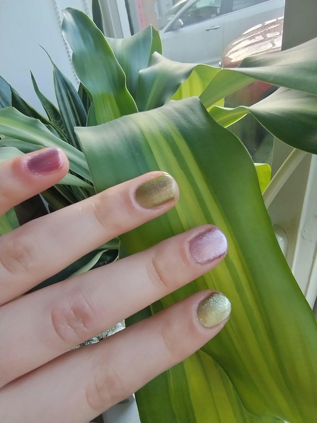 Excuse the picture being both Flora and another polish (Best Fronds by KBShimmer) but they go together nicely! Flora is a wonderful polish, applies smoothly with very reactive magnetic particles so super easy to make nice patterns! This is just velvet but I can also do really good lines just like the stock image!! I reccomend this fondly!!