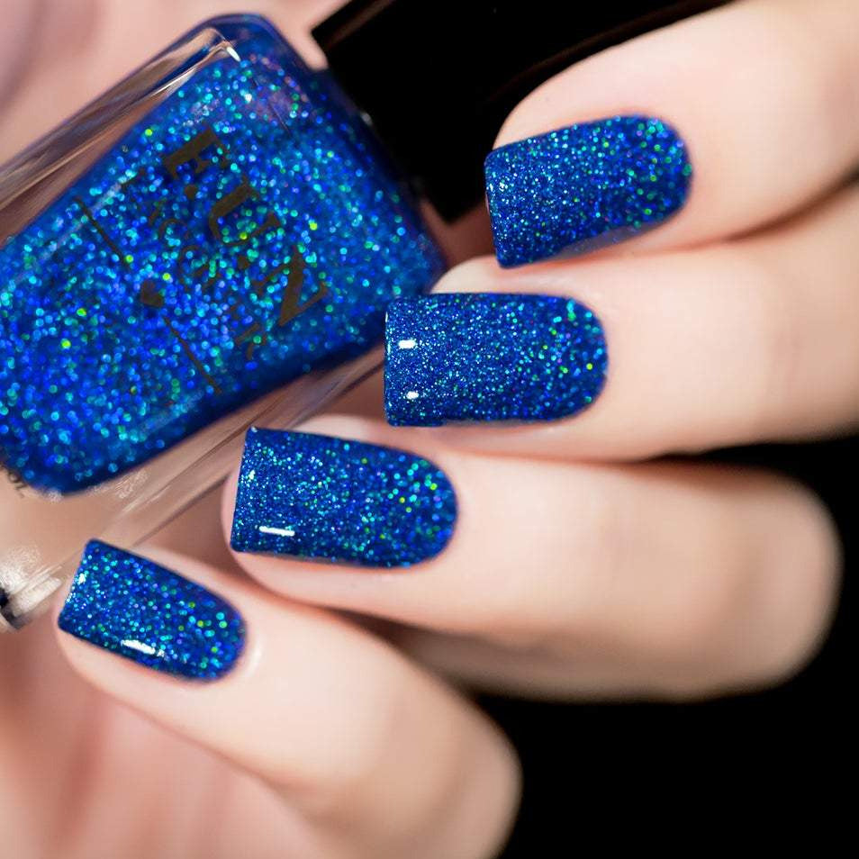 BFF is a sapphire blue micro fine holographic glitter nail polish. Jam packed with 100% pure holographic glitter in clear base.