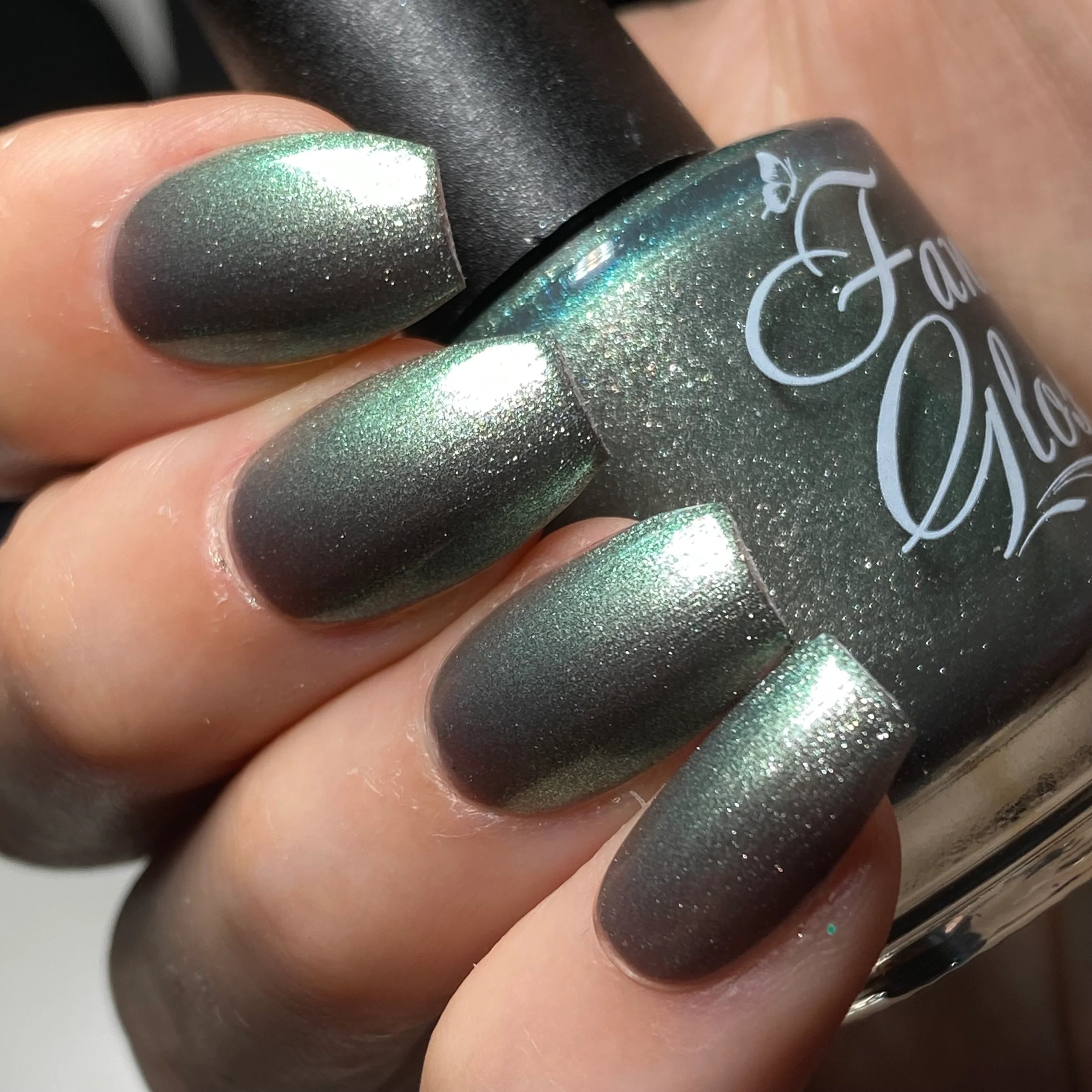 Dark green base with silver micro reflective glitters. Item comes in a glass 15mL bottle with stainless steel mixing beads. This product is 5-free, that means that it doesn't contain:...