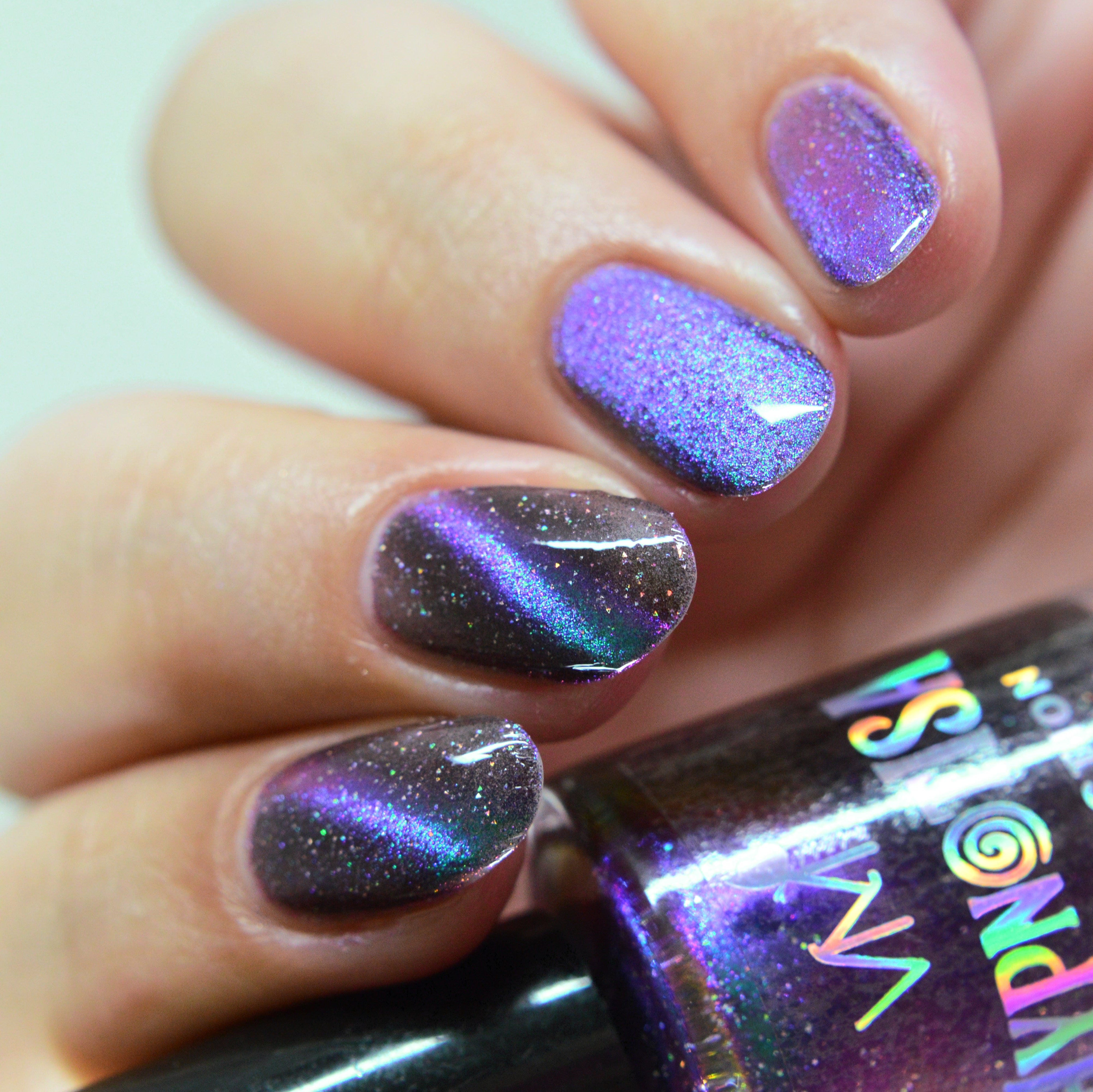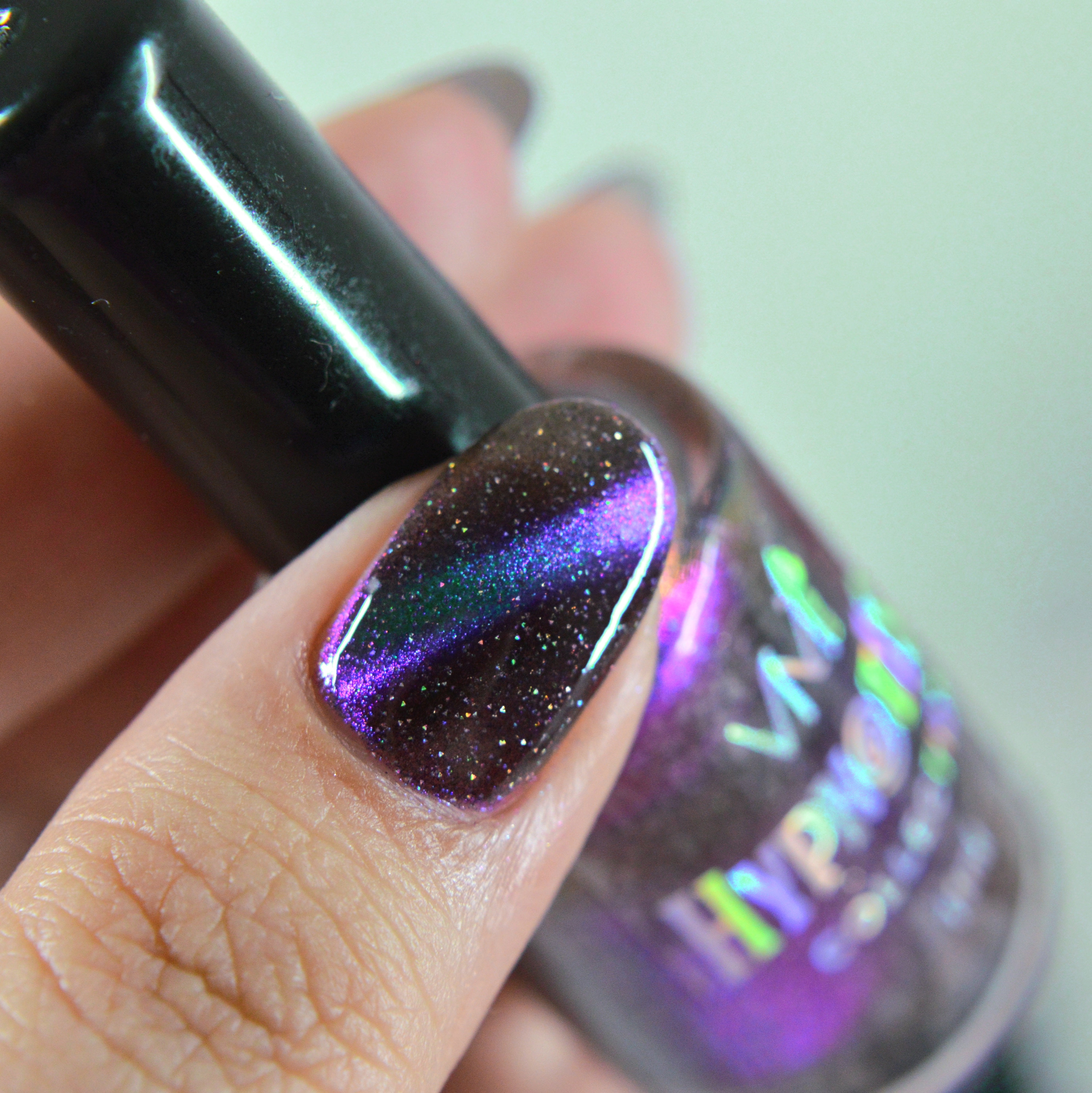 Little Star - a subtley smokey base with bright blue-purple shifting iridescent shimmer and holographic micro flakes.