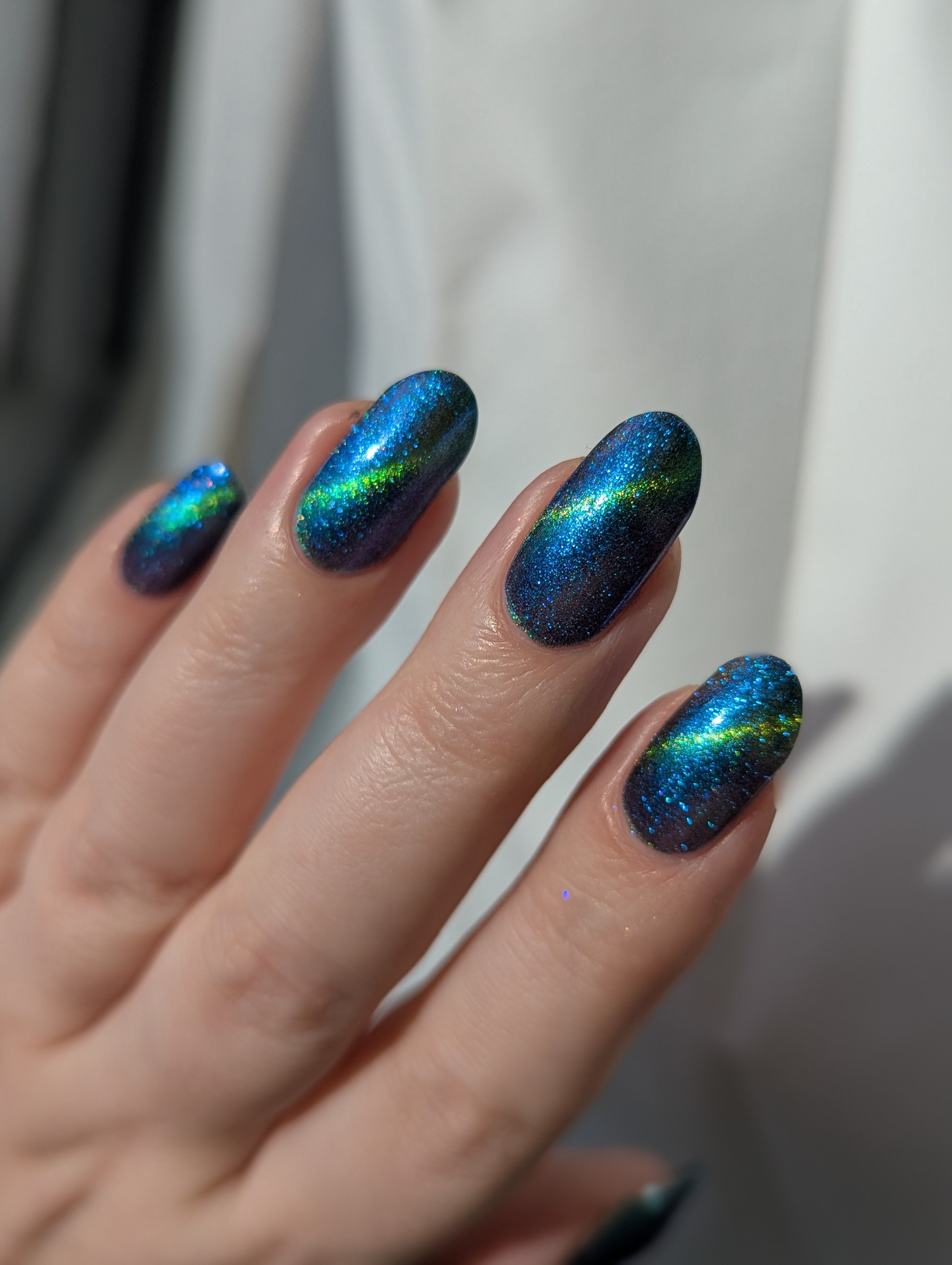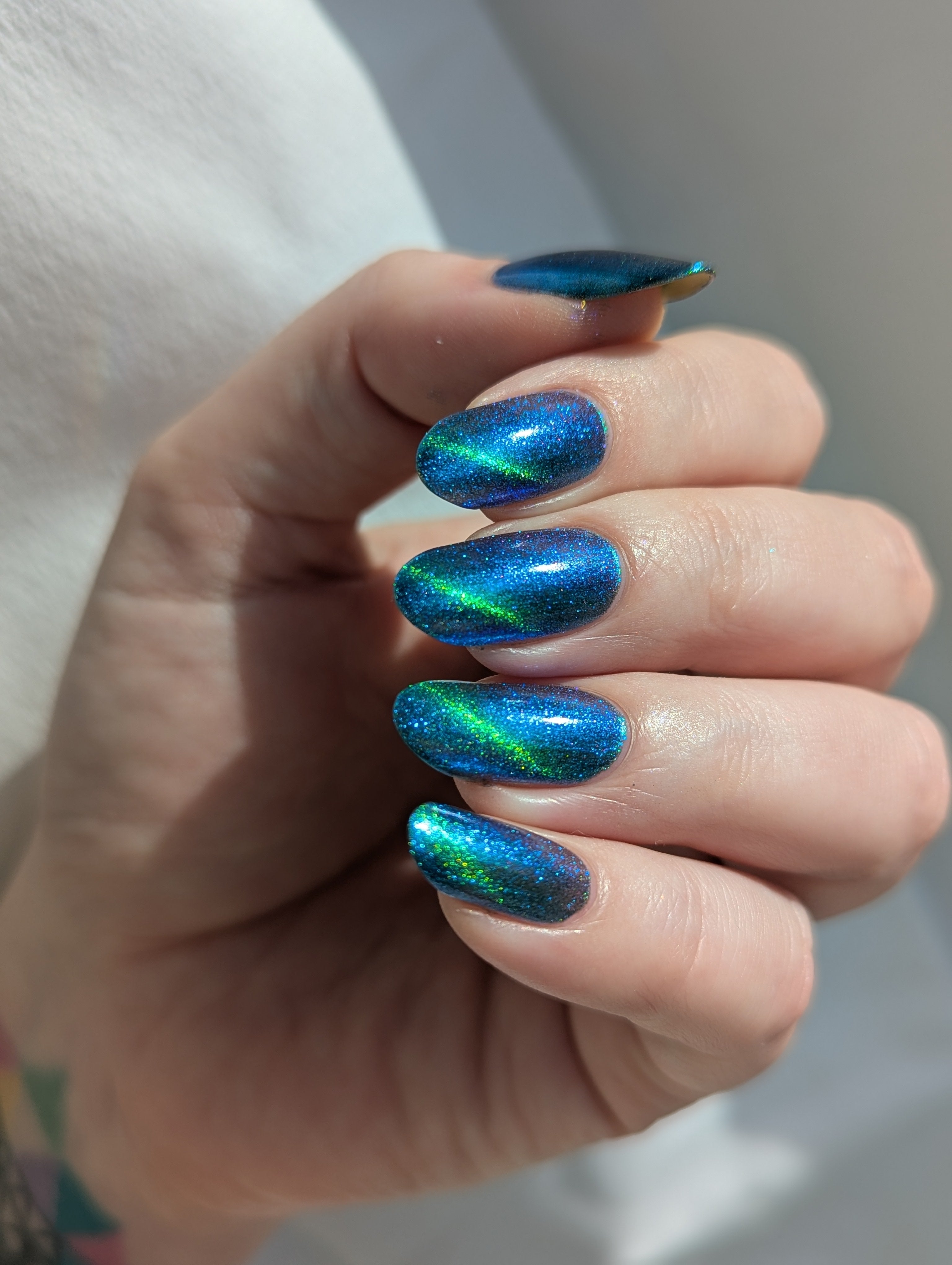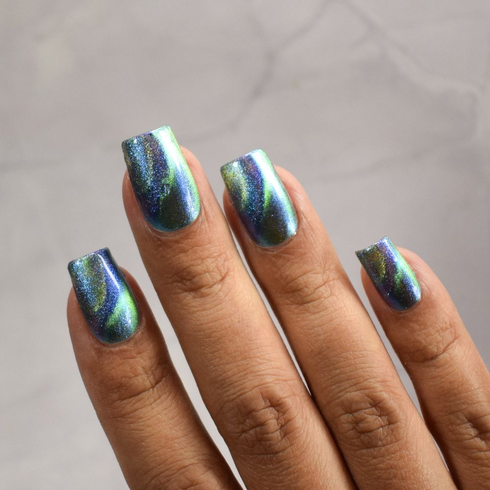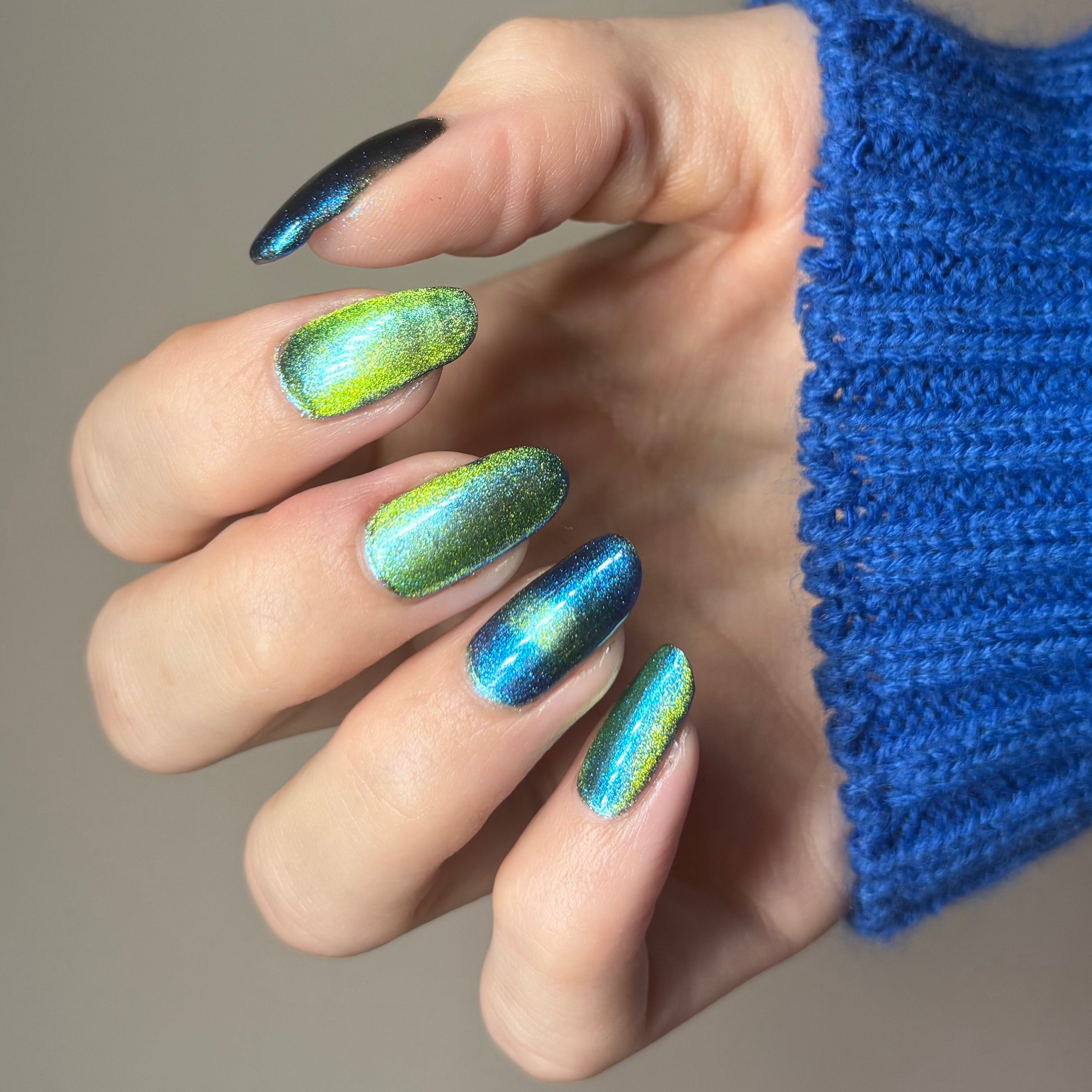 It Doesn't Know Any Better, But You Do - an indigo to purple pastel multichrome with a pale pink to peach magnetic multichrome shimmer Magnetic tools sold separately – Magnetic Tools