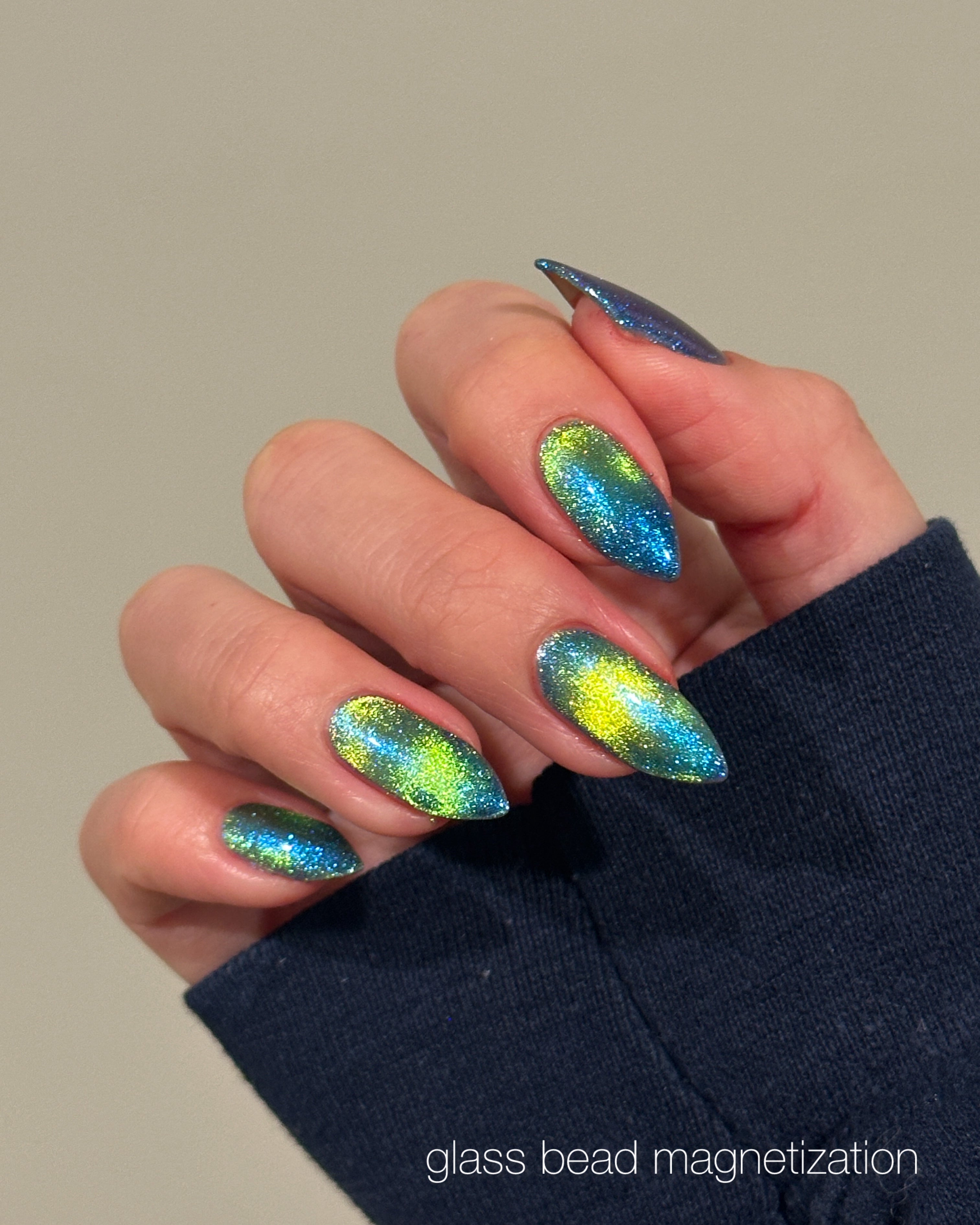 Please Always Helps - a red to orange to gold pastel multichrome with green to blue magnetic multichrome shimmer. Magnetic tools sold separately – Magnetic Tools