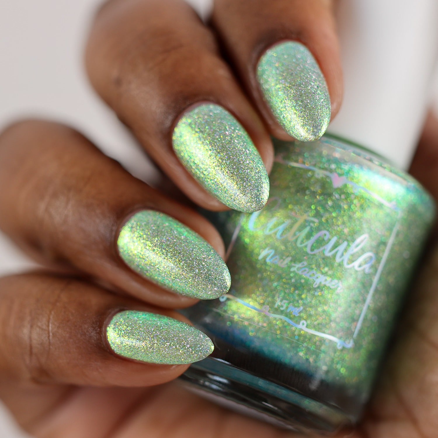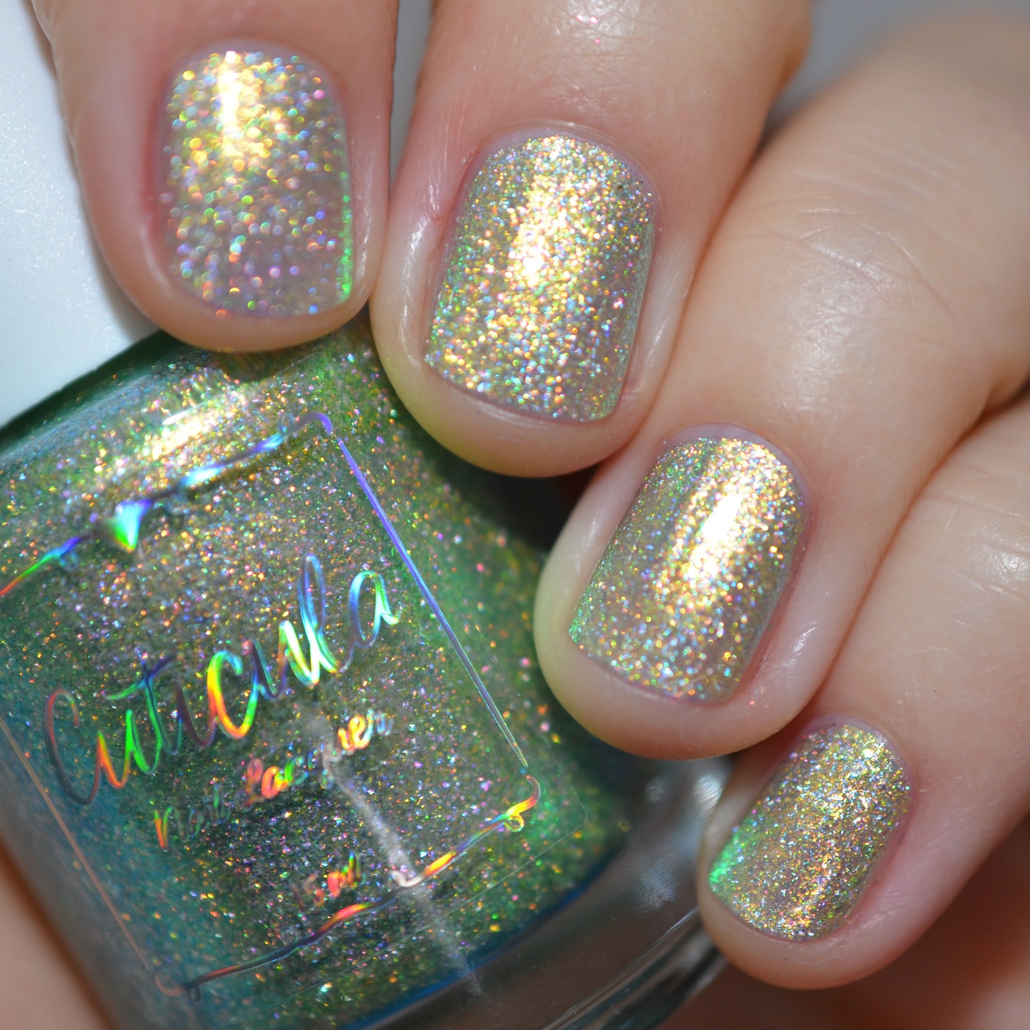 'Kissing Frogs' a green/gold/ shifting shimmer base with silver holographic flakes.