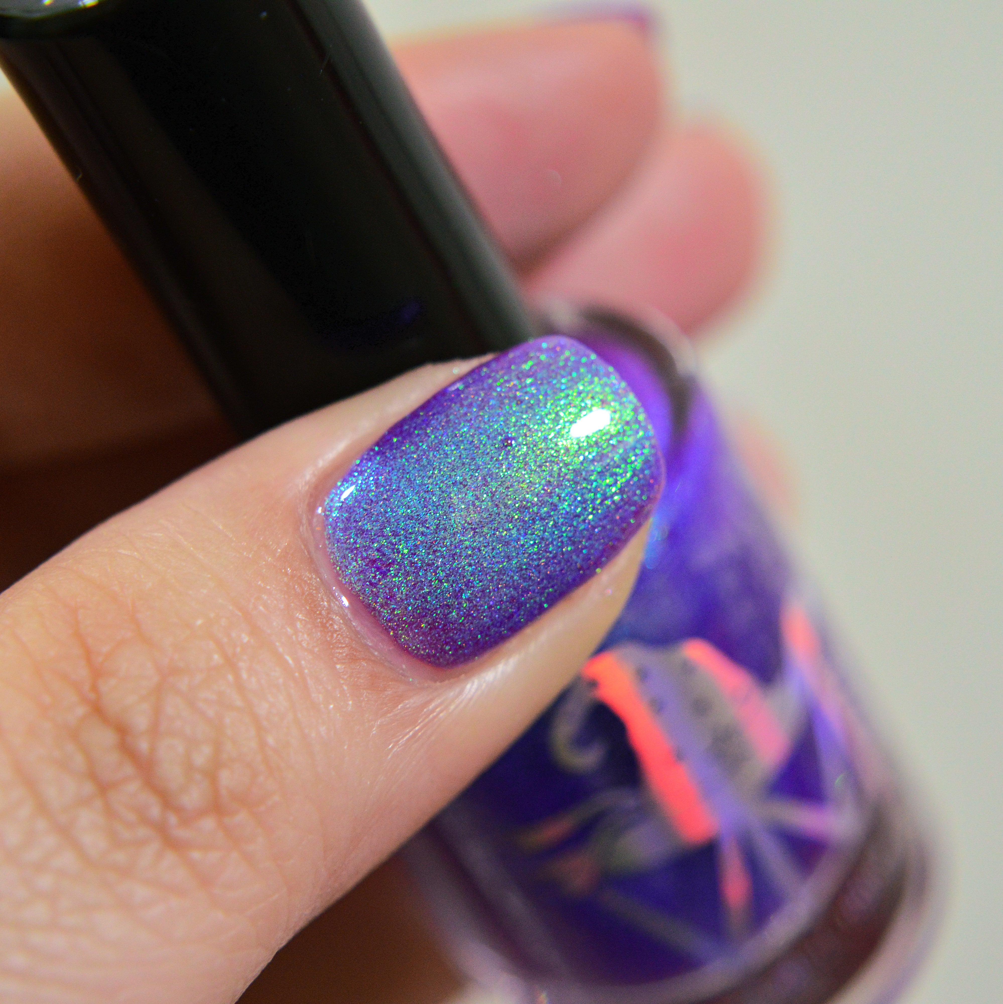 Zero's Glow: Yellow/orange solar pigment with purple metal flakes and neon micro flakes. Part of CineSpook Collection