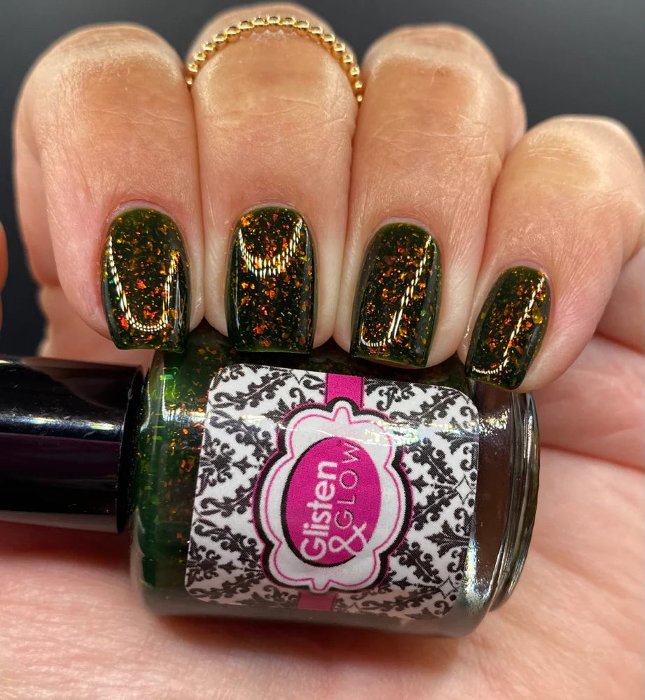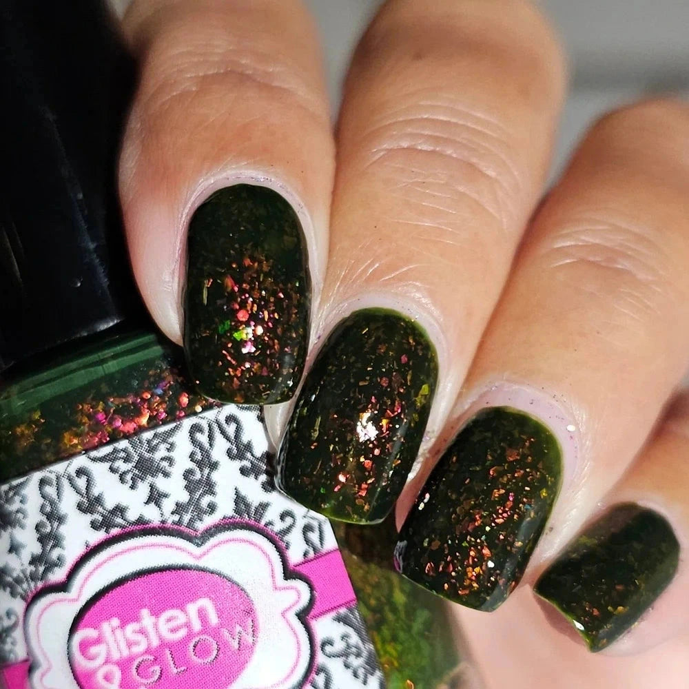 Plot Twist – white based crellie polish loaded with various shapes and sizes of glitters in shades of red, purple, brown and yellow Add a layer of Glisten & Glow...