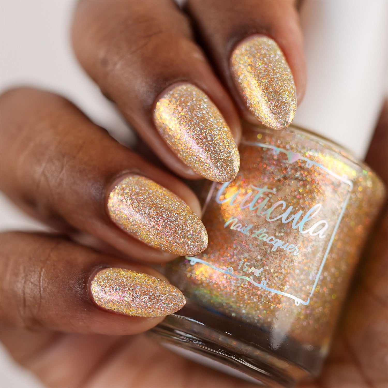 'Pages & Petals' a yellow/gold/pink shifting shimmer base with holographic flakes.