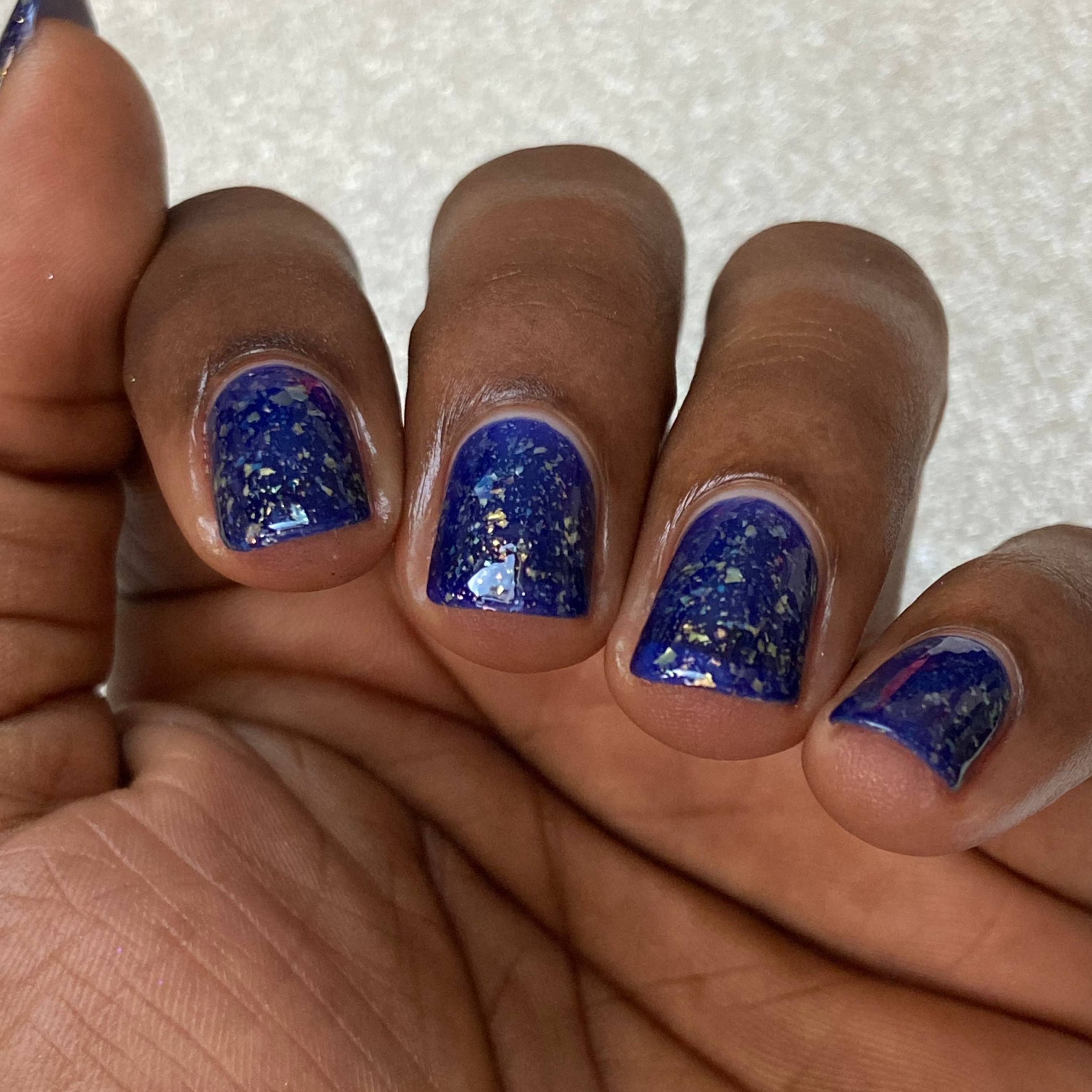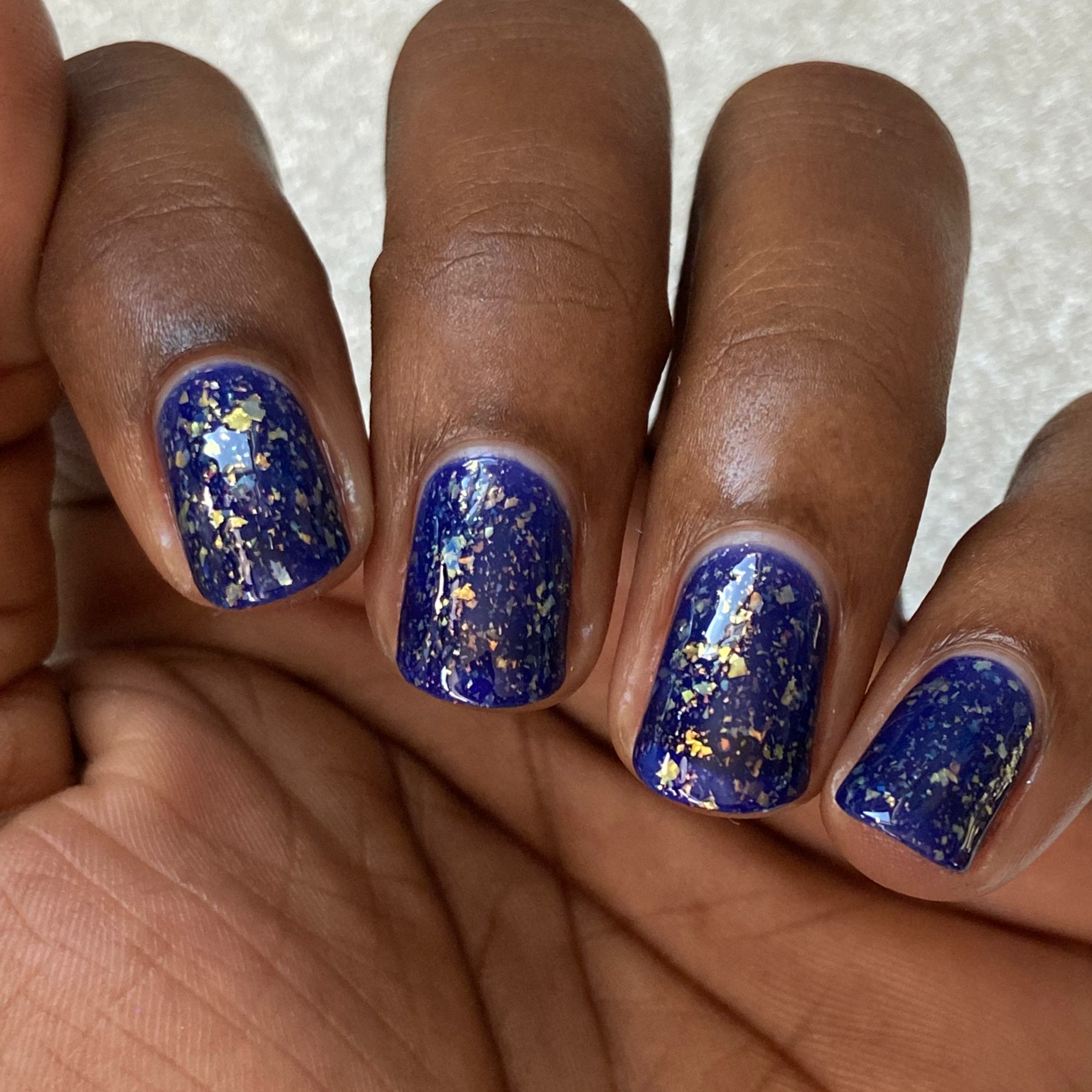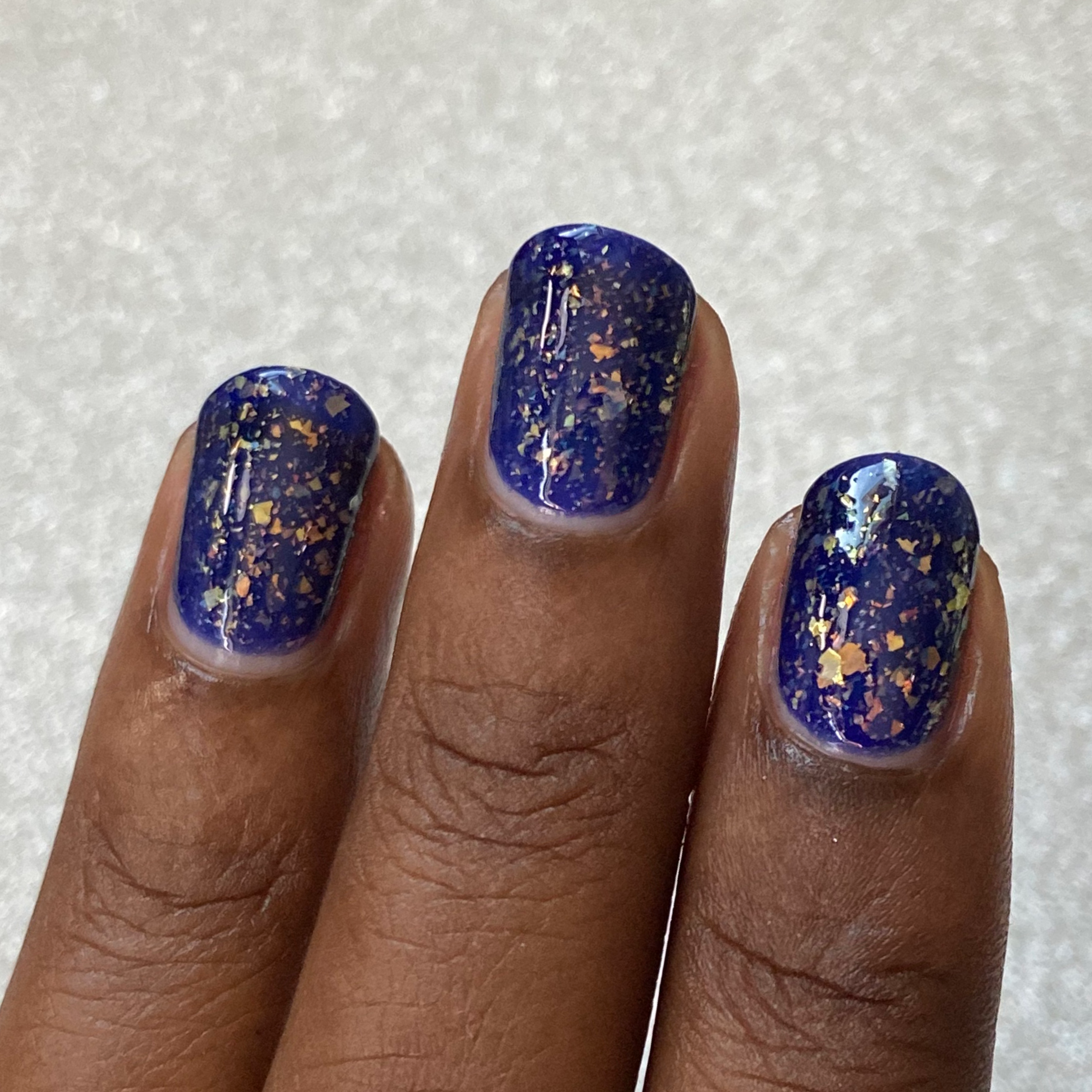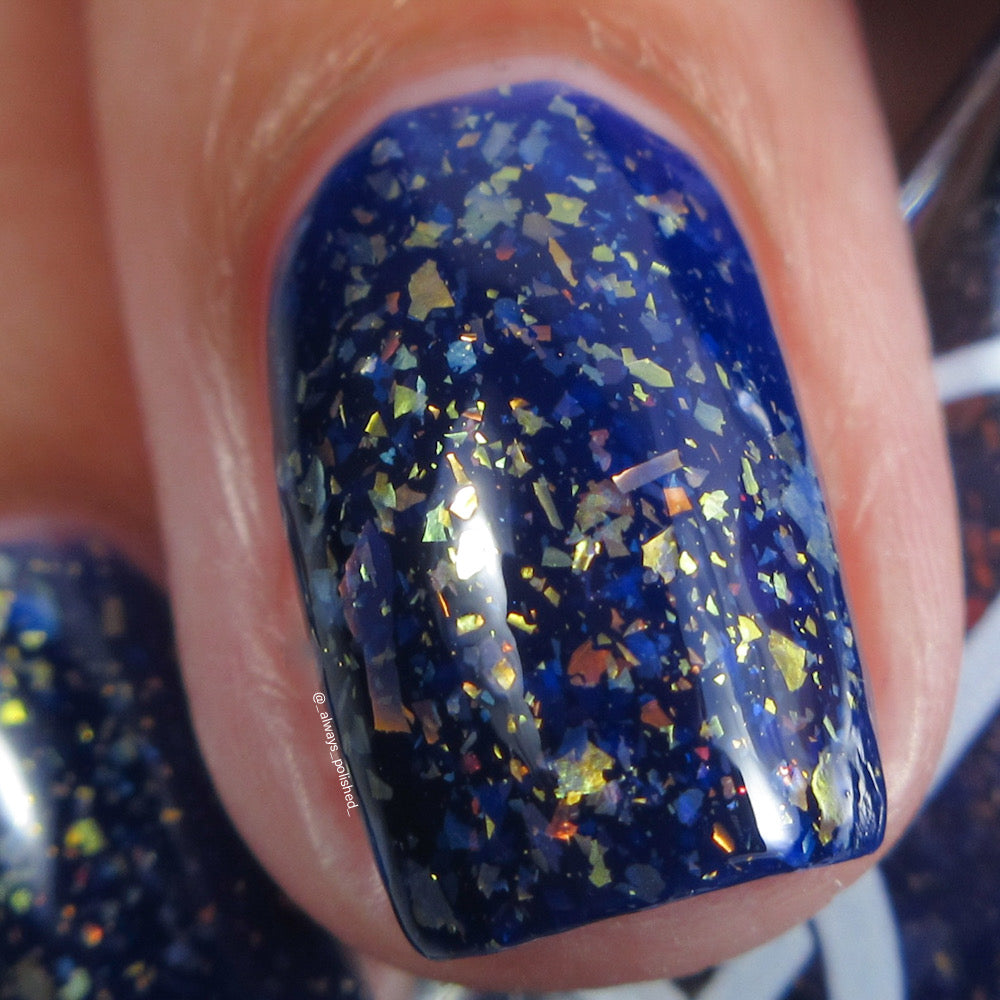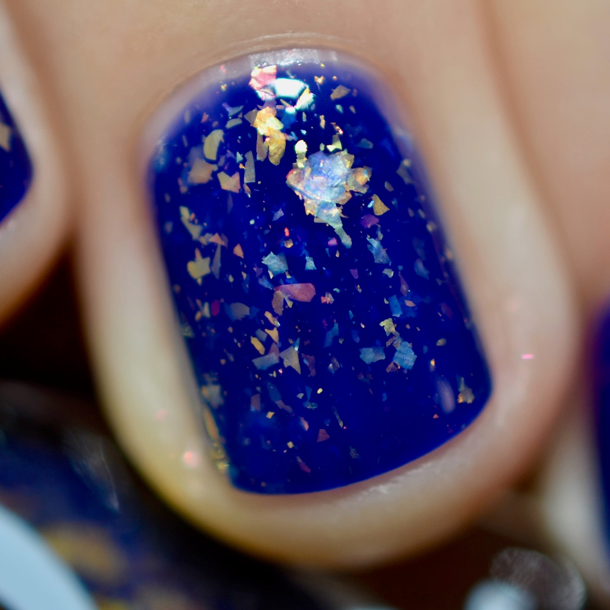 Polar punch - like a deep freeze with deep blue polish is like the sunshine hitting those ice cubes with golden glass flakes