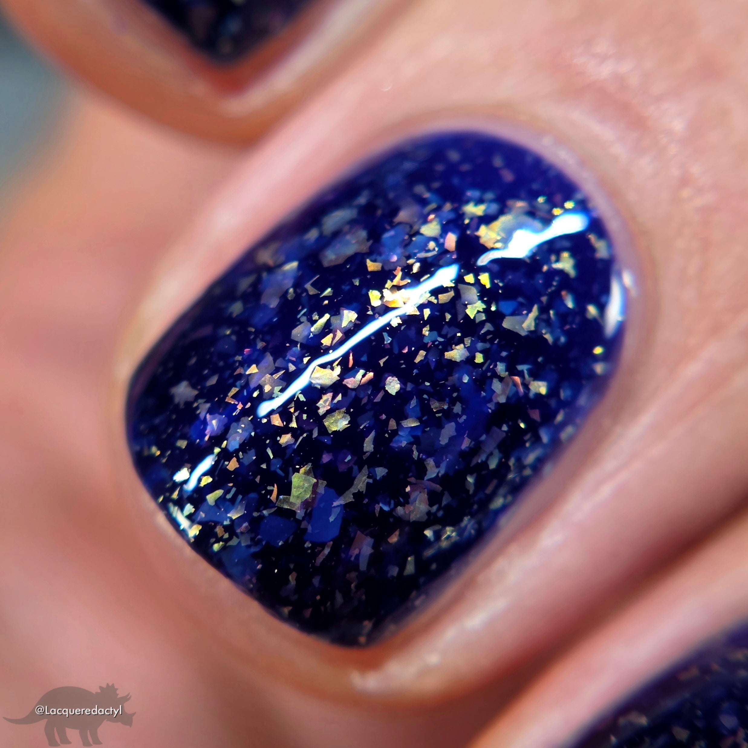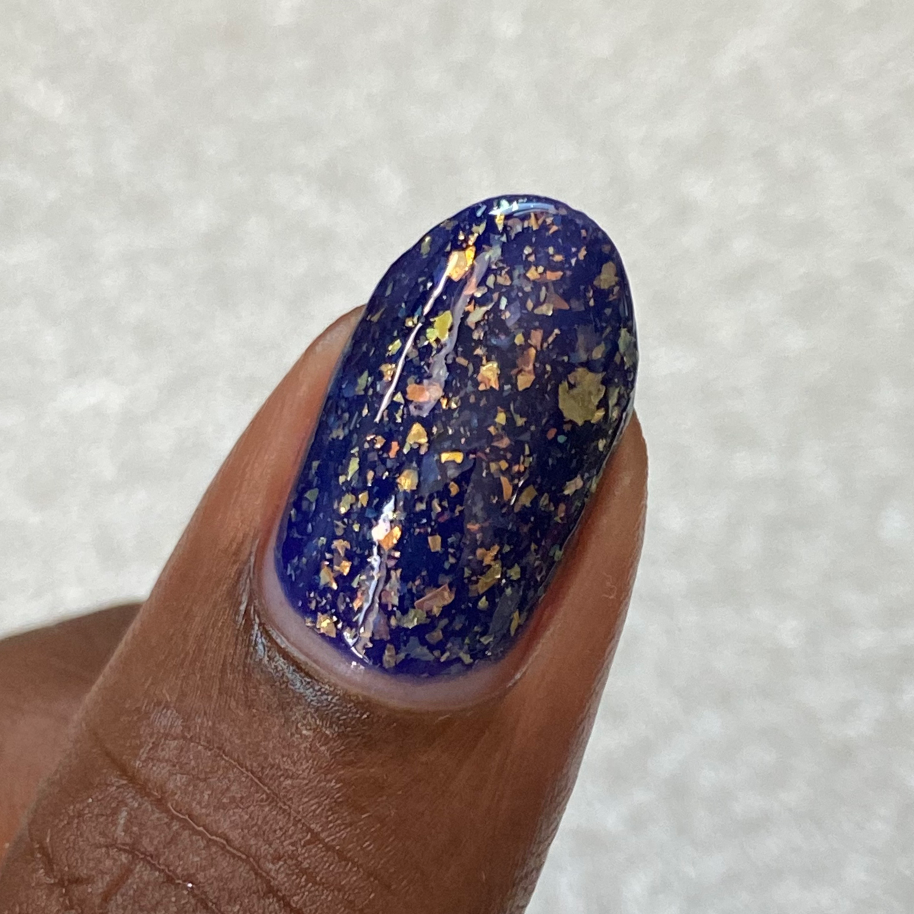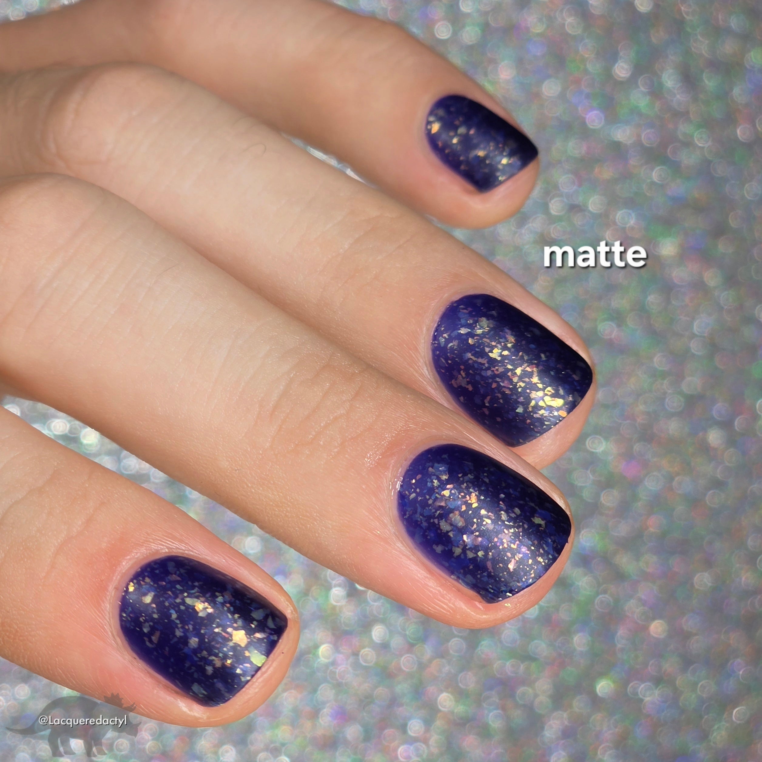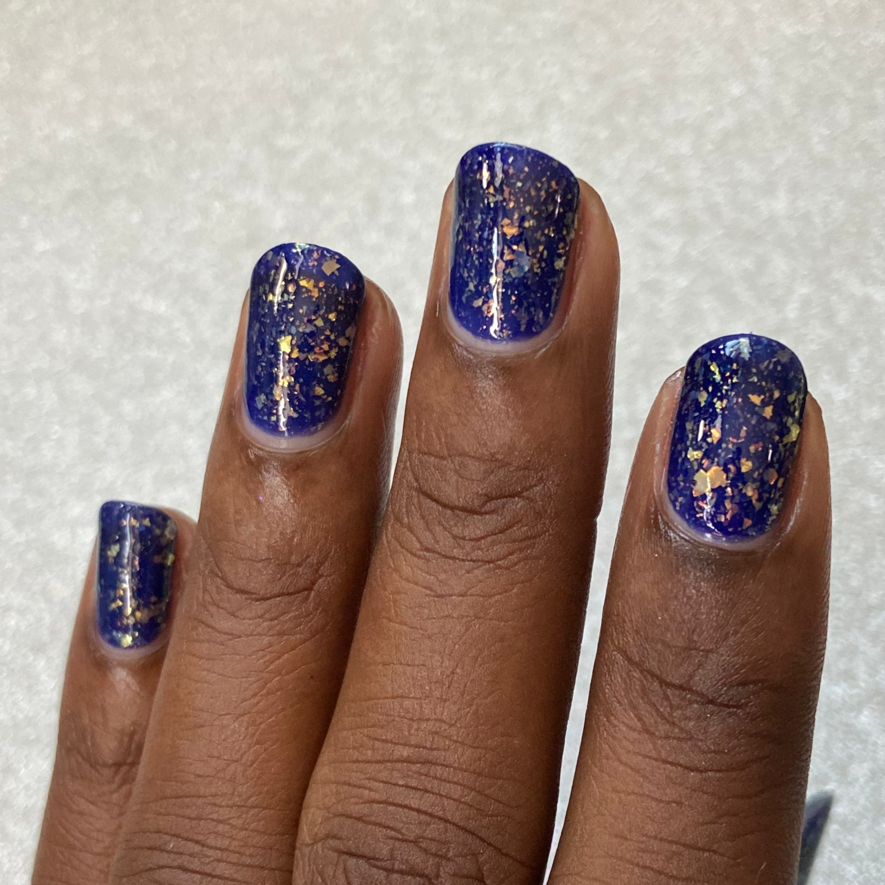 Polar punch - like a deep freeze with deep blue polish is like the sunshine hitting those ice cubes with golden glass flakes