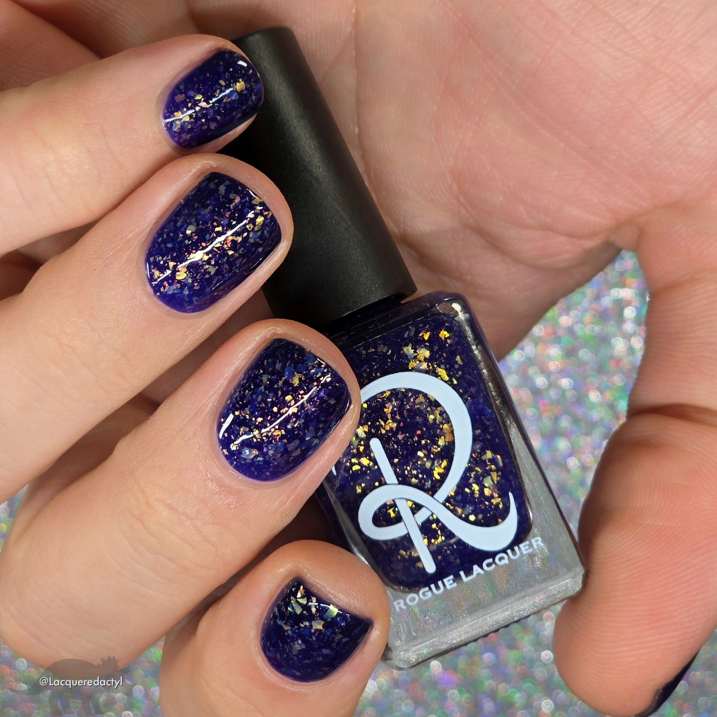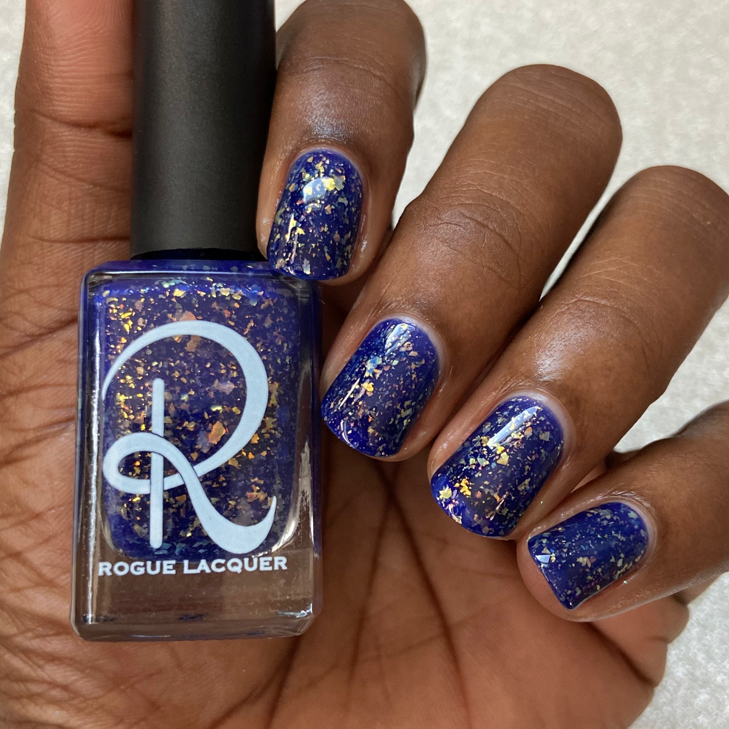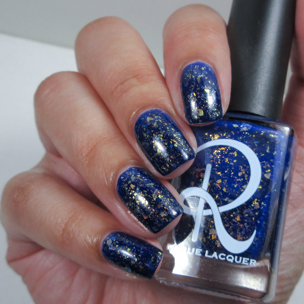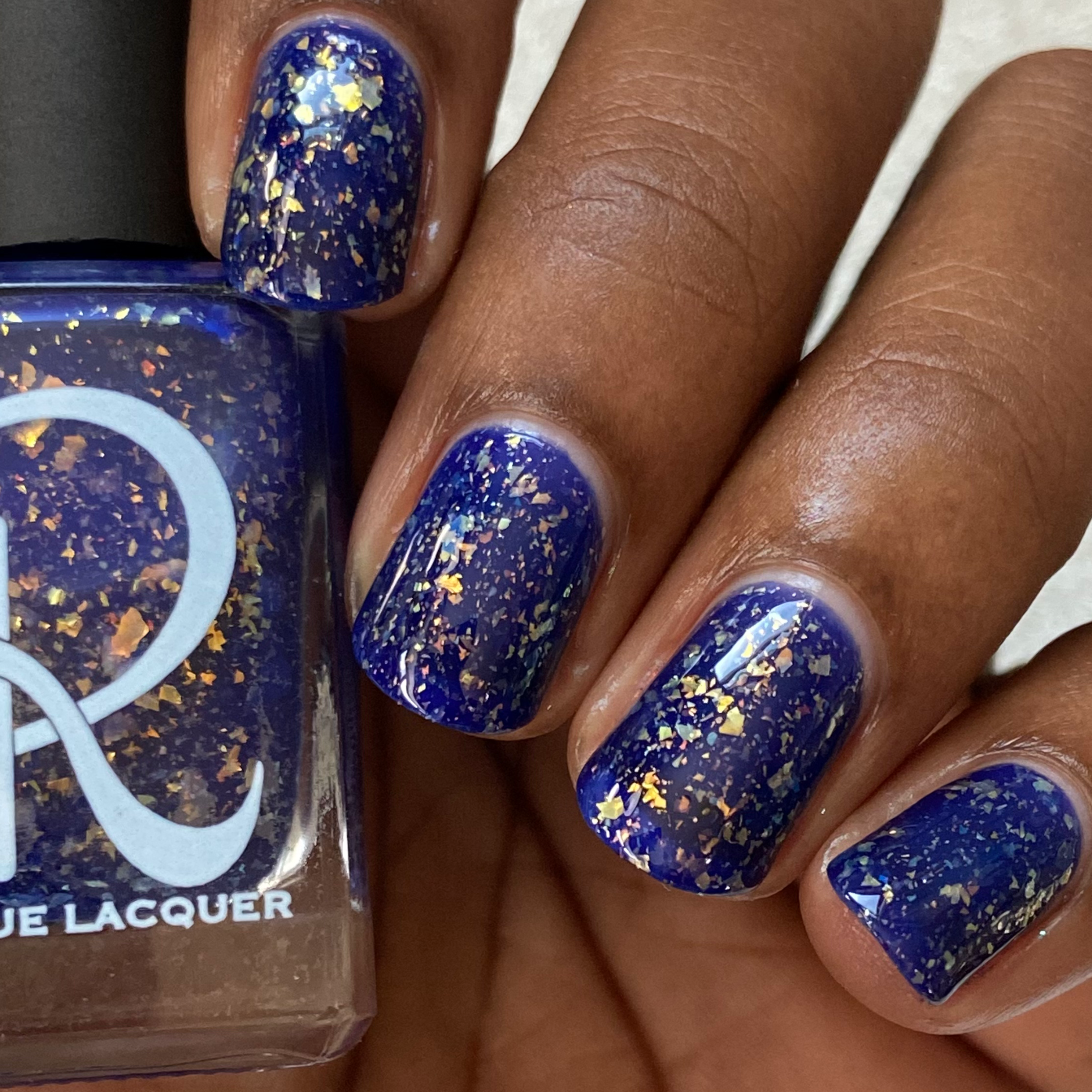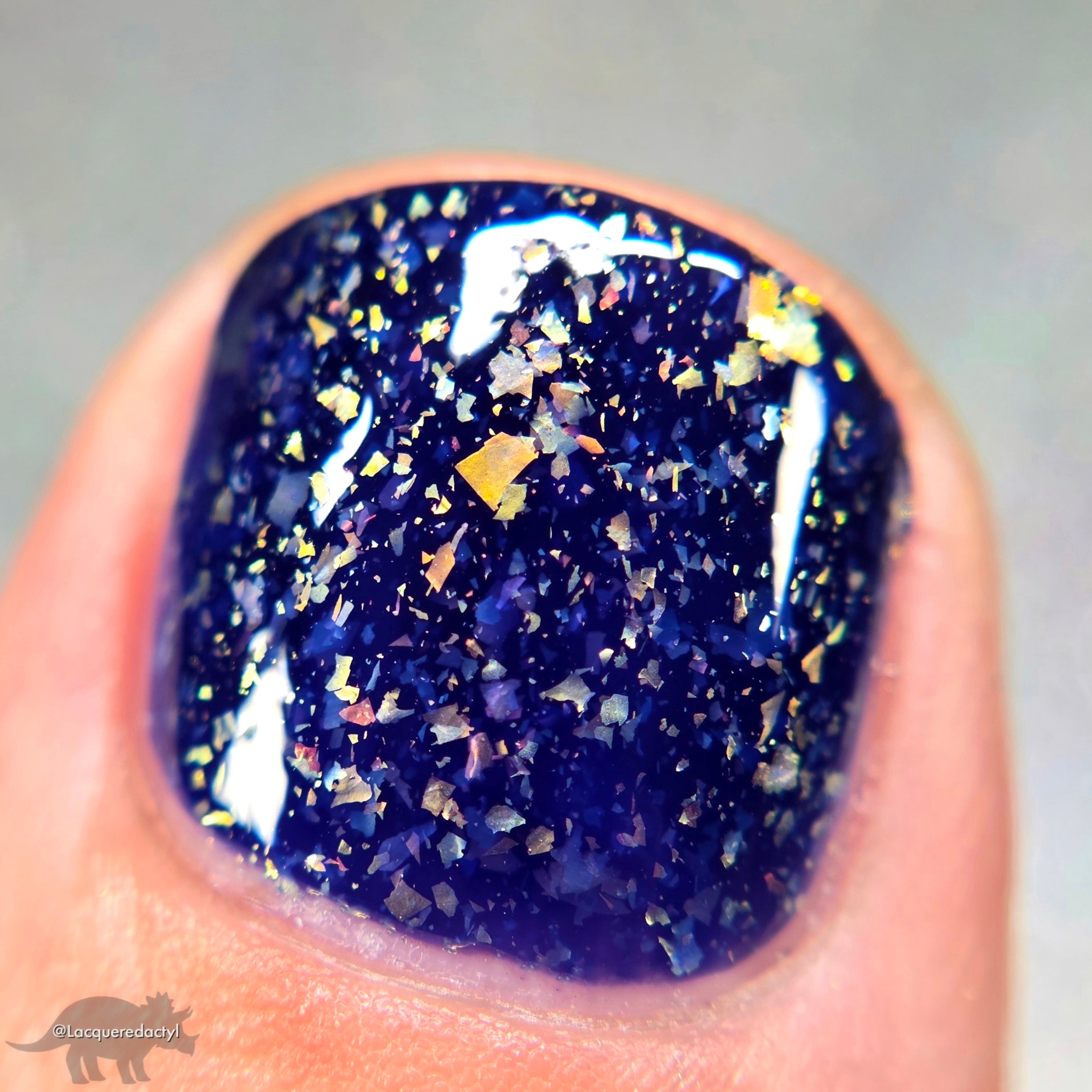 Polar punch - like a deep freeze with deep blue polish is like the sunshine hitting those ice cubes with golden glass flakes
