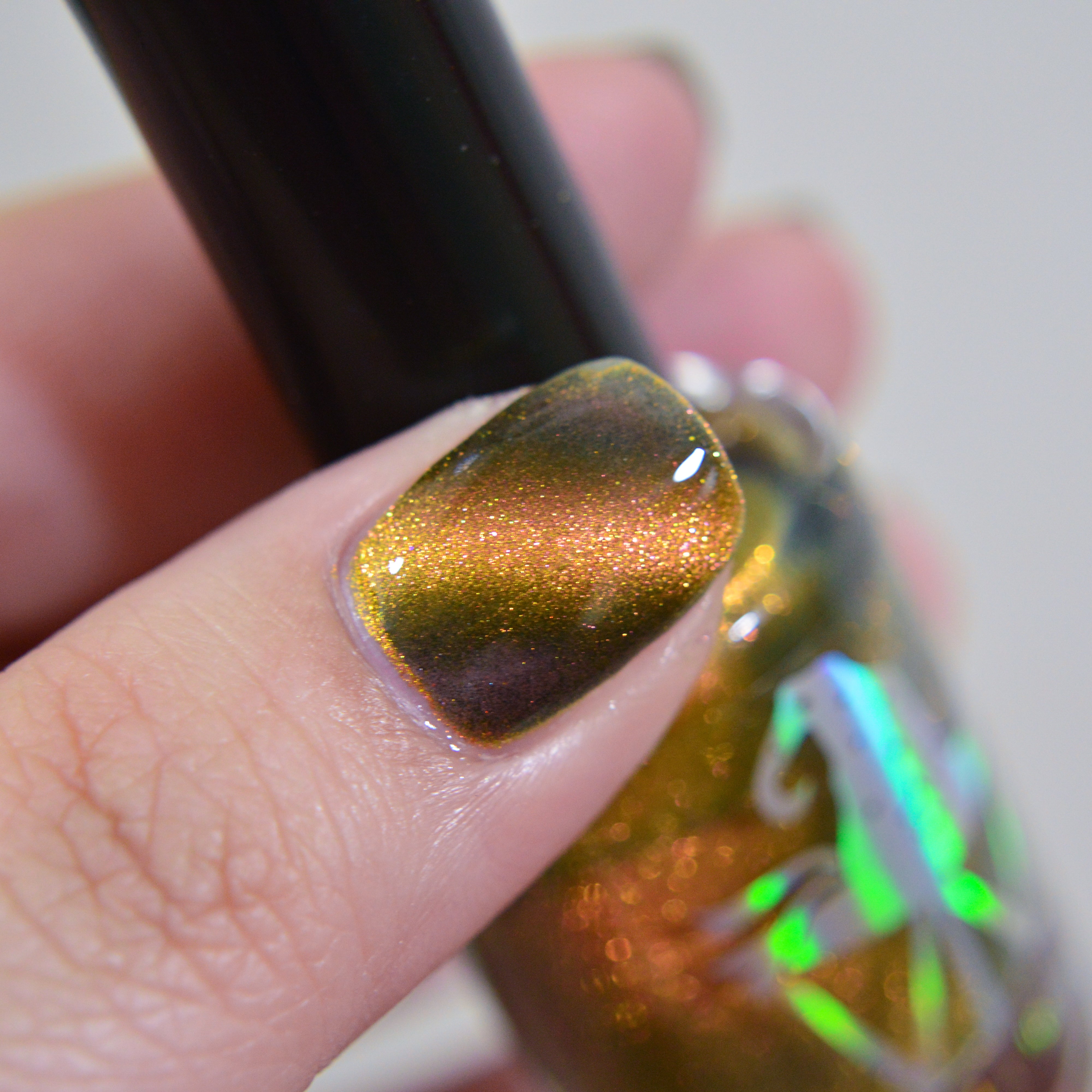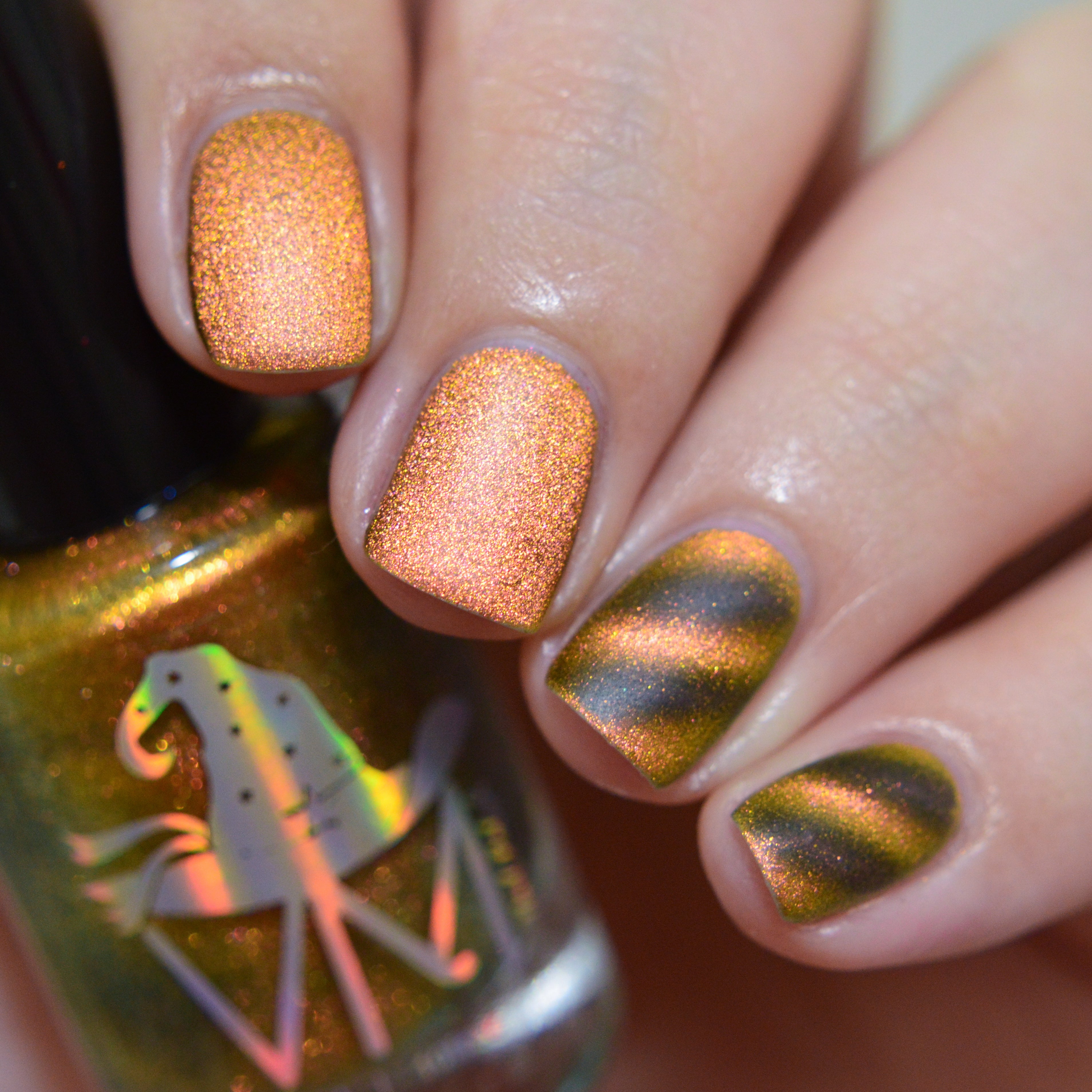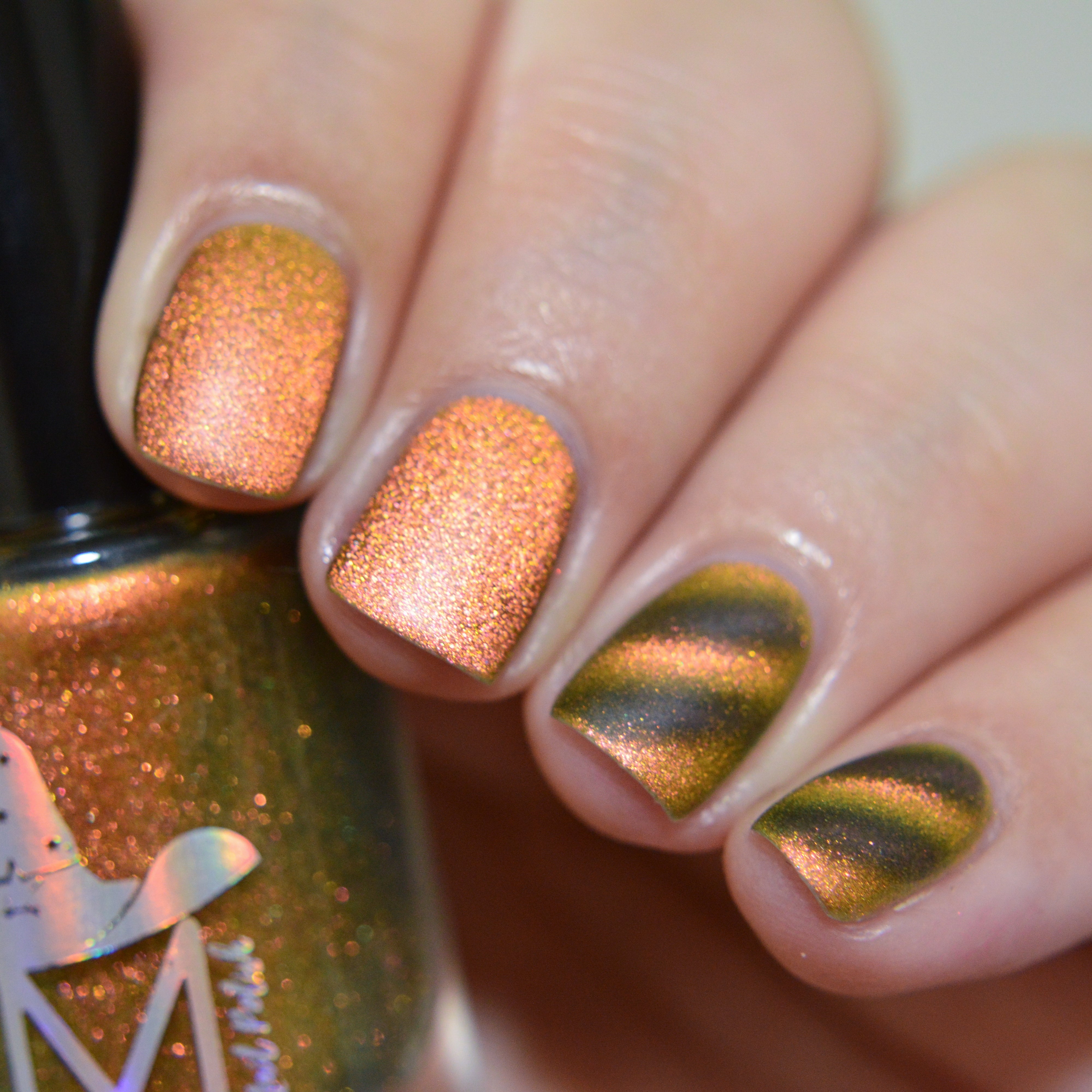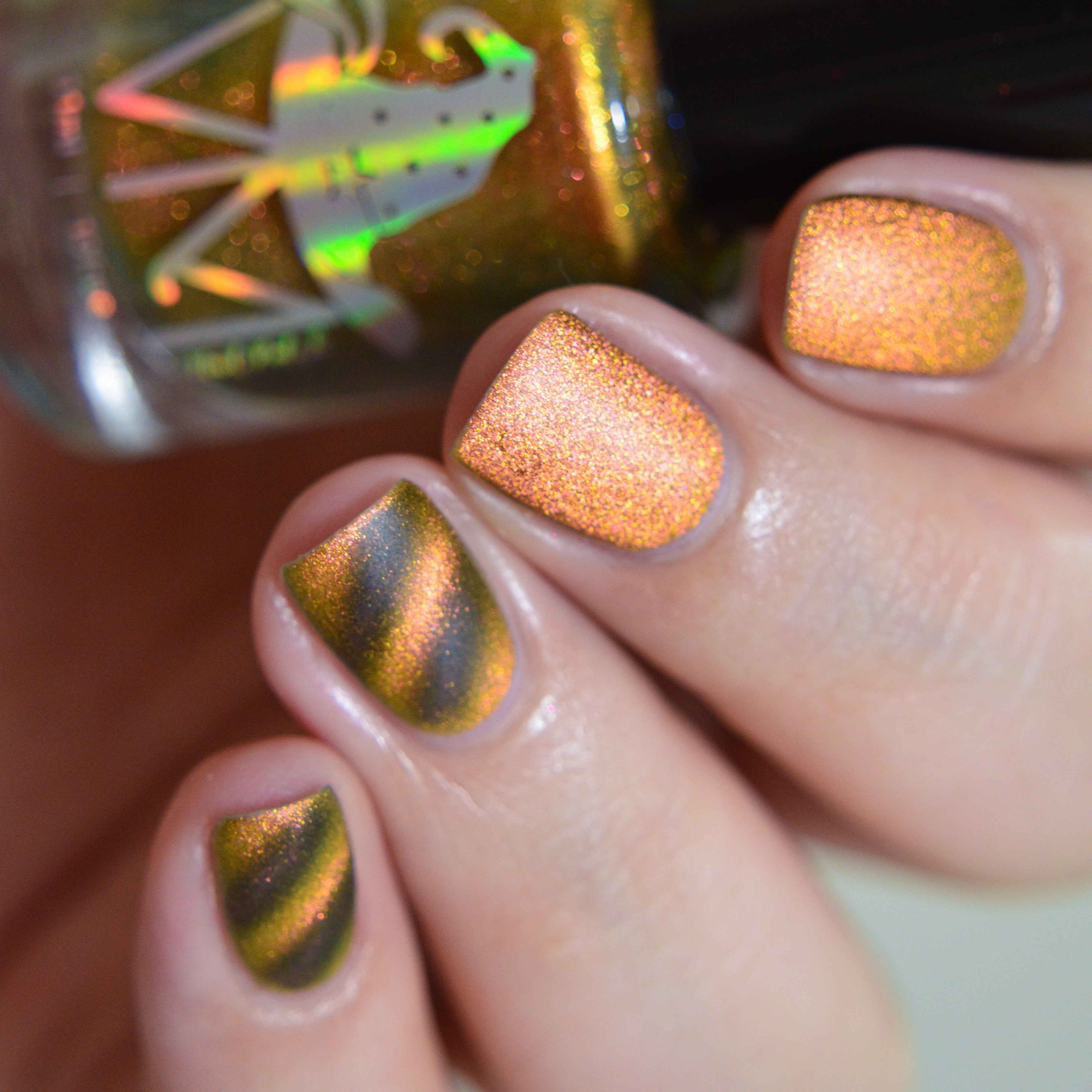 Pumpkin King's Blaze : Magnetic orange/copper/green, satin matte finish. Wear it glossy with your favourite top coat