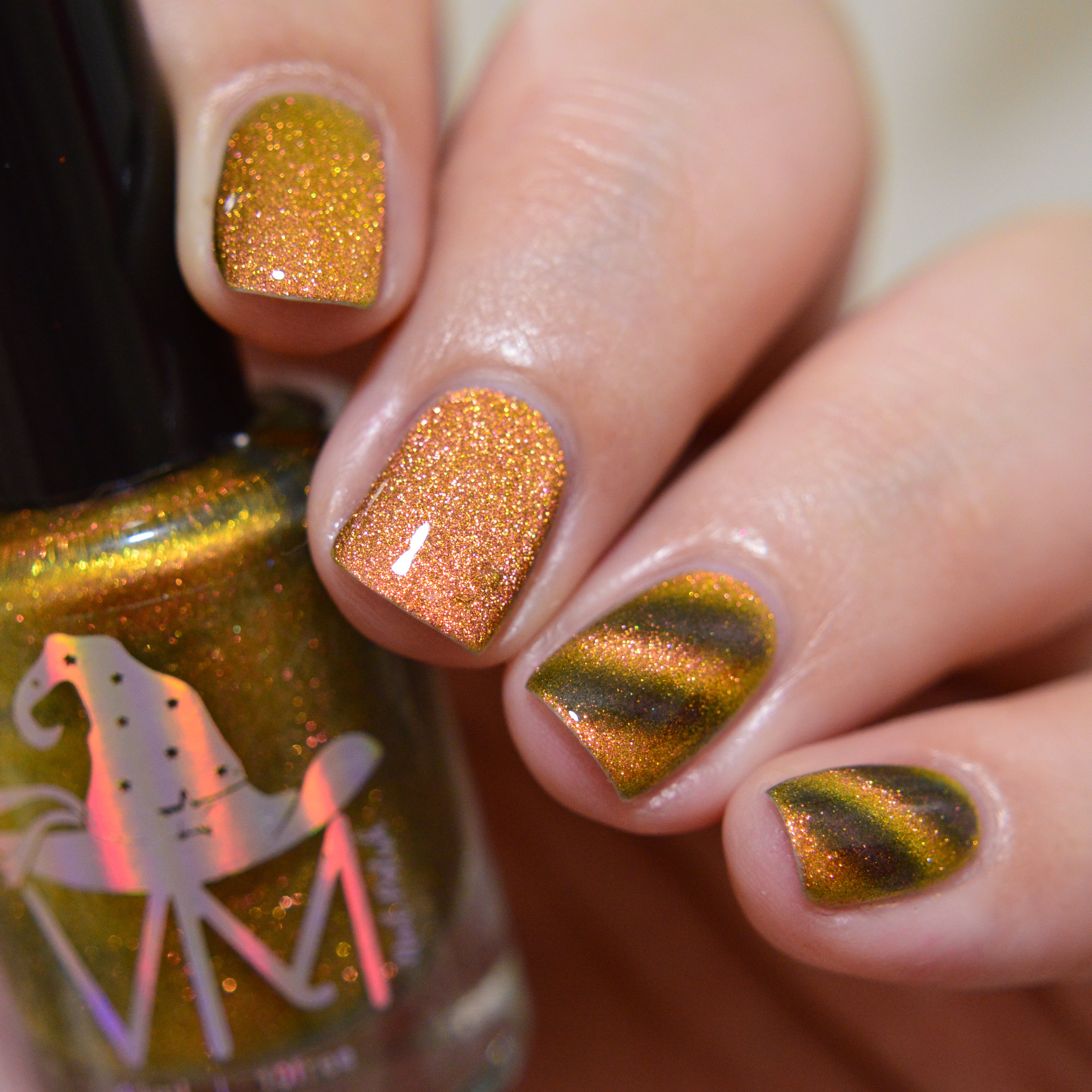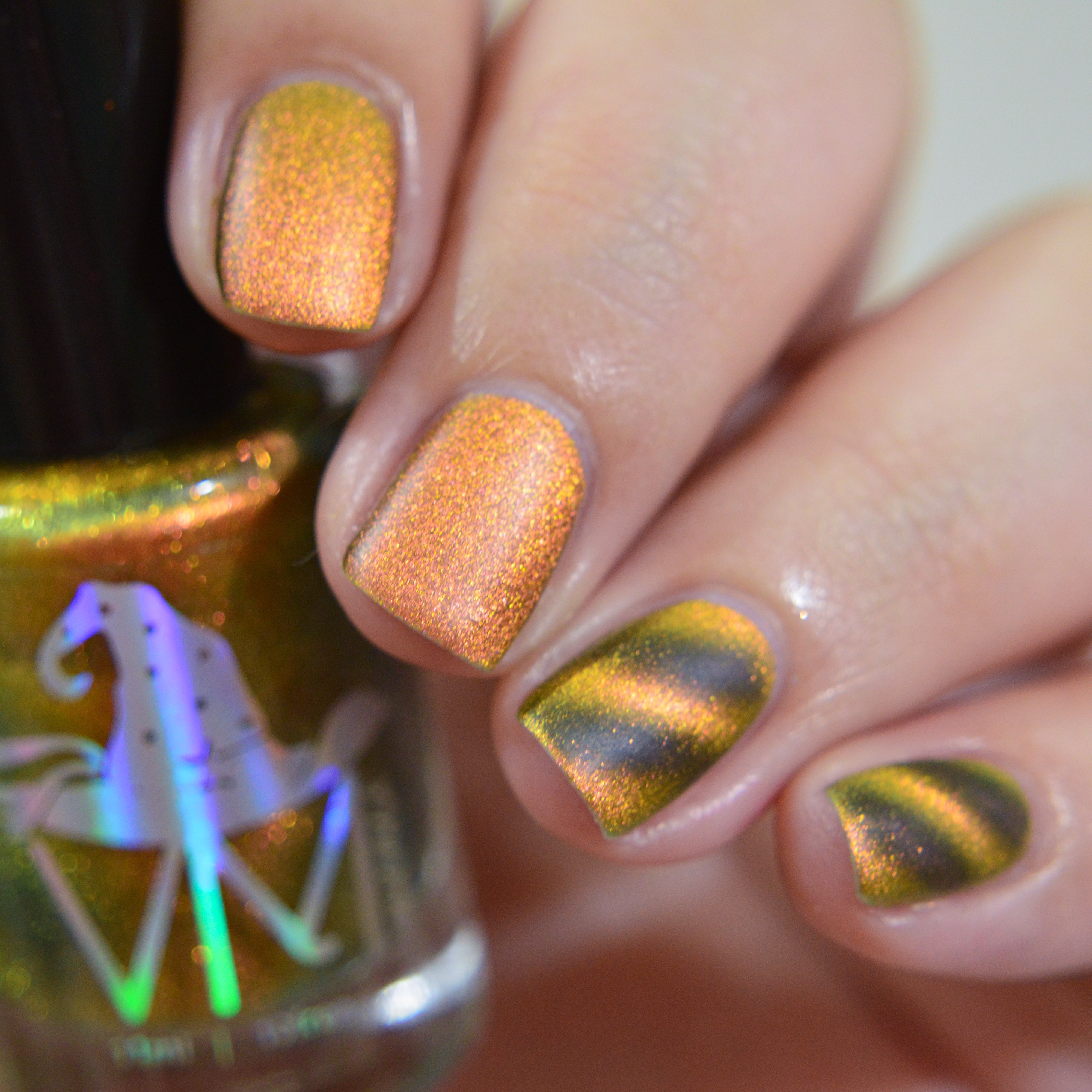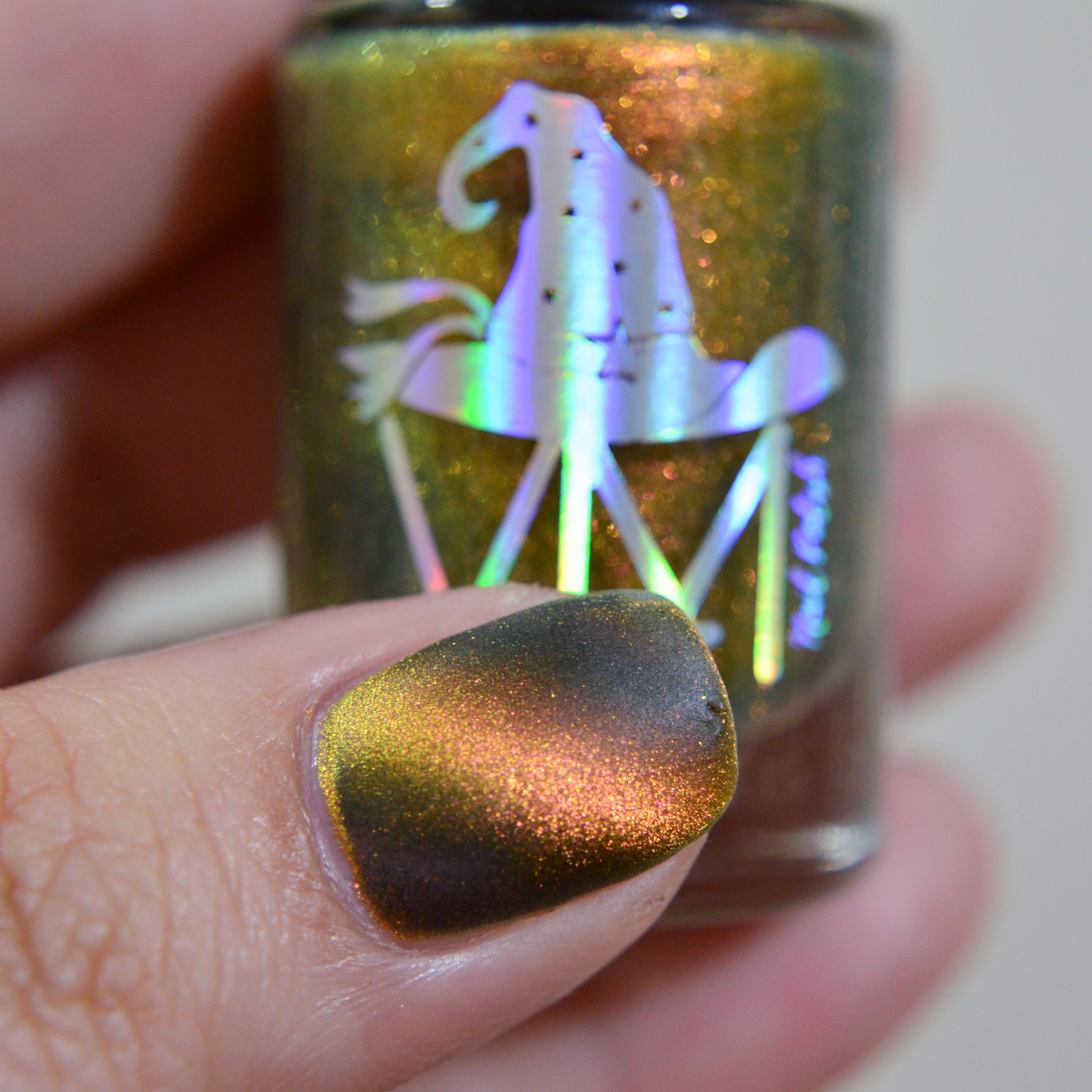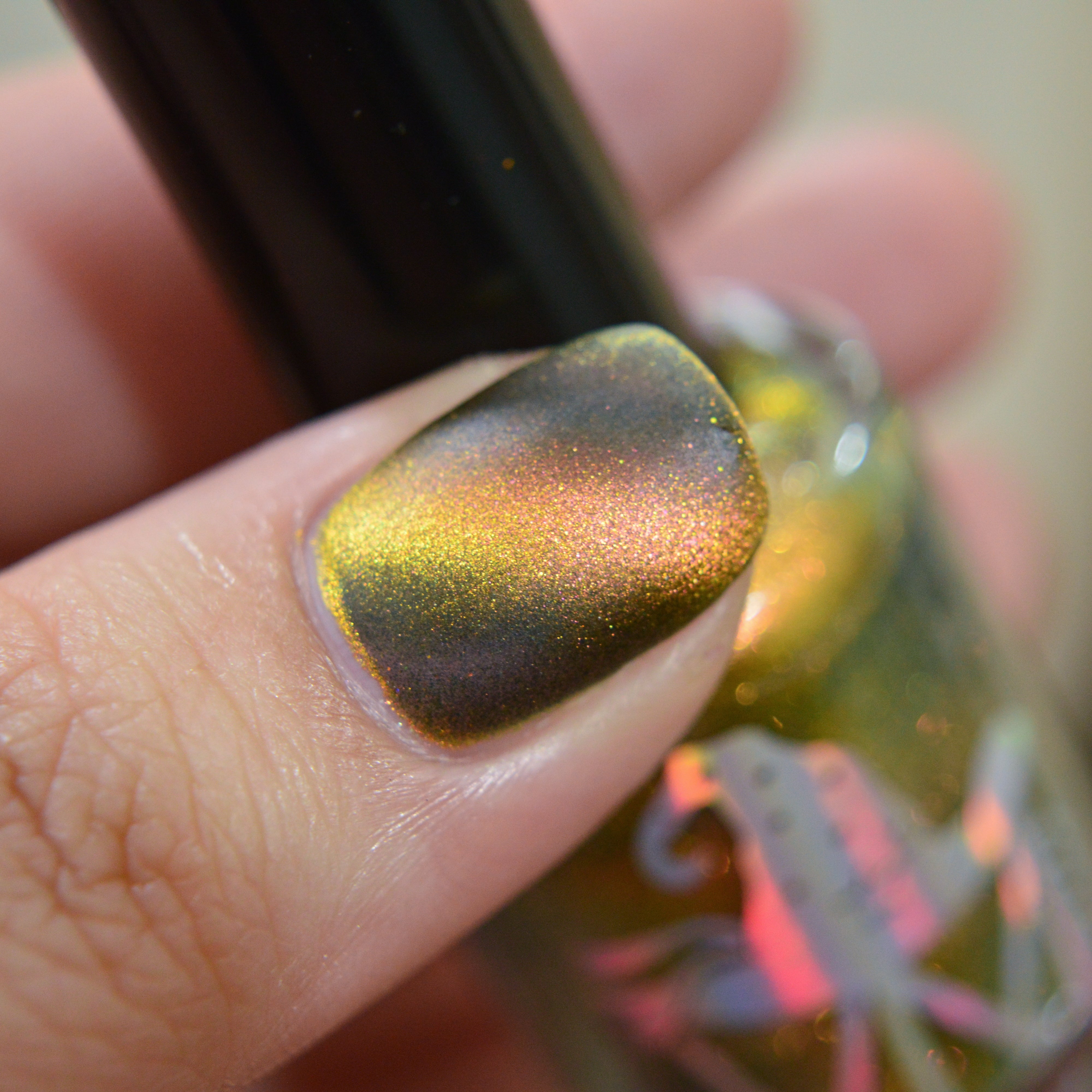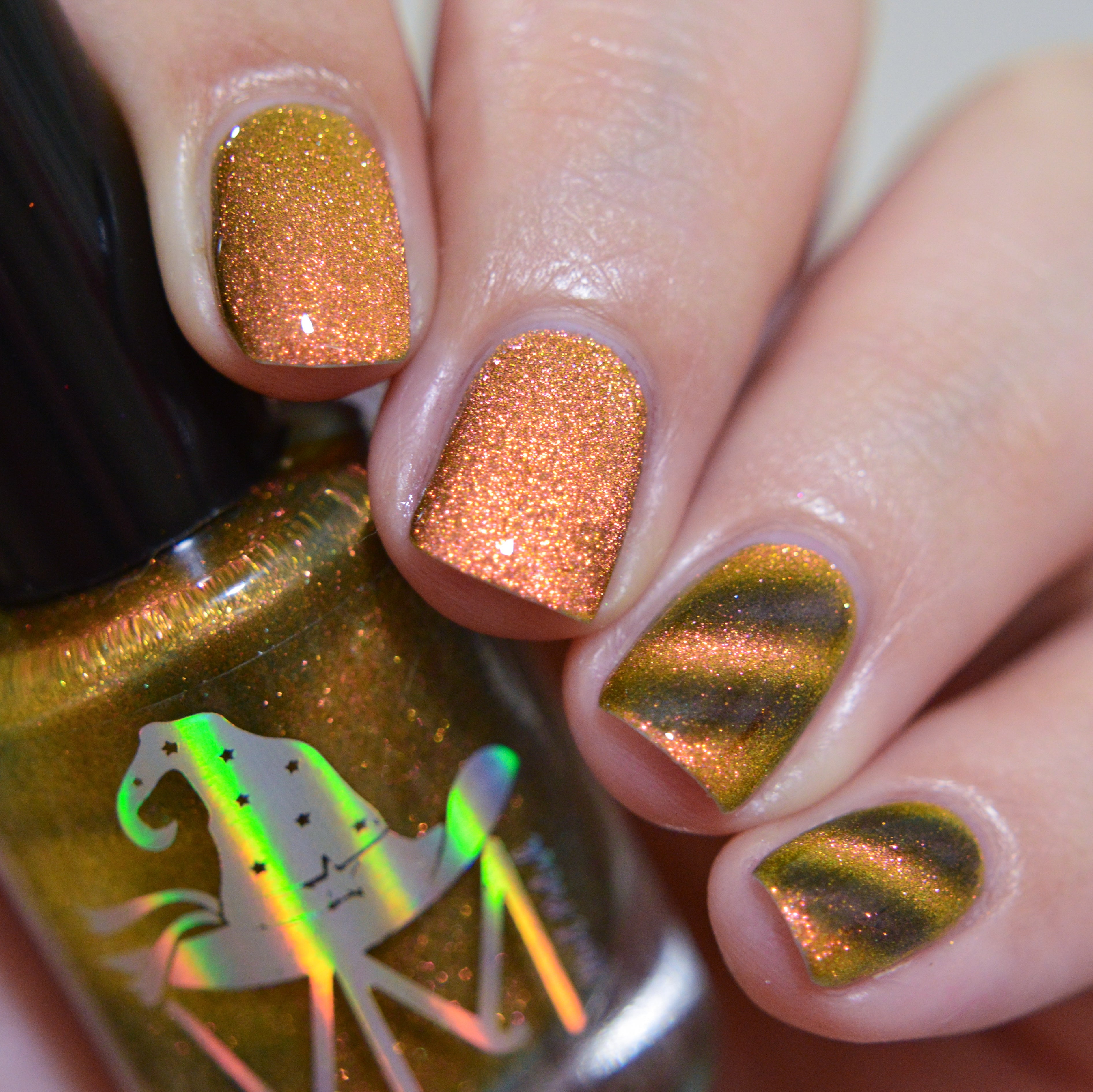 Pumpkin King's Blaze : Magnetic orange/copper/green, satin matte finish. Wear it glossy with your favourite top coat