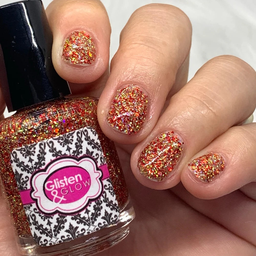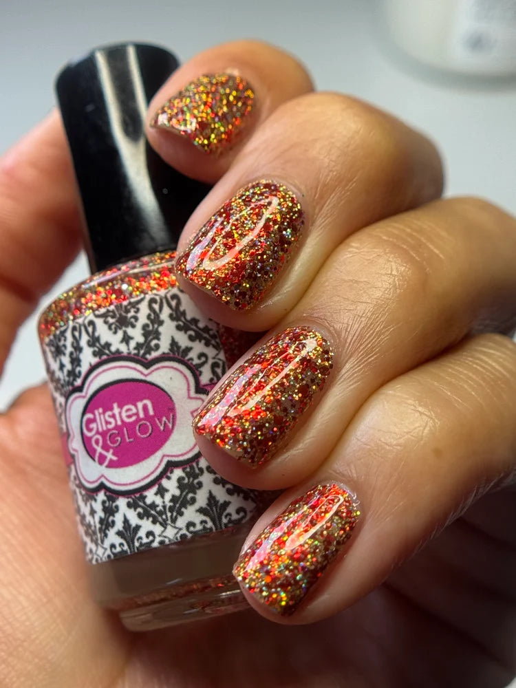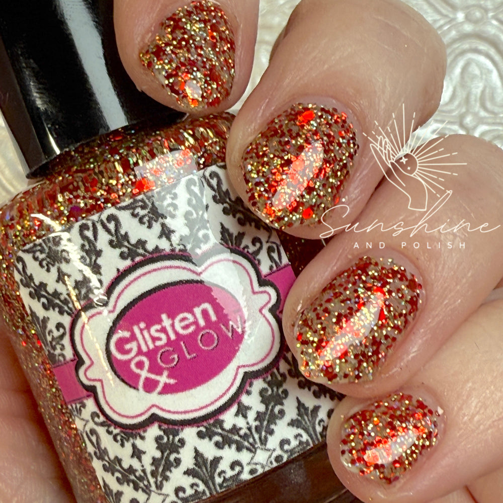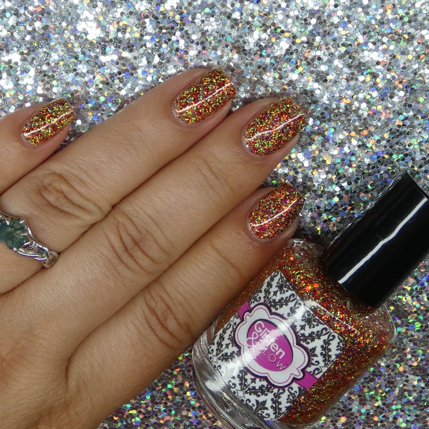 Headstone Sparkle – dark grey jellie polish loaded with various shapes and sizes of glitters in shades of orange, purple and copper Add a layer of Glisten & Glow Glitter...