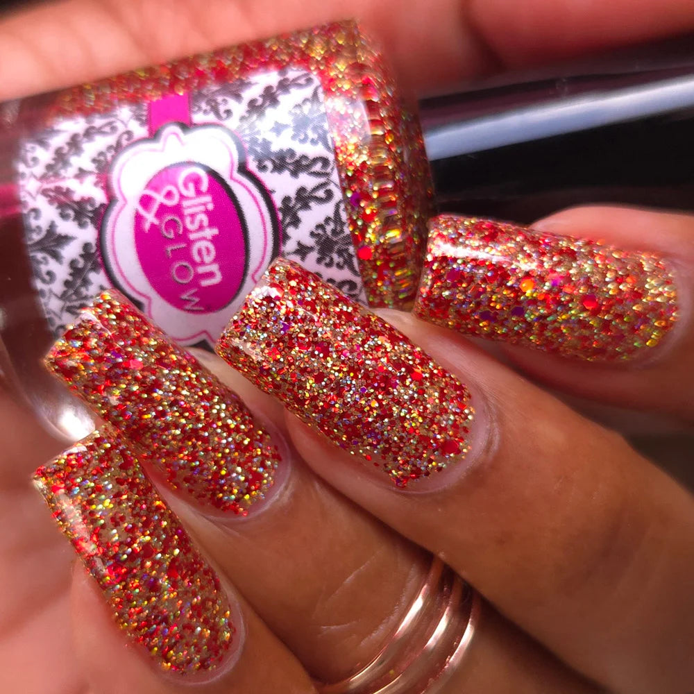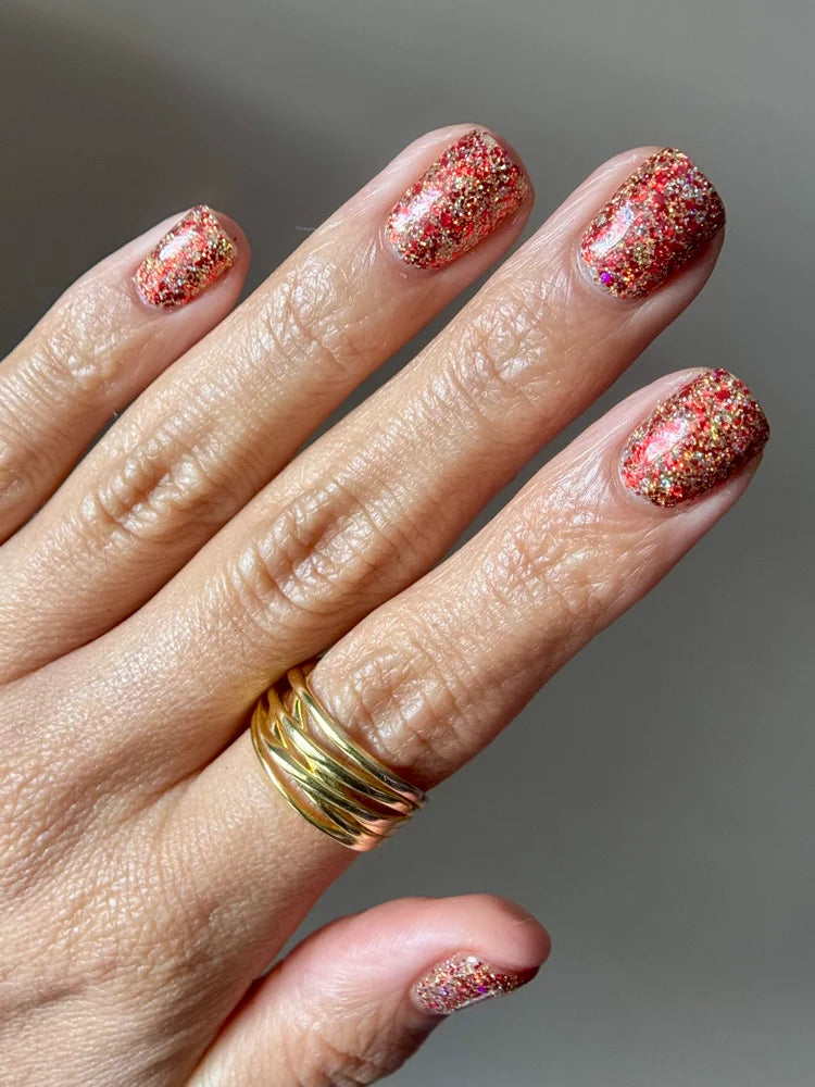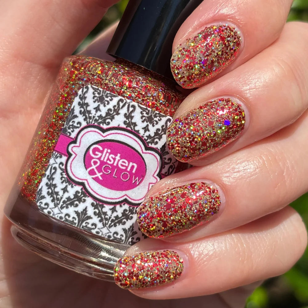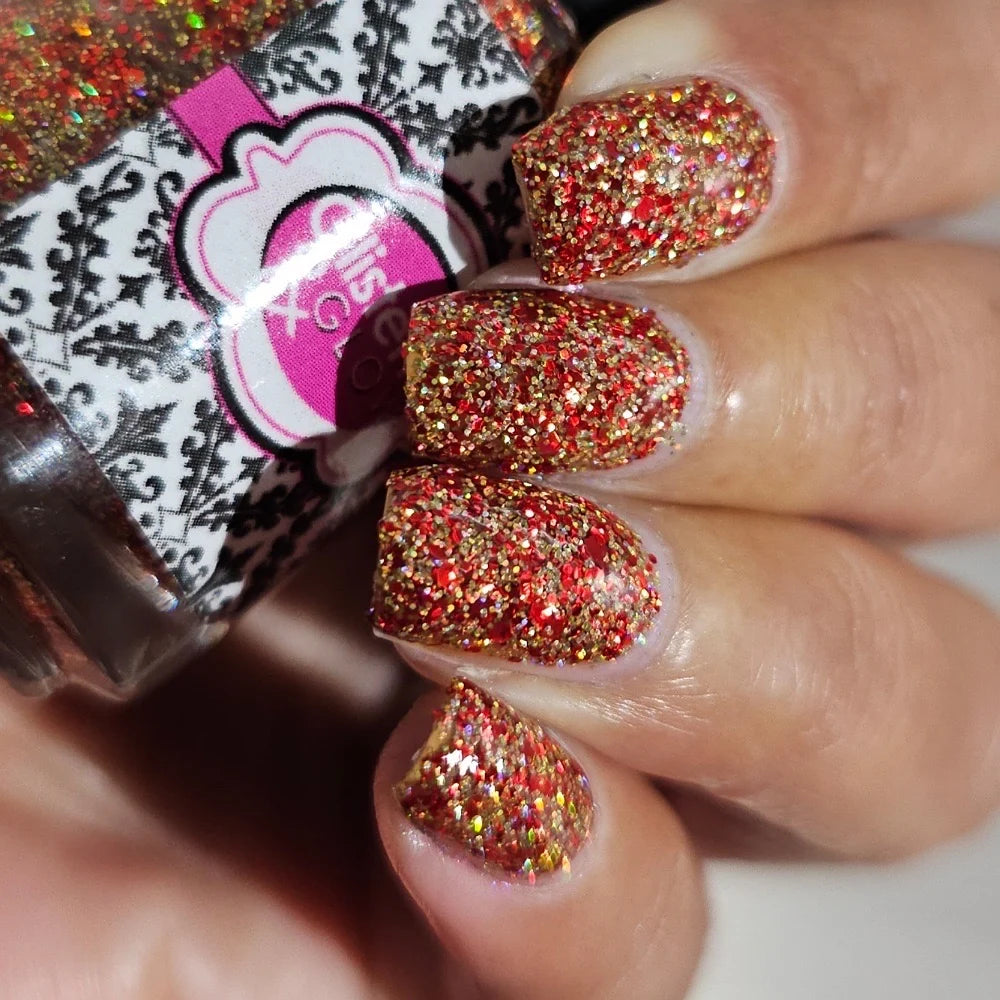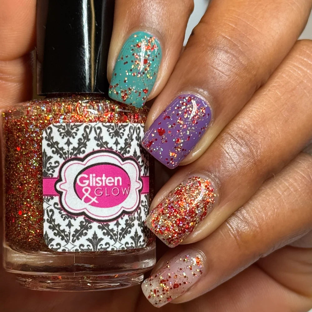 Headstone Sparkle – dark grey jellie polish loaded with various shapes and sizes of glitters in shades of orange, purple and copper Add a layer of Glisten & Glow Glitter...