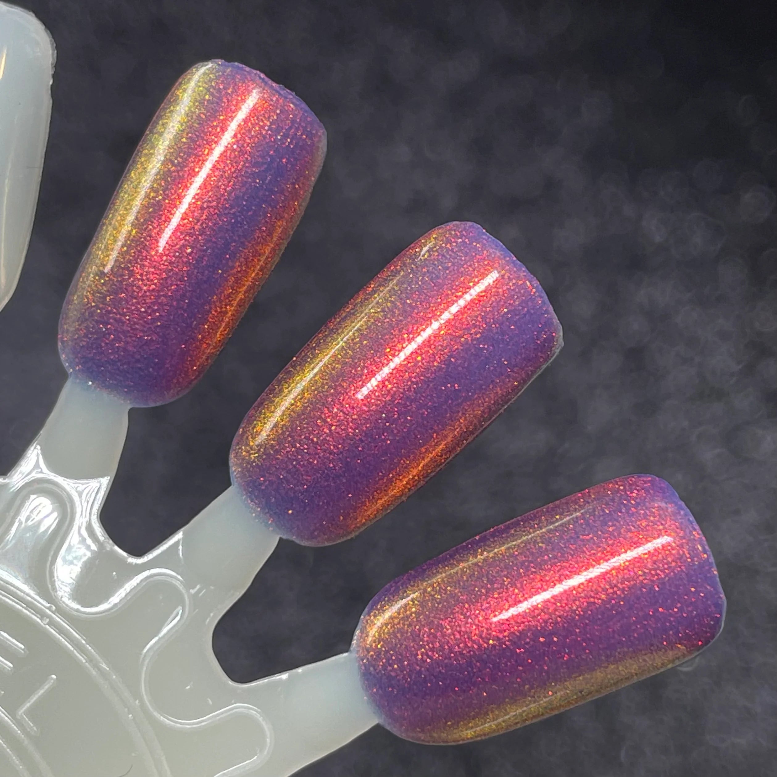 Jelly cool dark purple base with strong red, orange, gold, and green shifting shimmer.