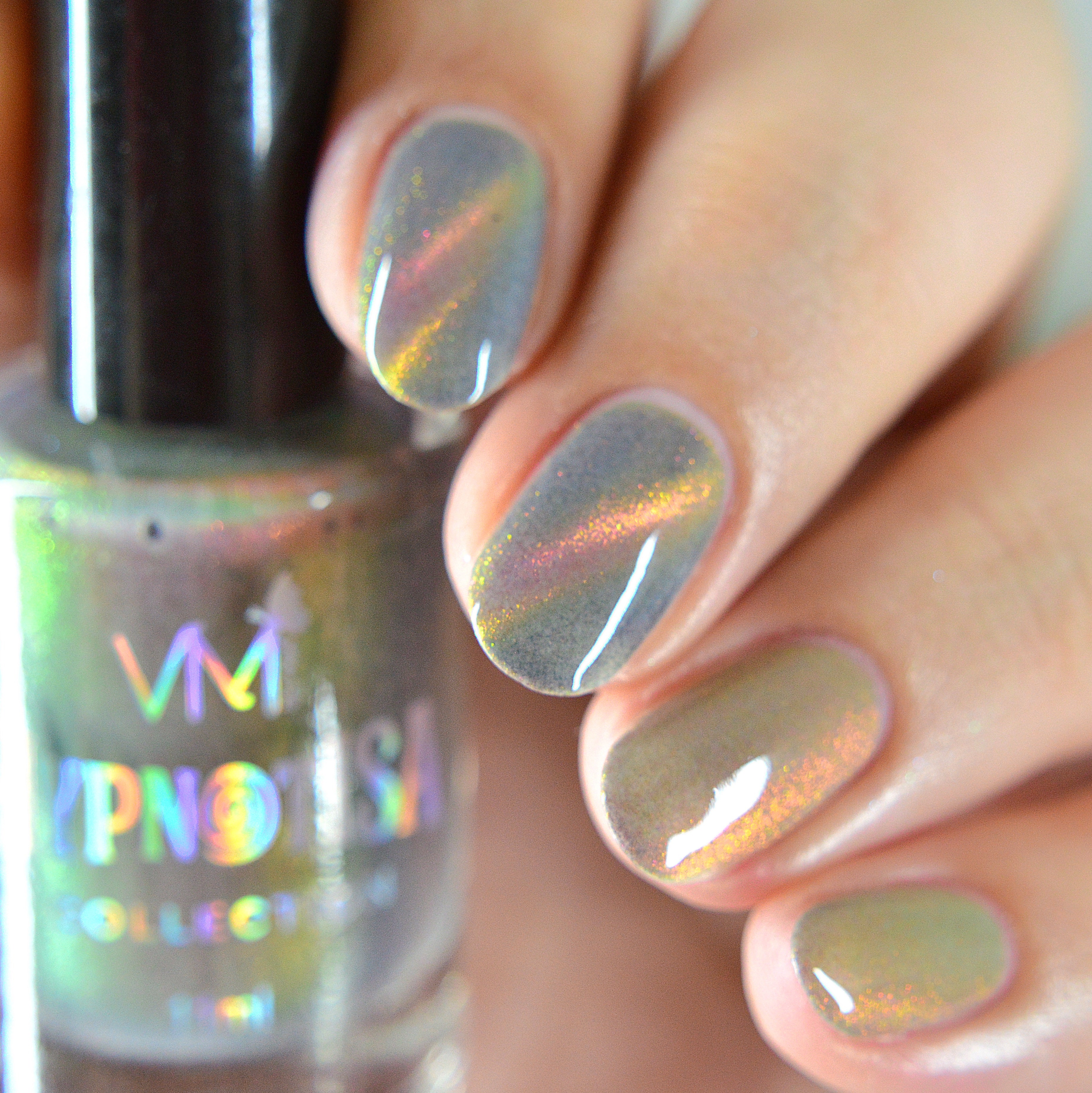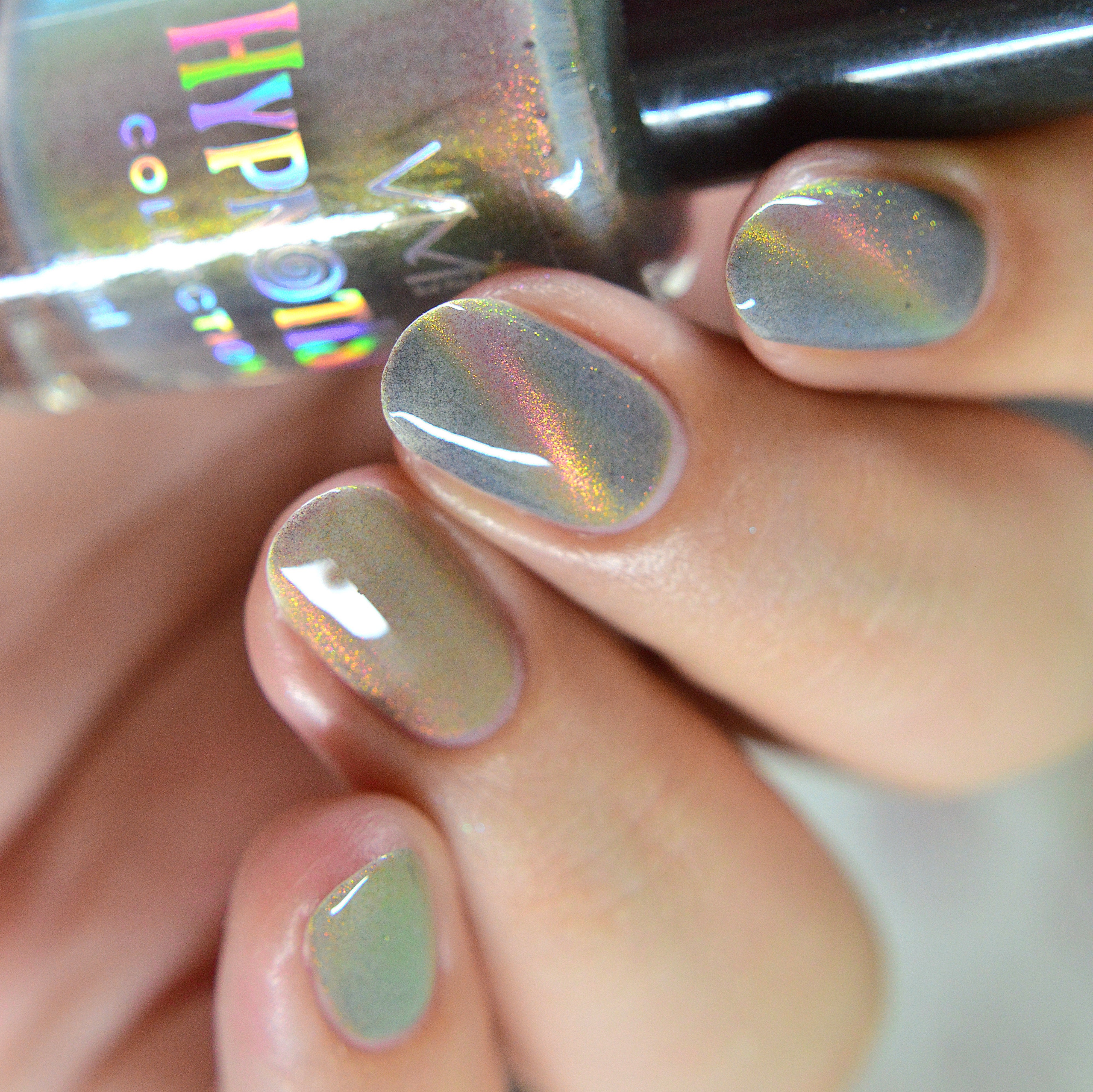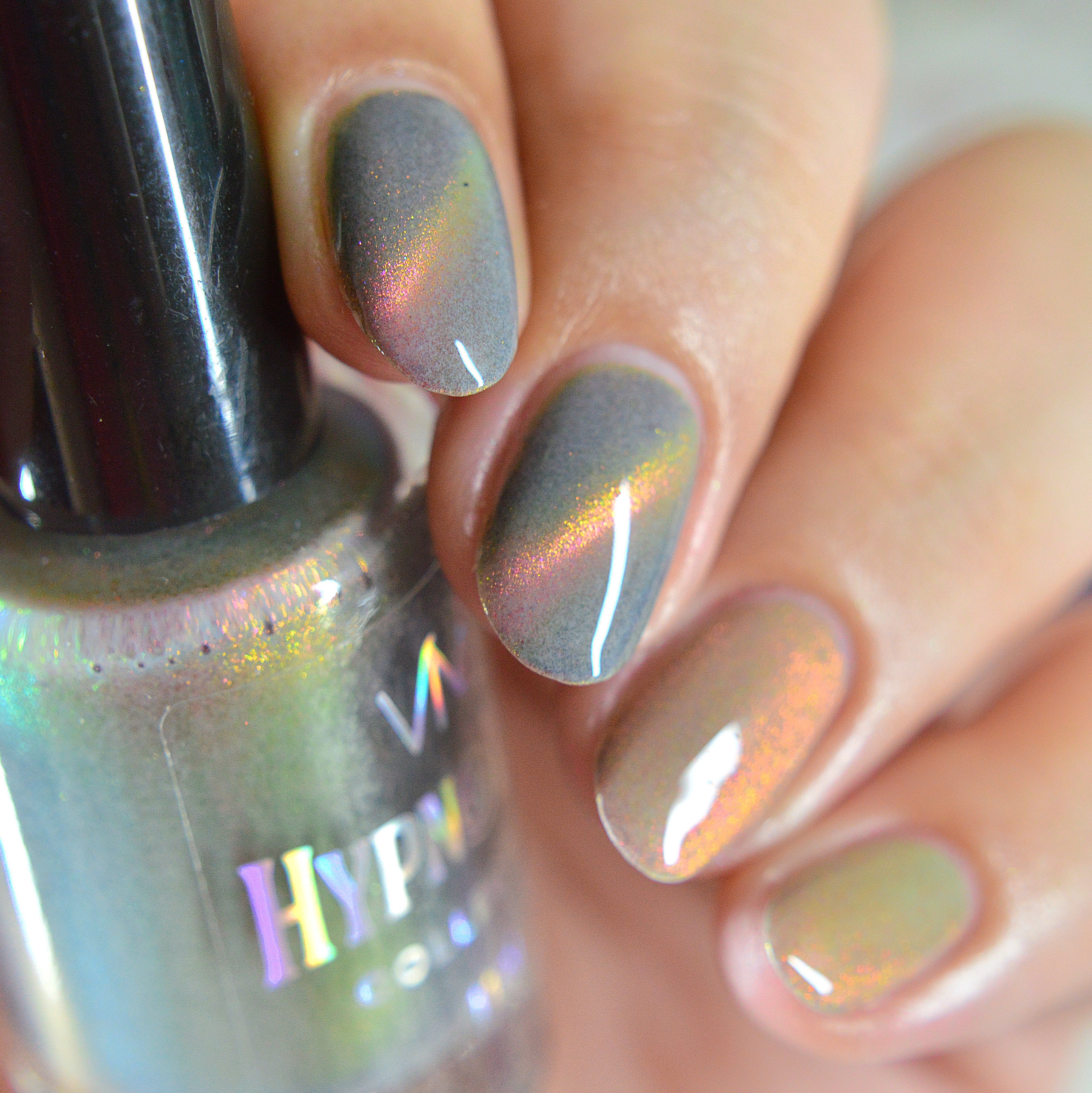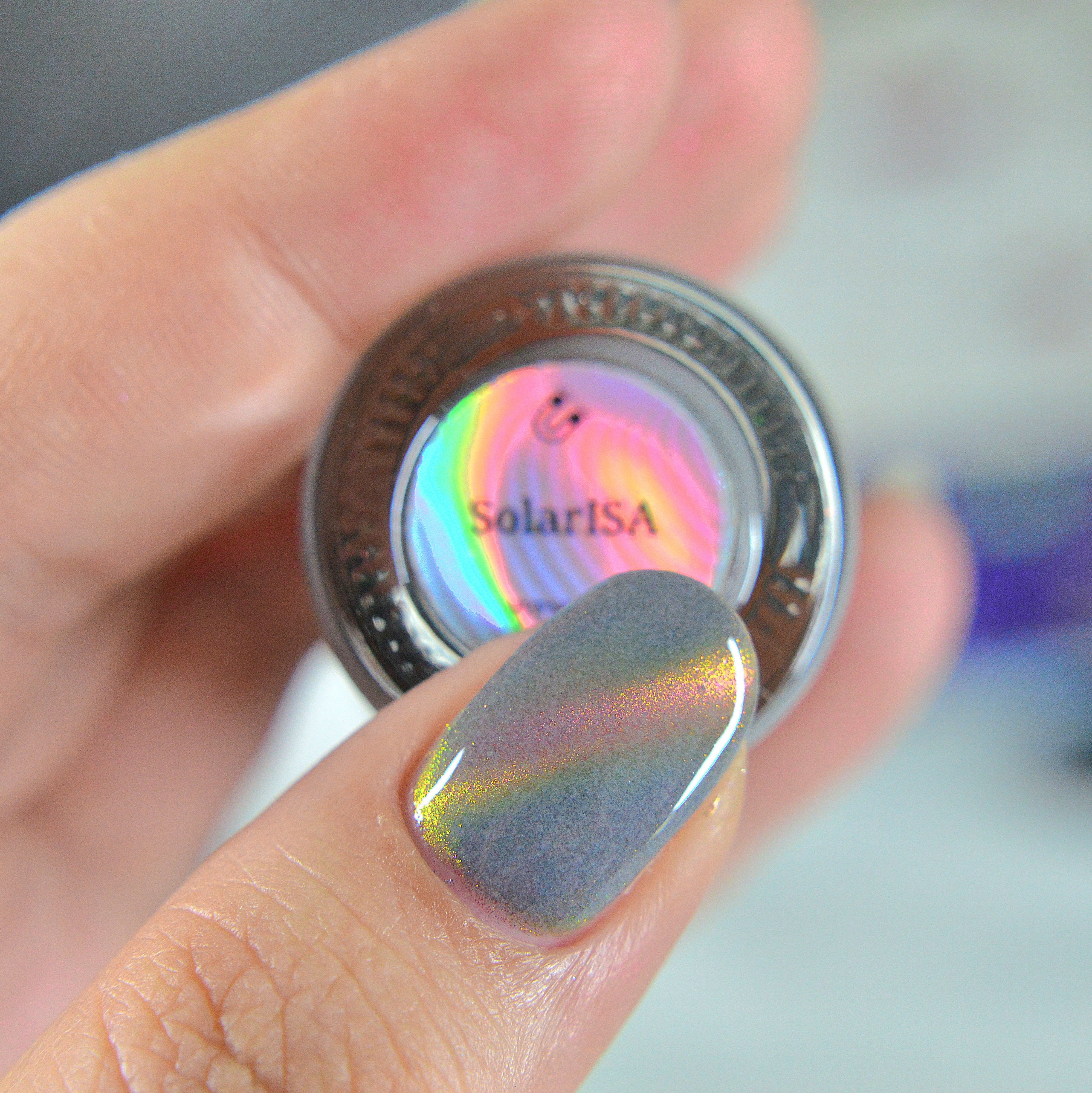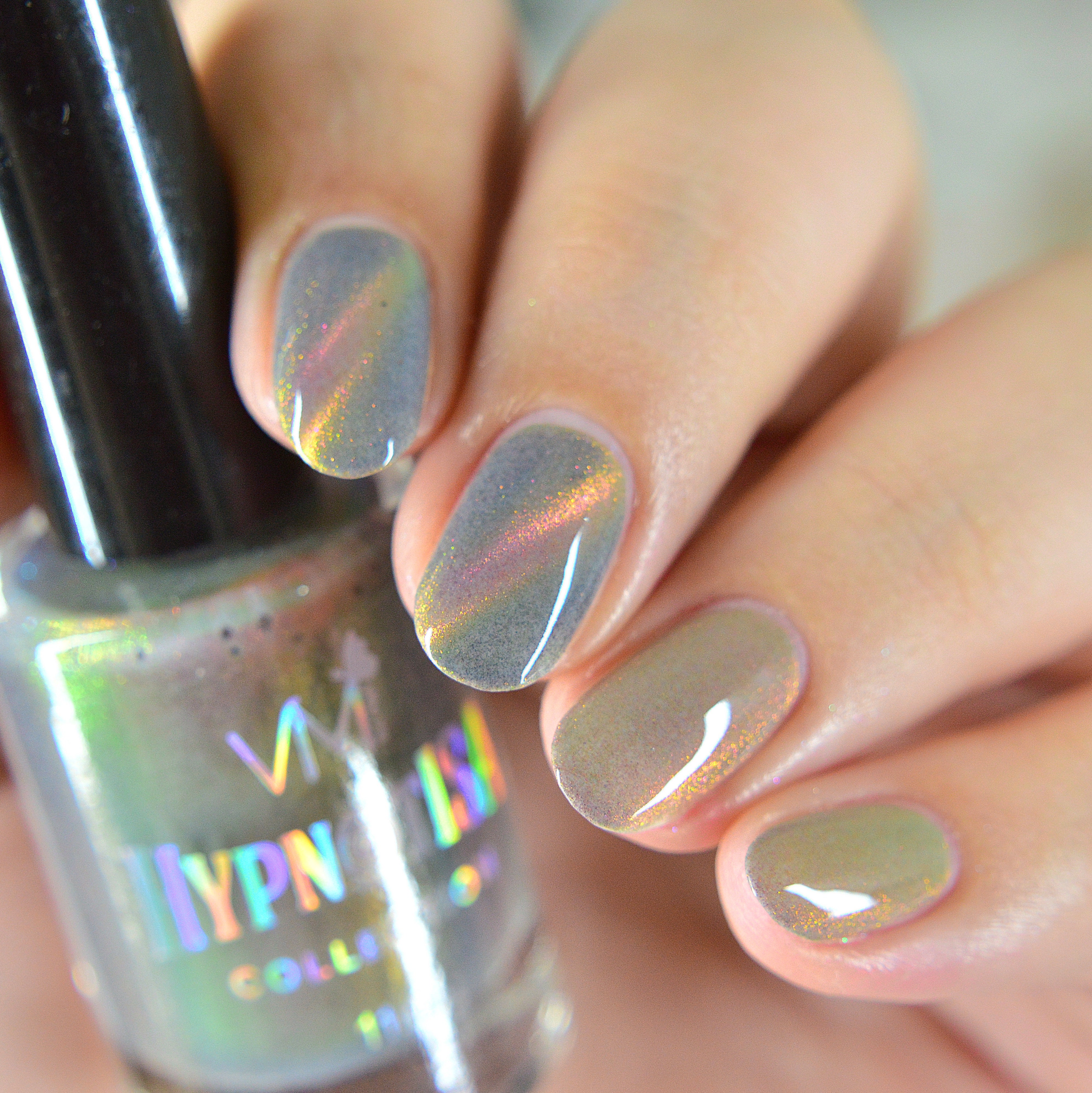 Little Star - a subtley smokey base with bright blue-purple shifting iridescent shimmer and holographic micro flakes.
