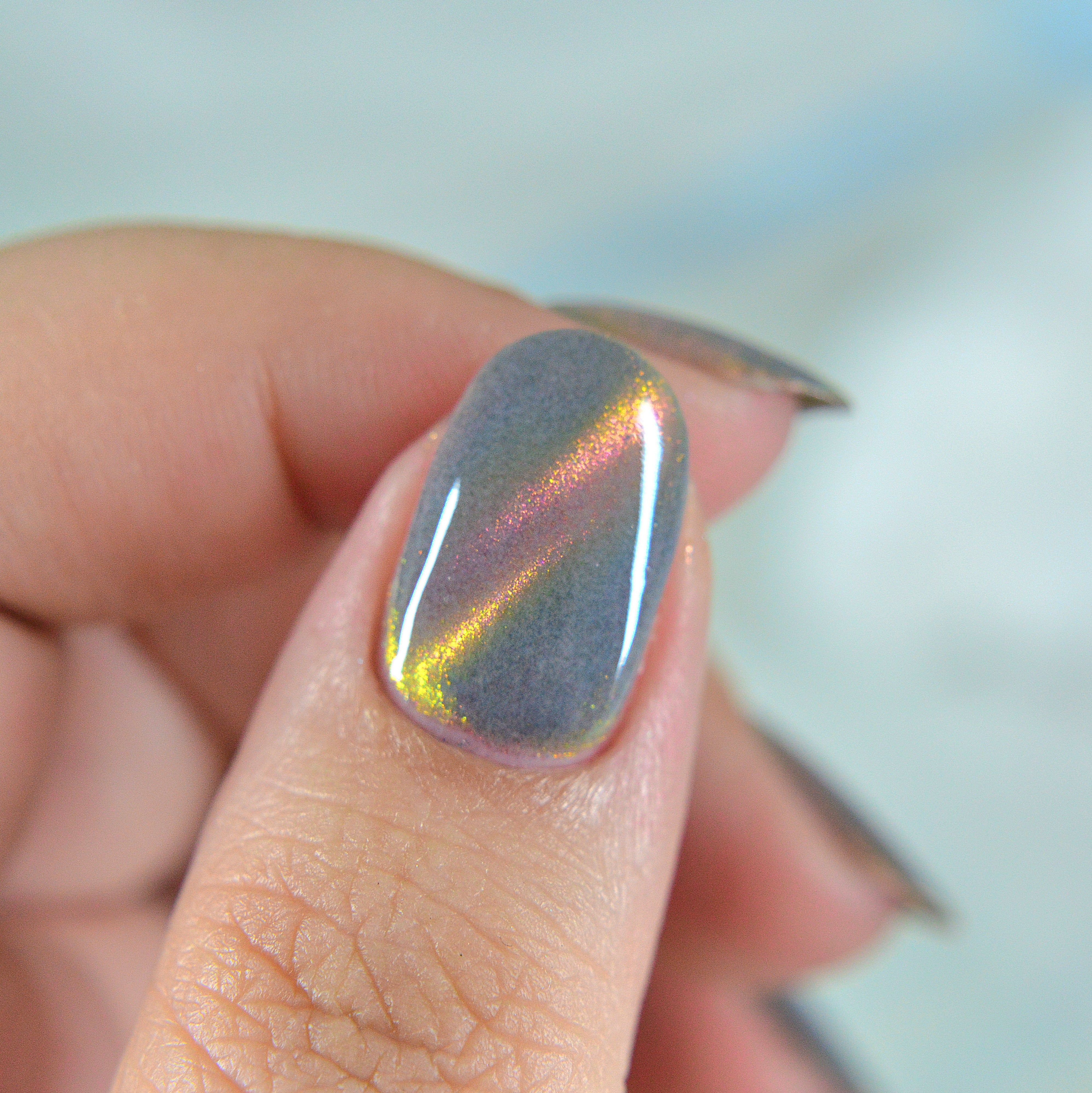 Platinum Ice - a sheer gunmetal base with an intensely metallic silver microflake magnetic pull. When worn as a cat eye magnetic effect, this polish is quite magical as it...