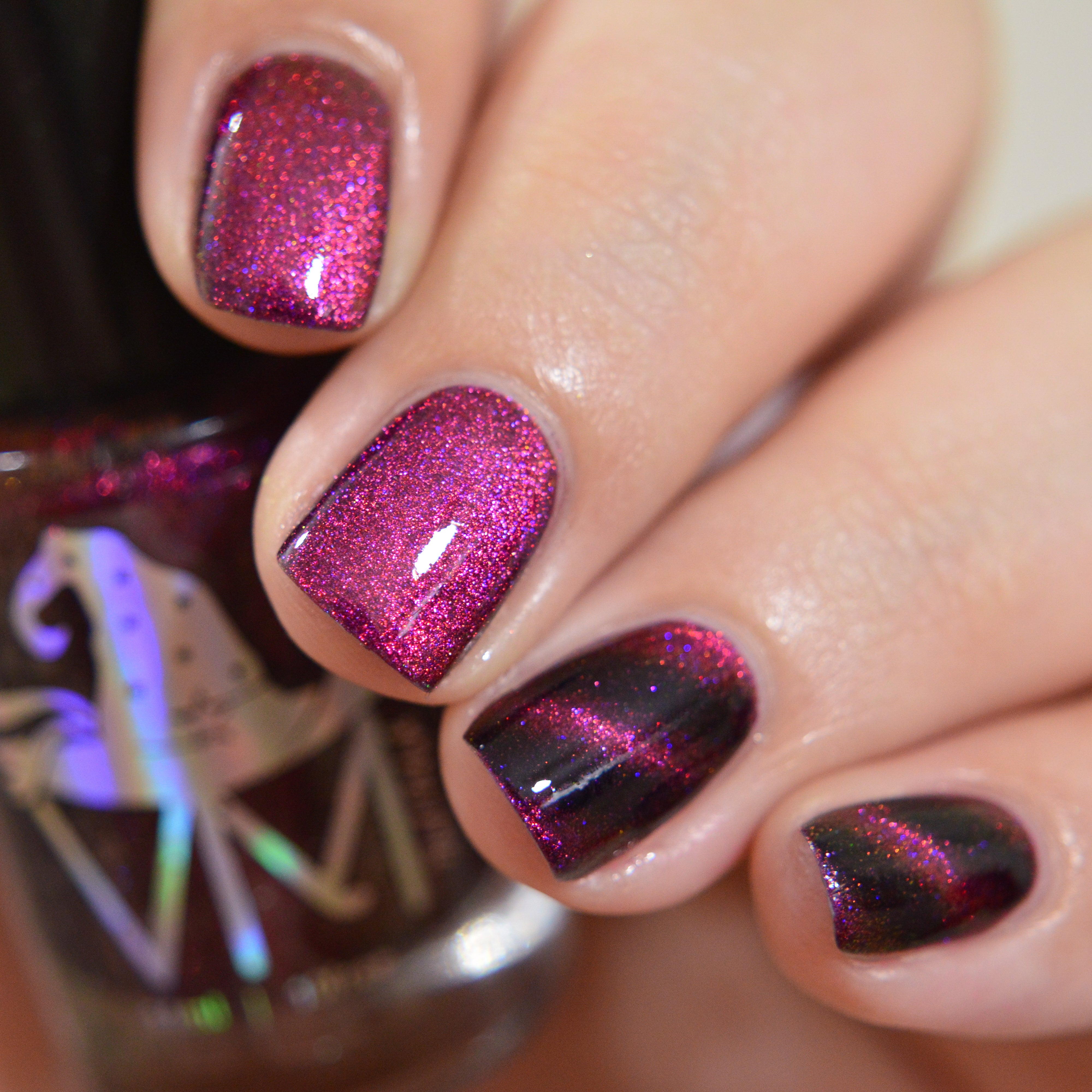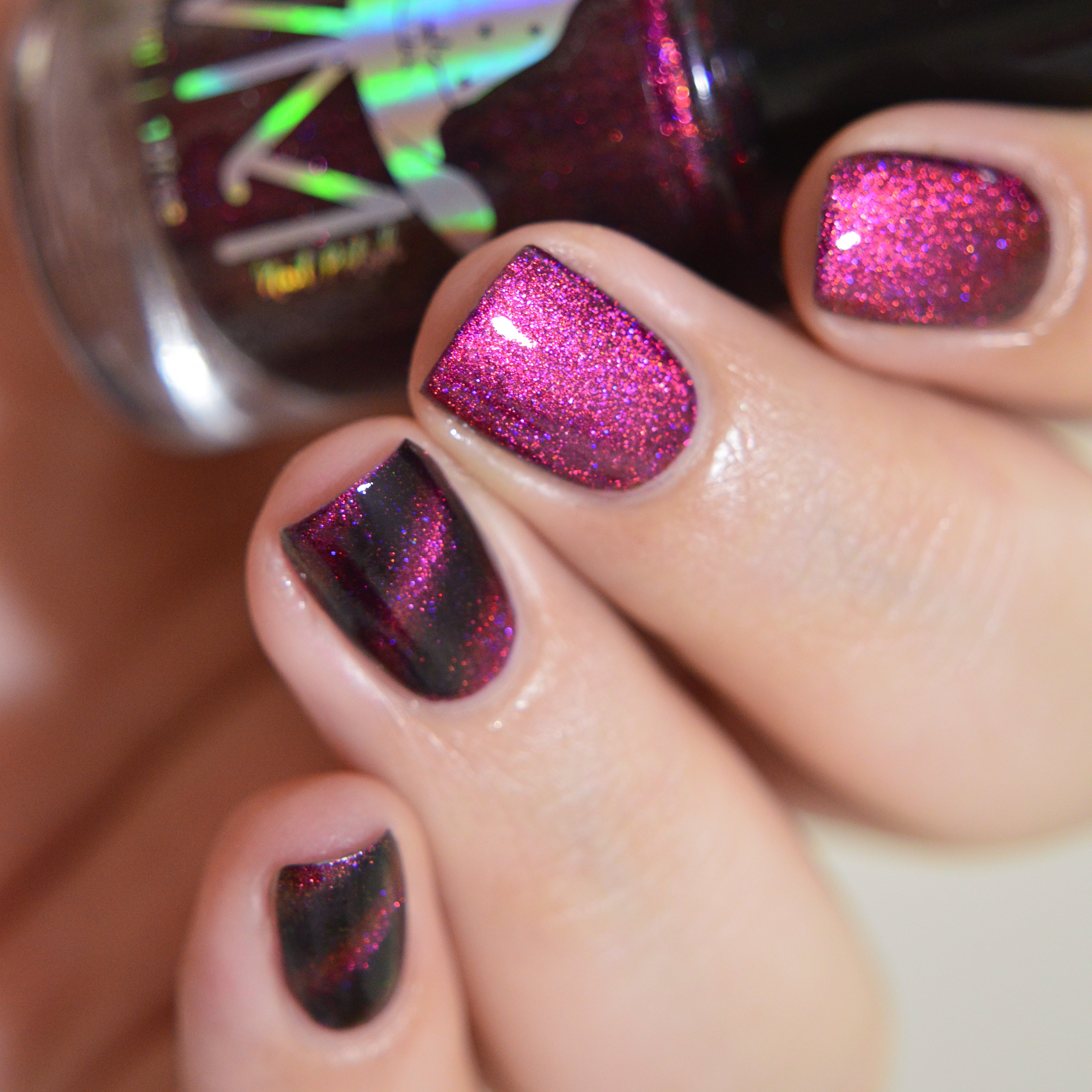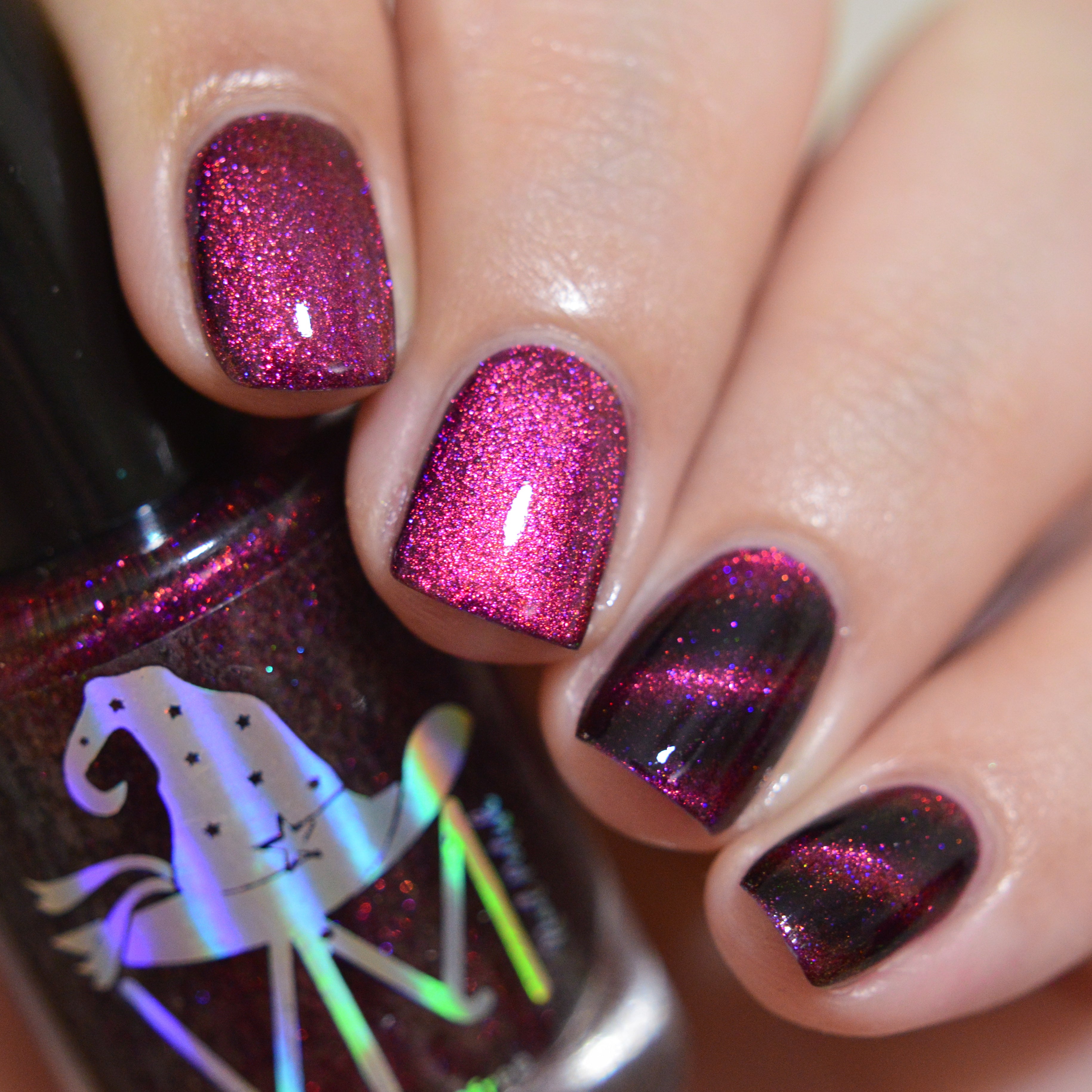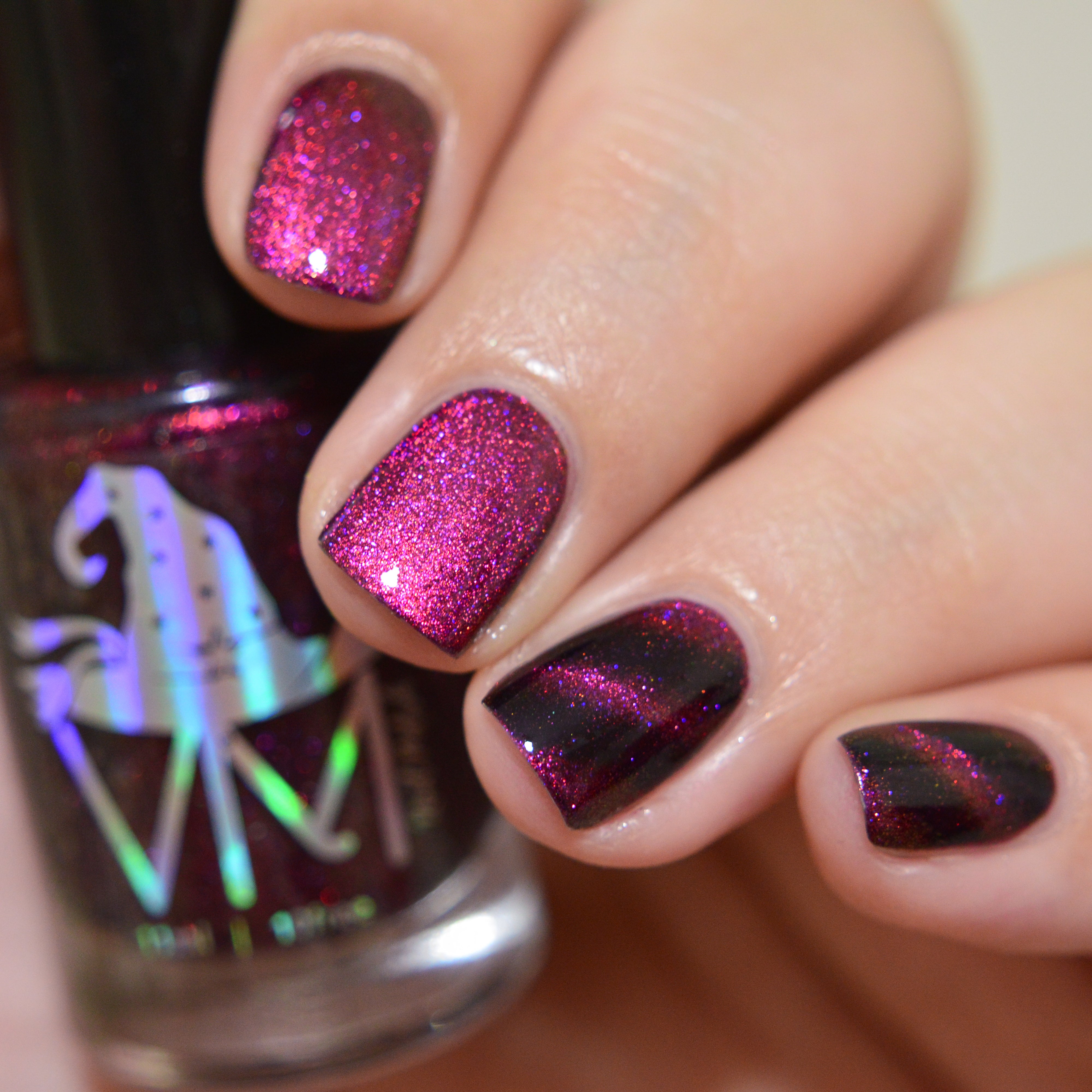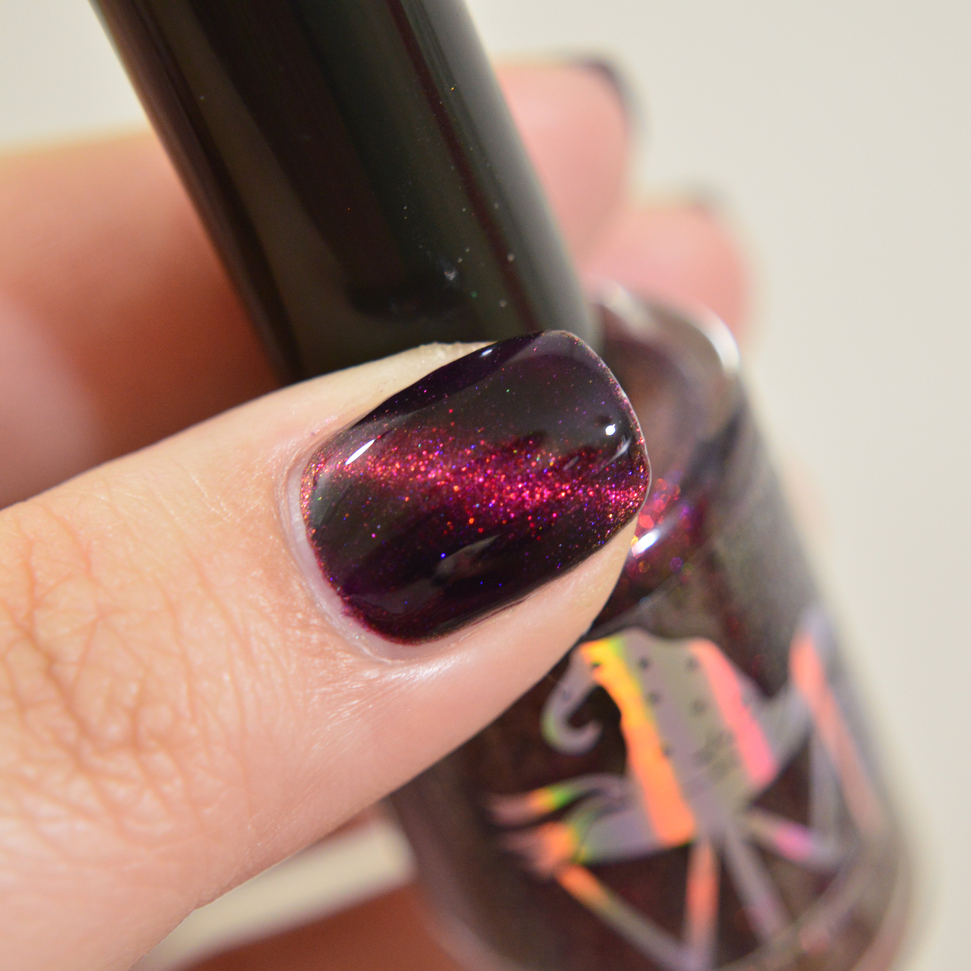 This is Halloween : Multichrome base purple/pink/plum with satin matte drying. Wear it glossy with your favourite top coat Part of CineSpook Collection