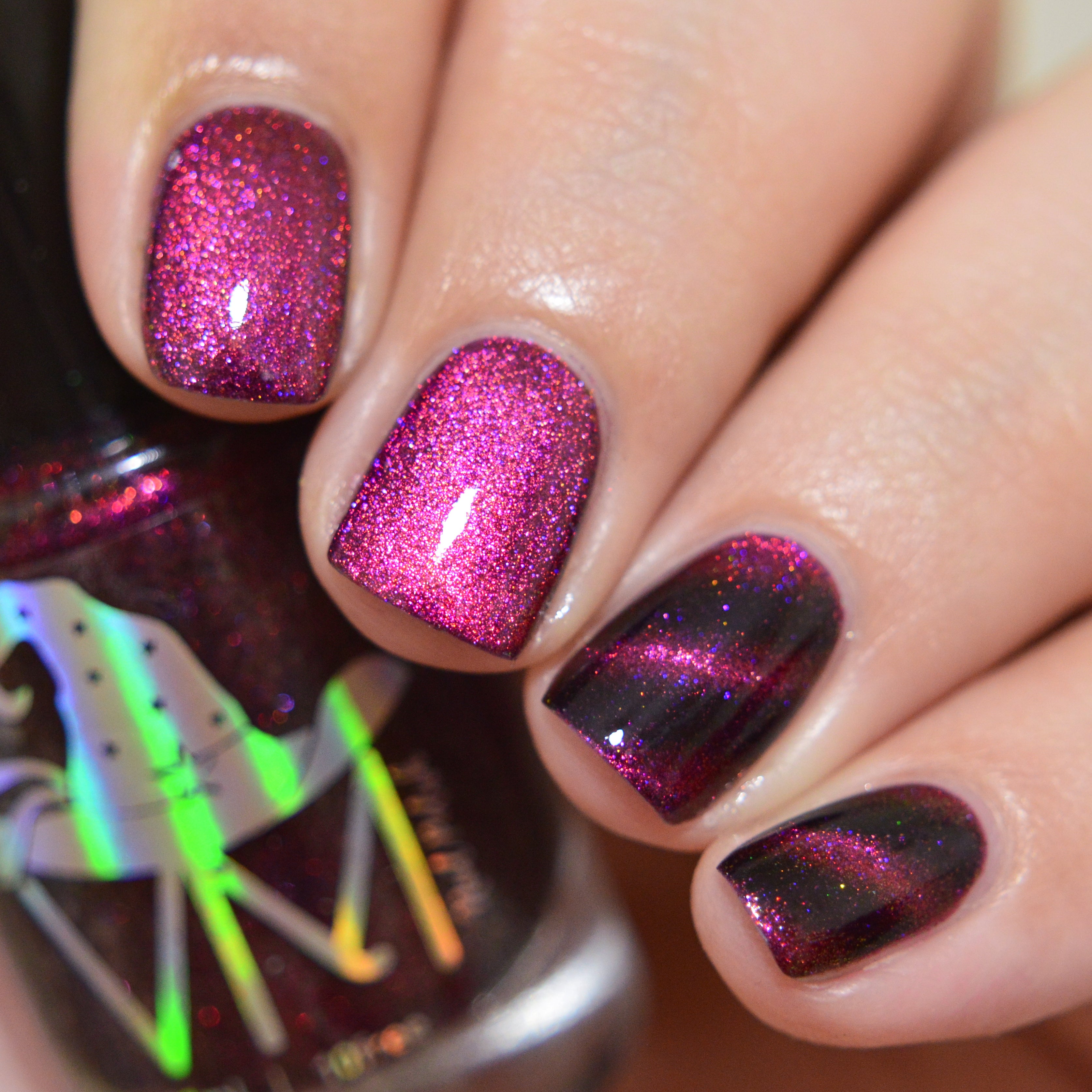 Zero's Glow: Yellow/orange solar pigment with purple metal flakes and neon micro flakes. Part of CineSpook Collection