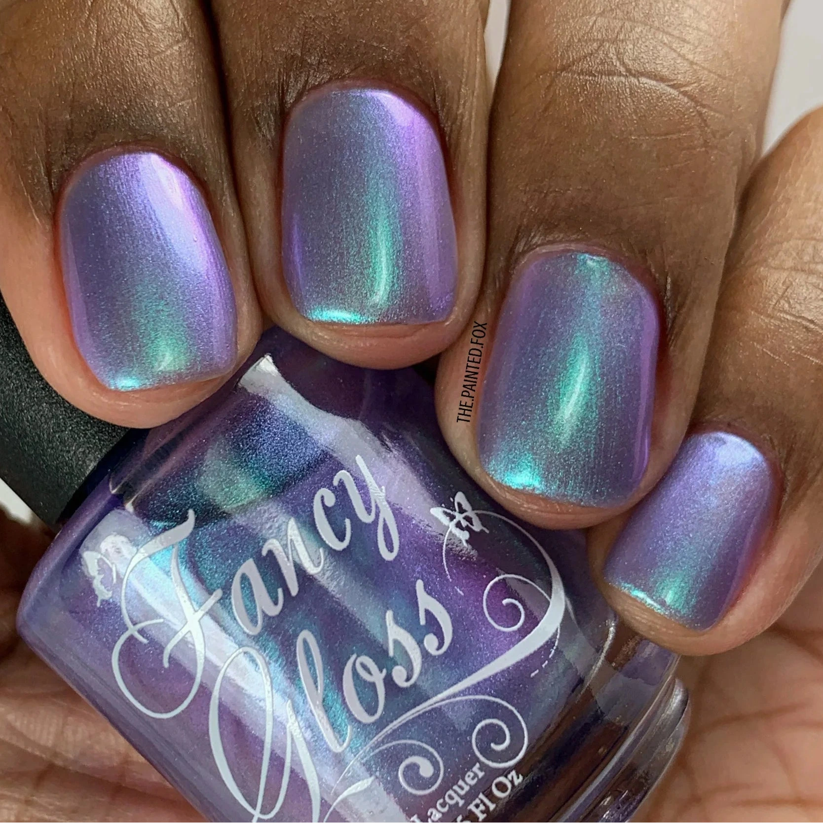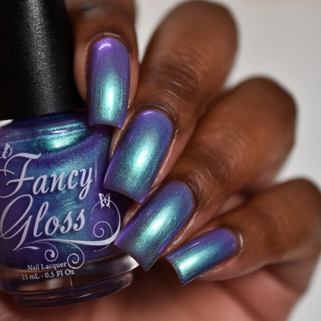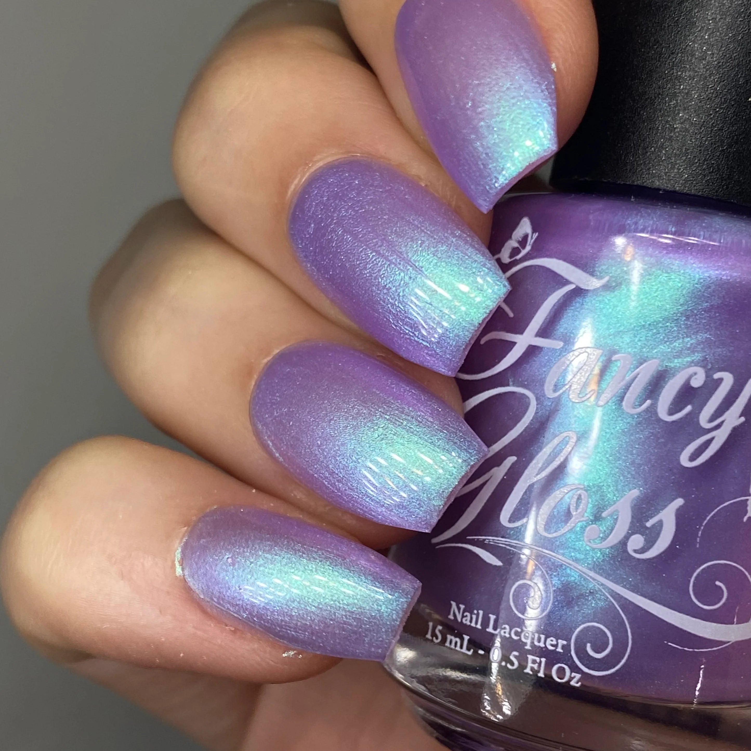 Light purple base with a strong turquoise/purple shimmer.