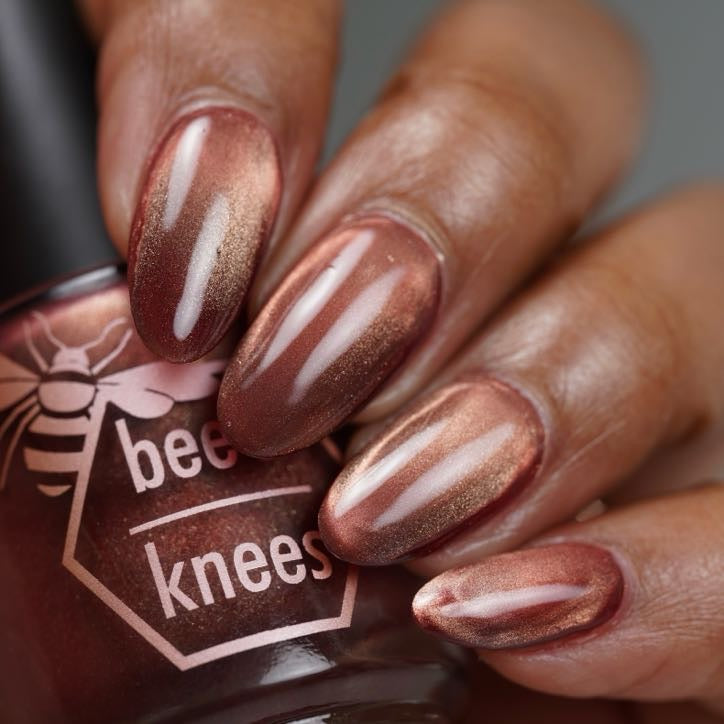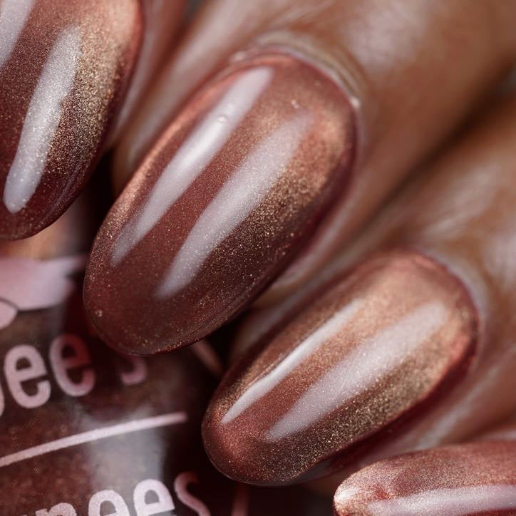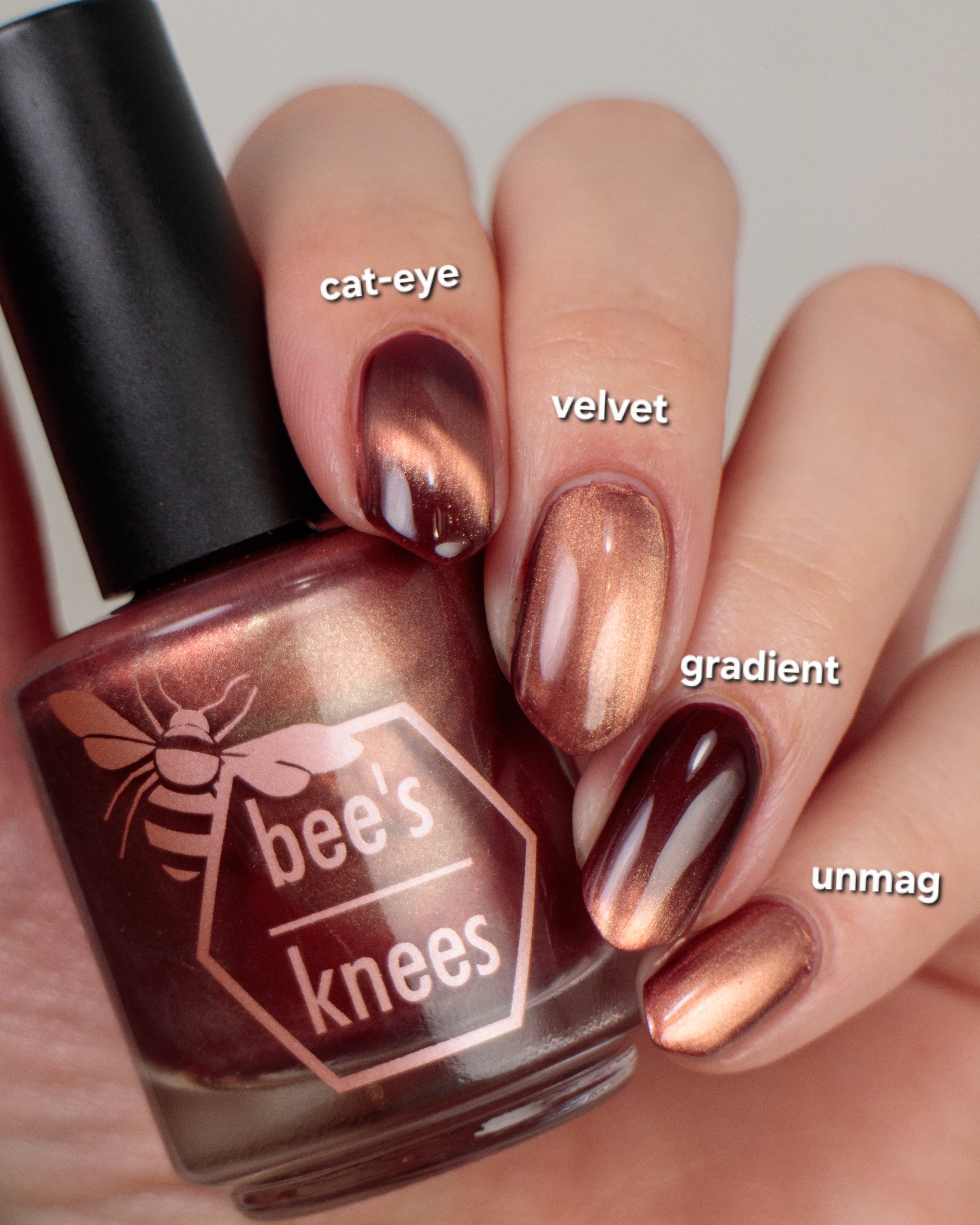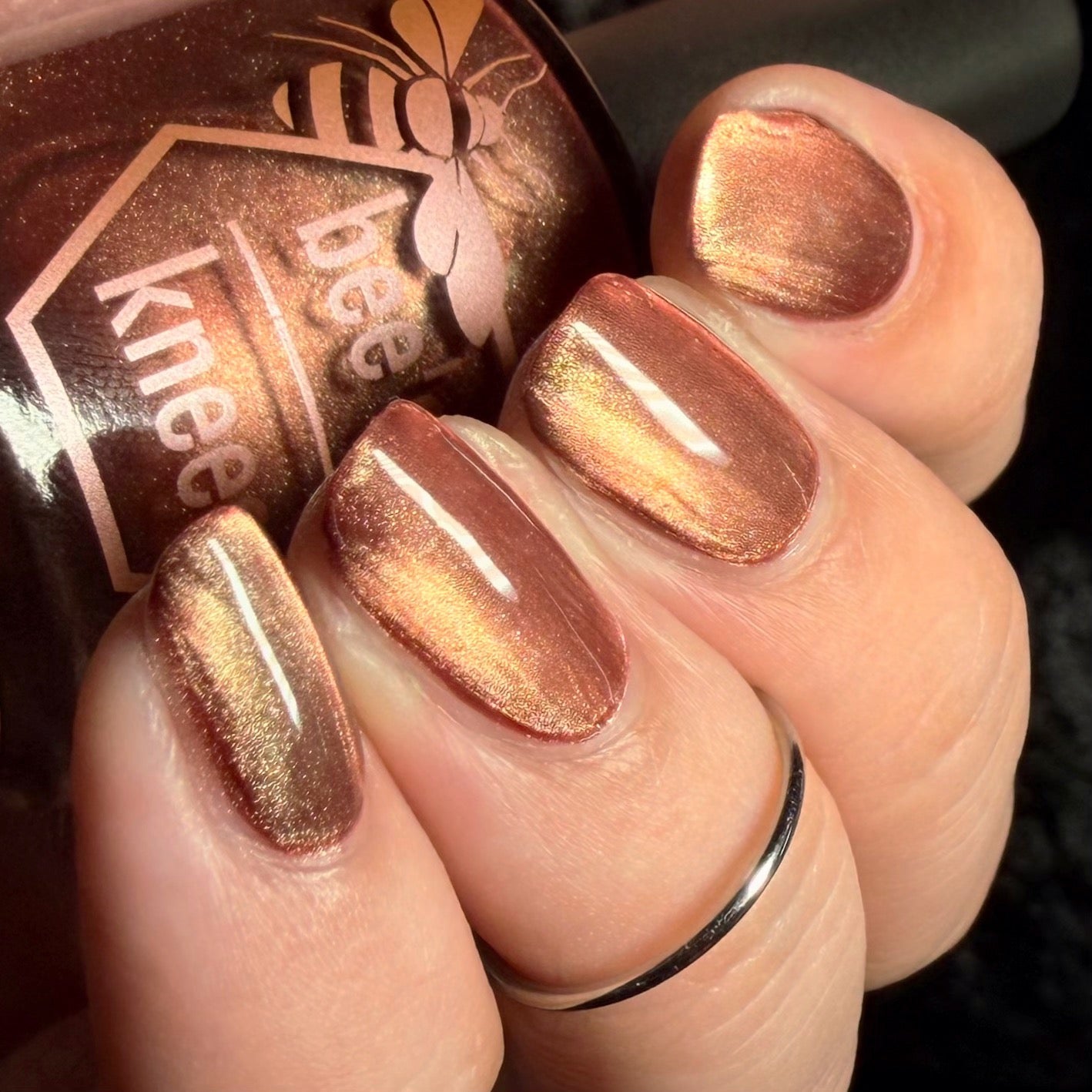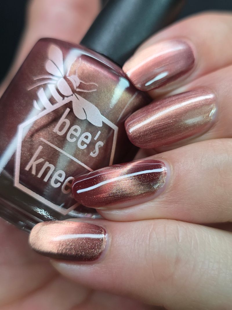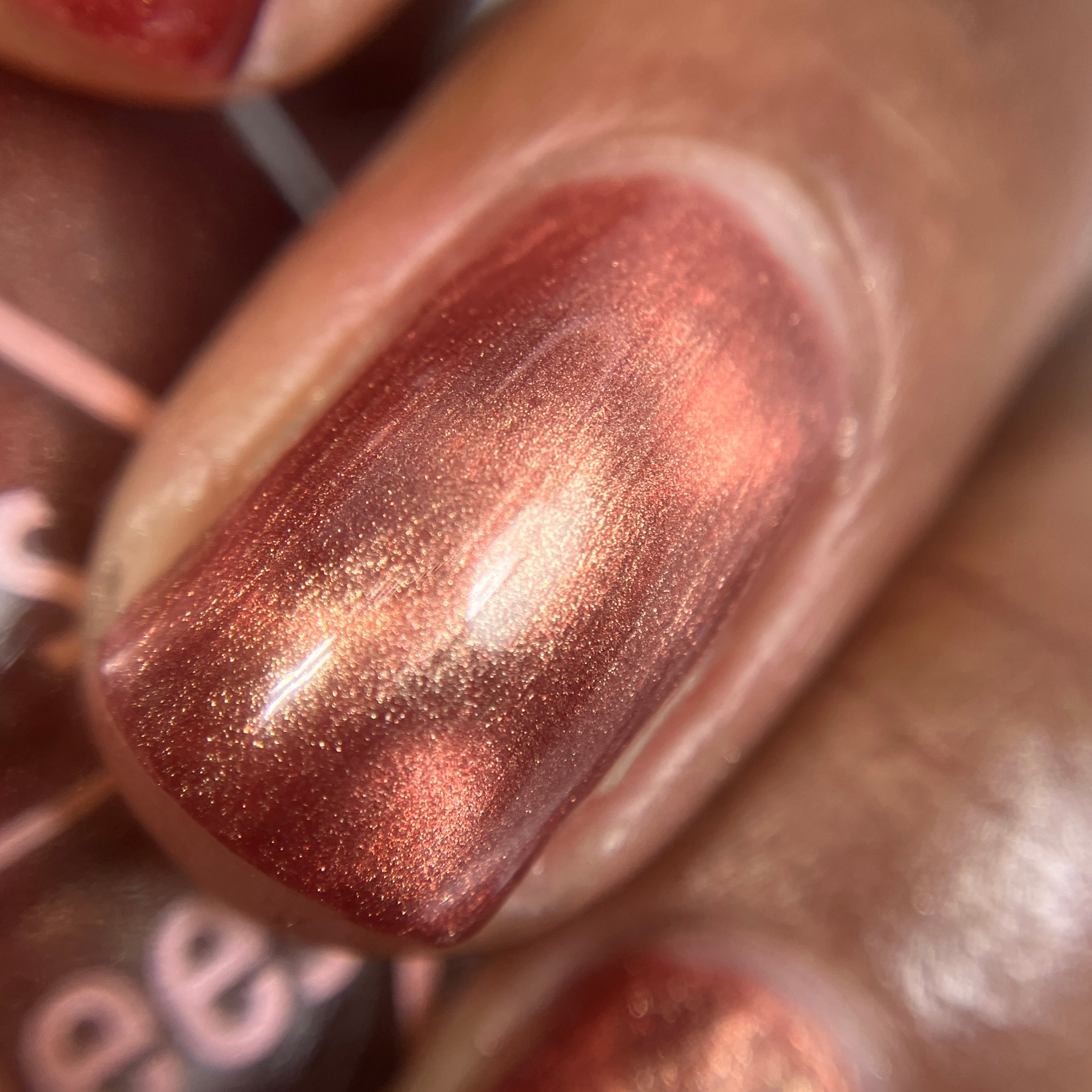 Hex the Patriachy - a burgundy Bog Dweller Sibling with silver magnetic shimmer that turns pale gold in the burgundy base.